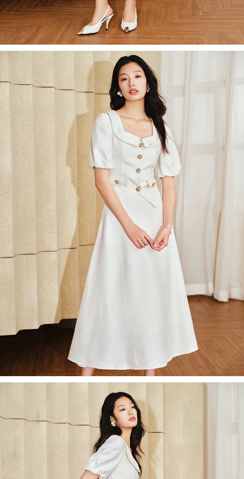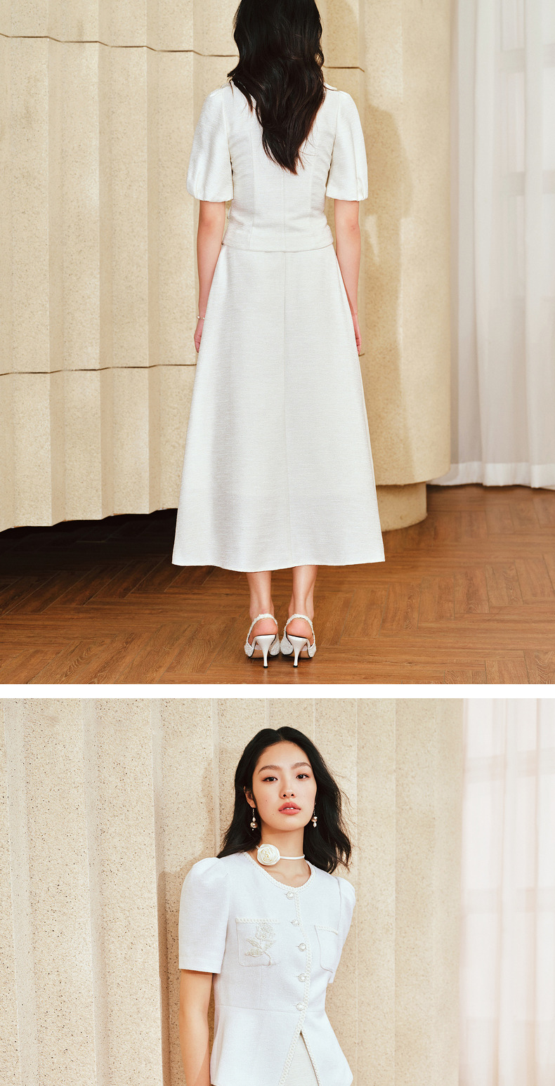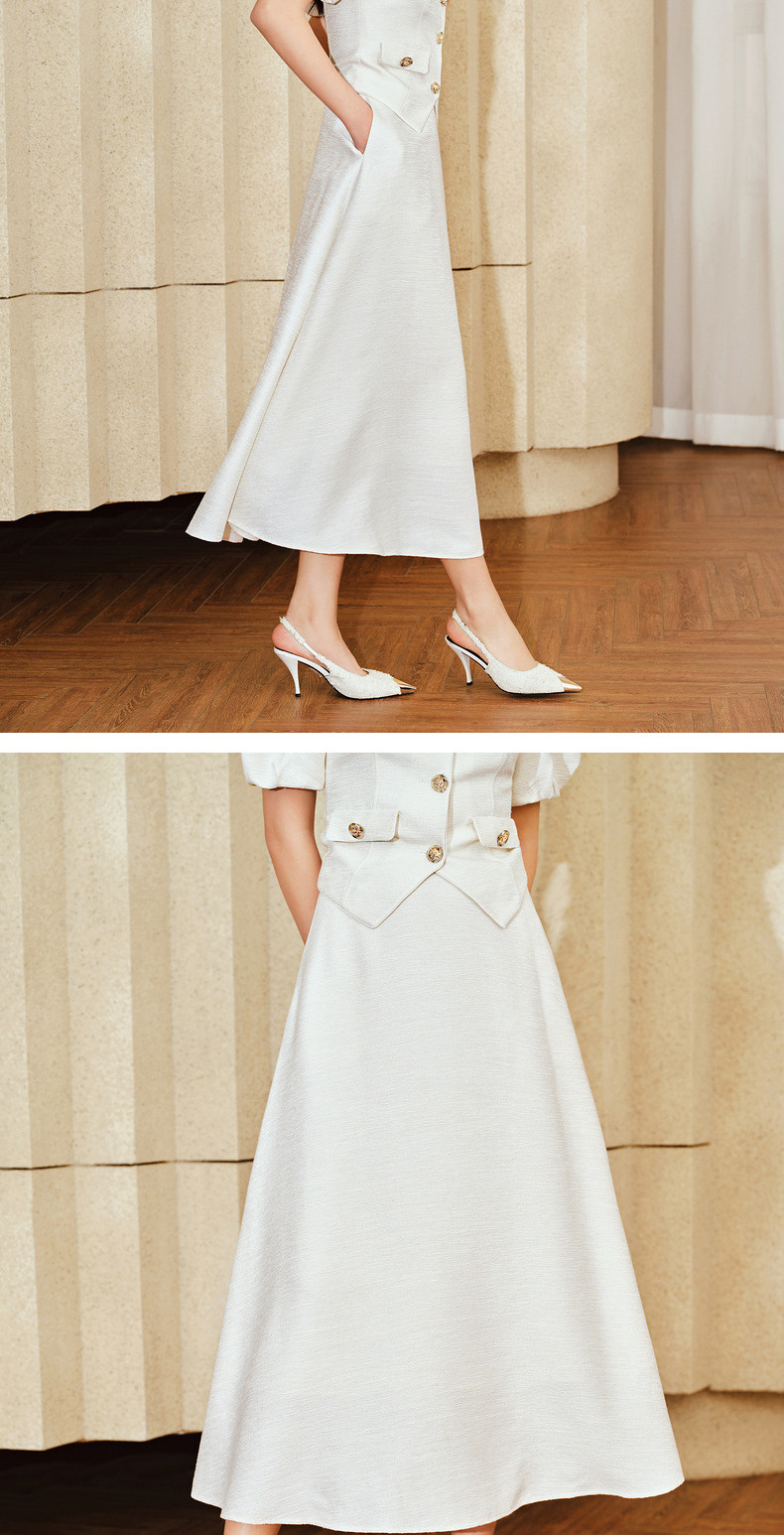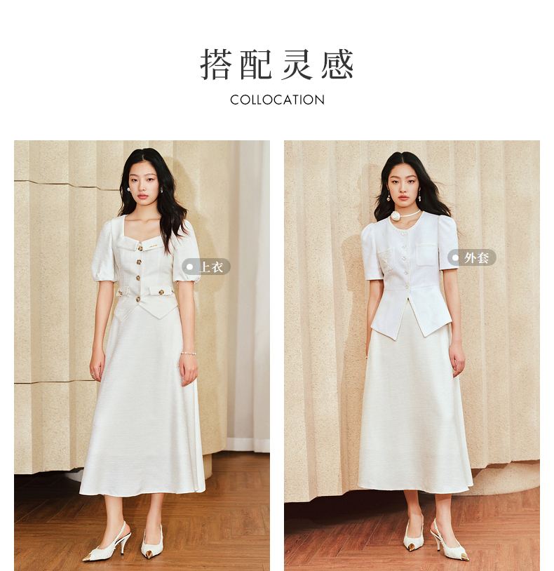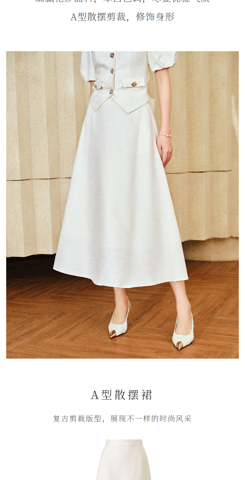 MAXRIENY优雅复古小香风花纱半裙a字伞摆半身裙(货号:MS85SK010)