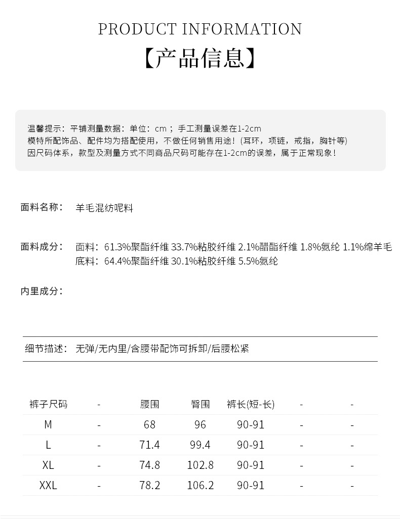 「高货wl」全新升级【铂金会员220/天猫299/差价79】(02559)洛诗琳加厚毛呢靴裤2025秋冬含羊毛通勤直筒九分西装裤