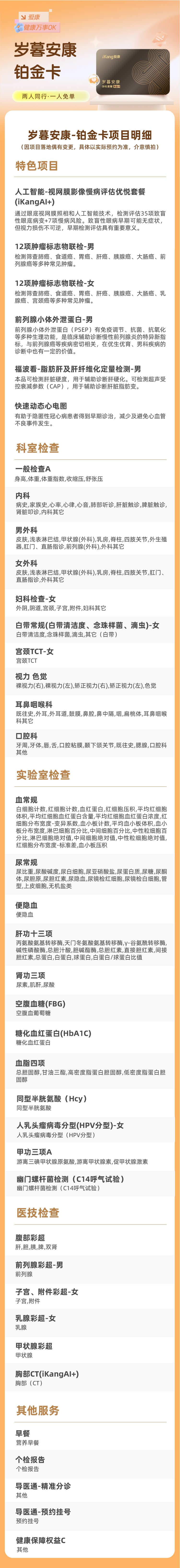 爱康 岁暮安康铂金卡套餐(男女)