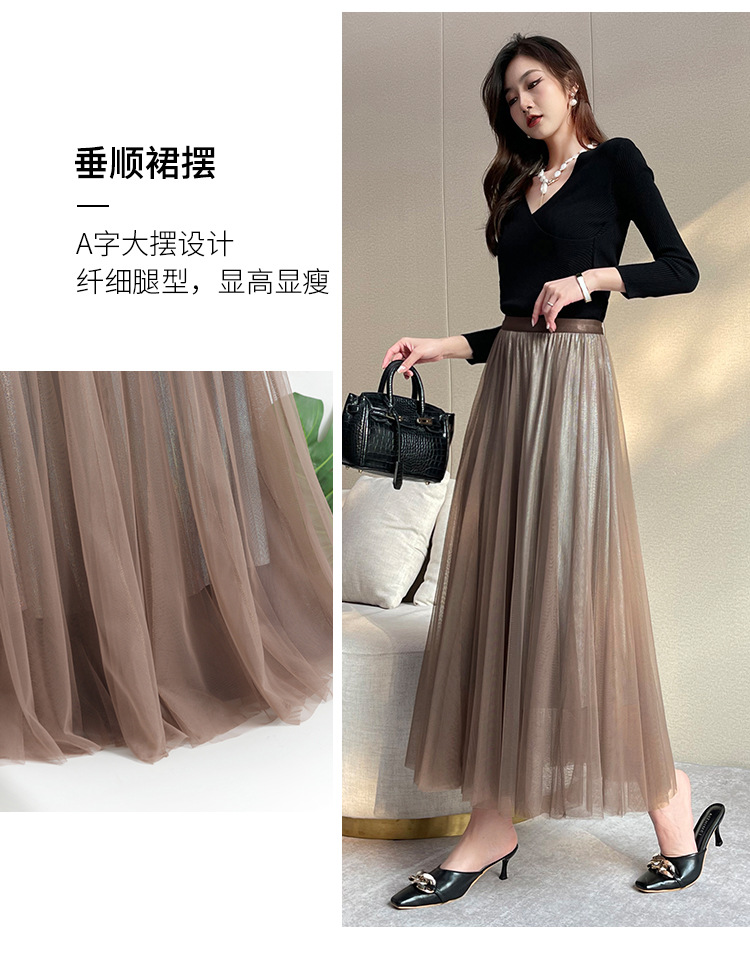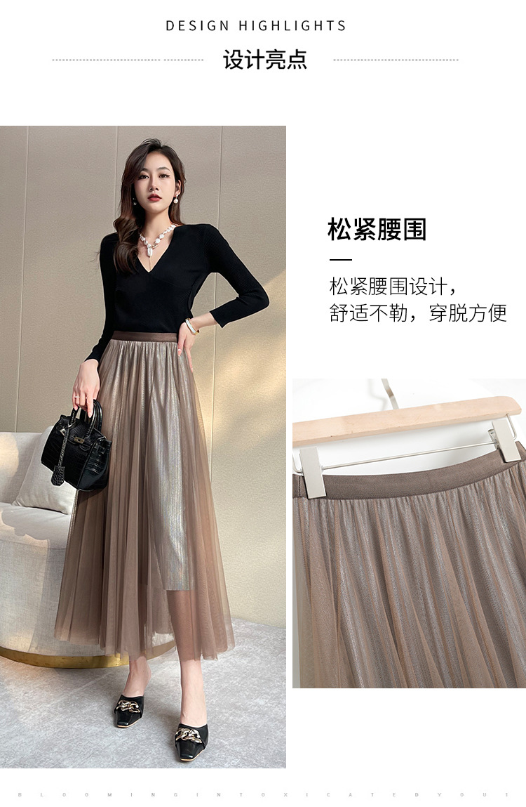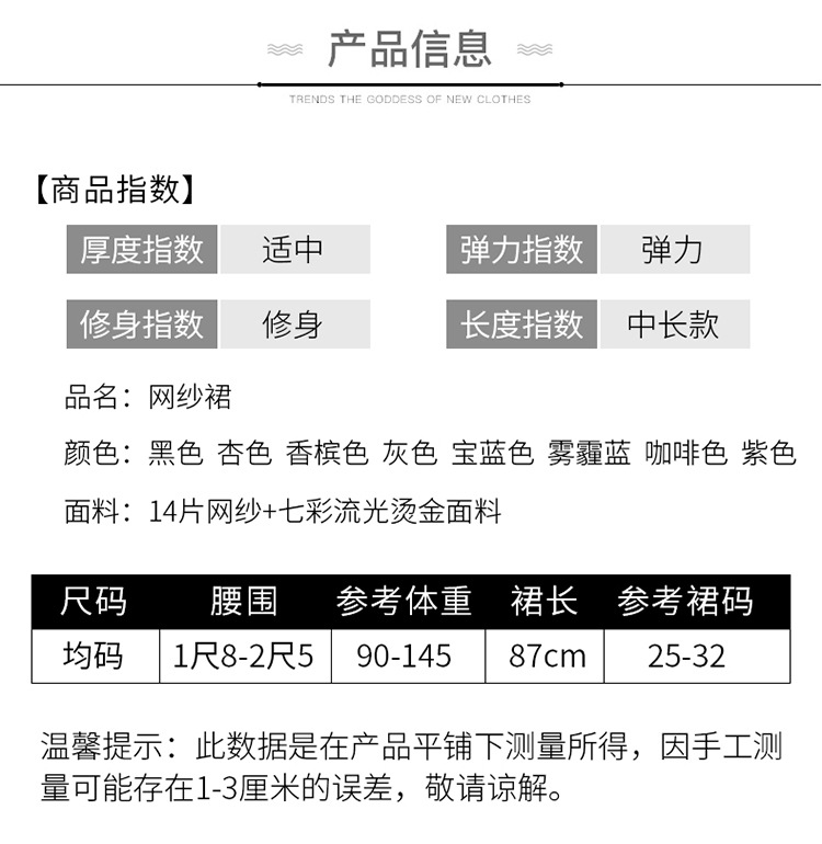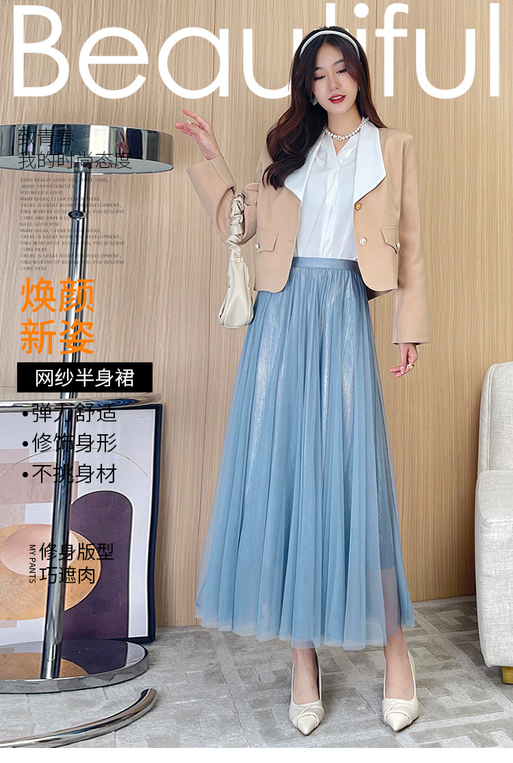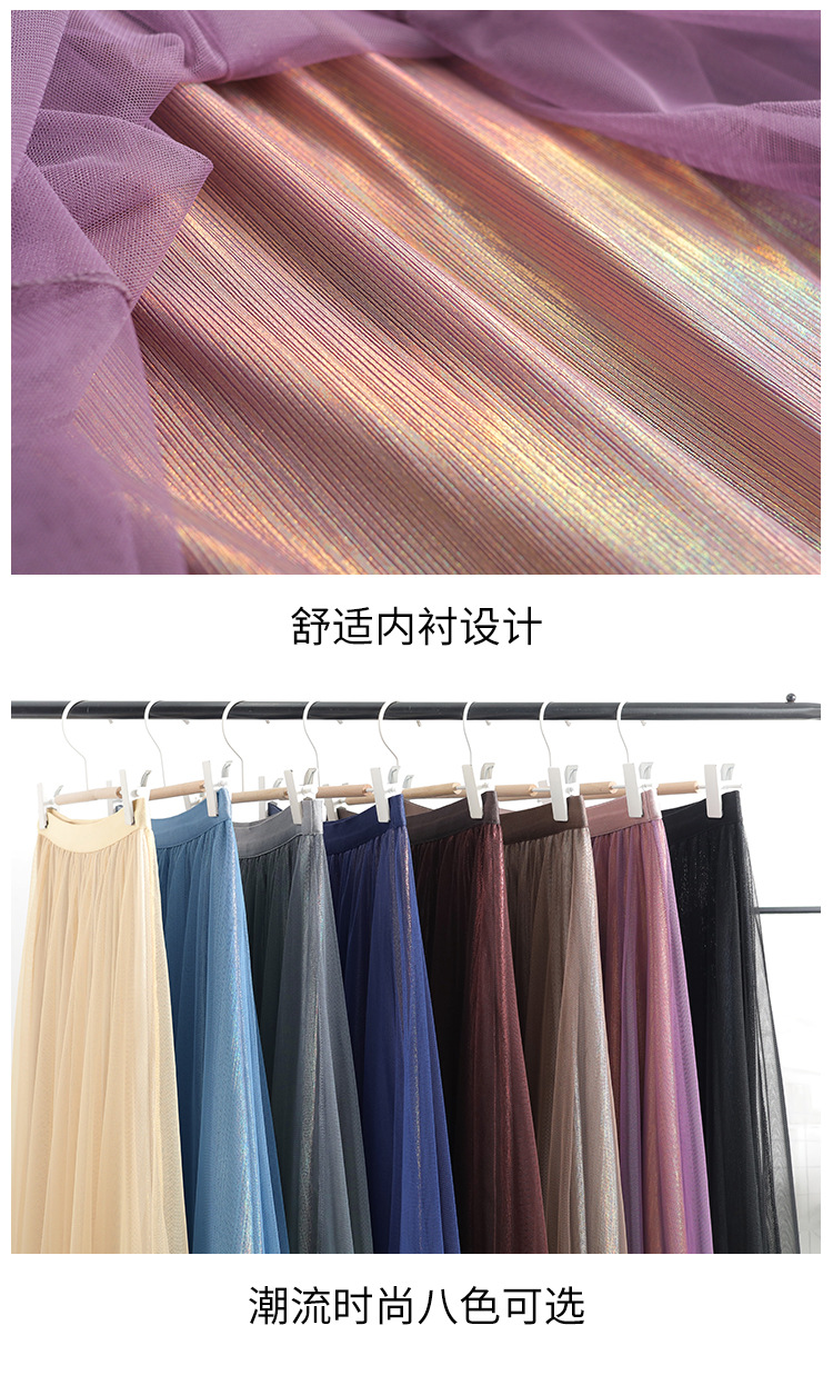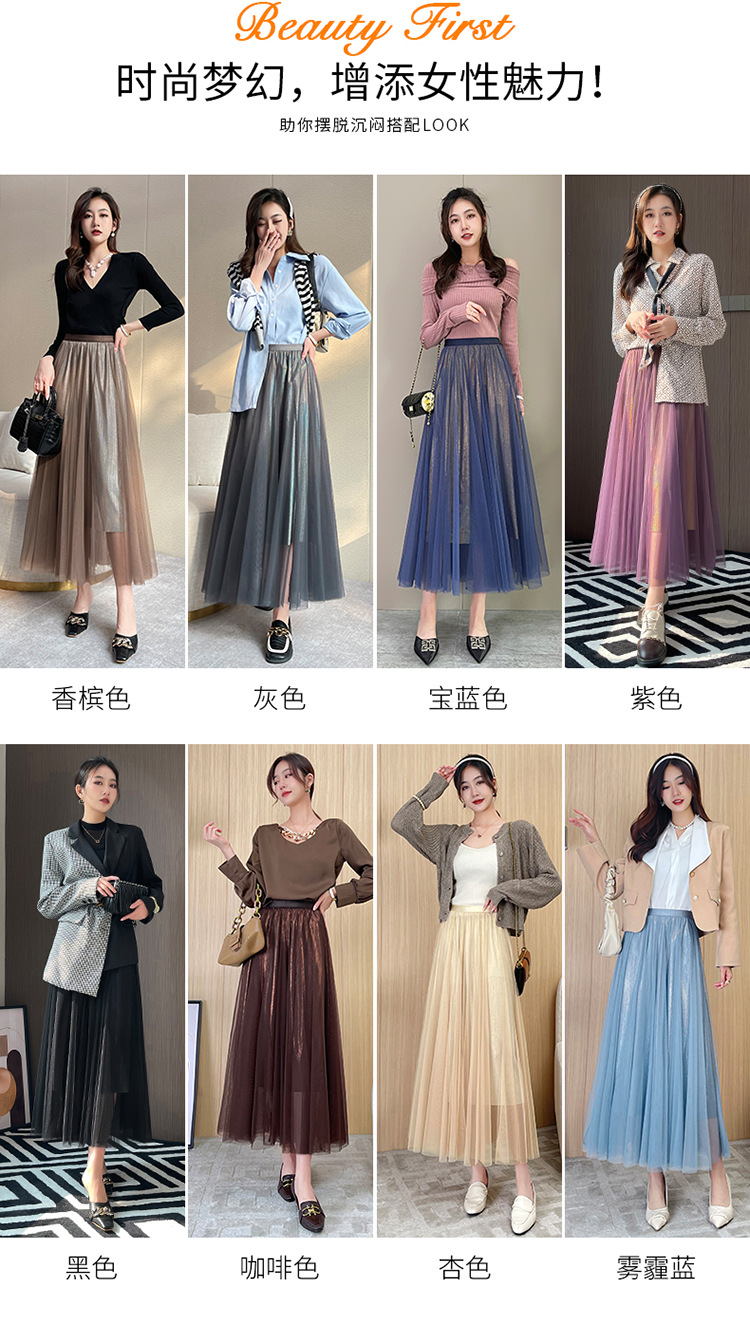 七彩流光网纱2022春季新款显瘦蓬蓬裙大摆仙女长纱半身裙 TY8803