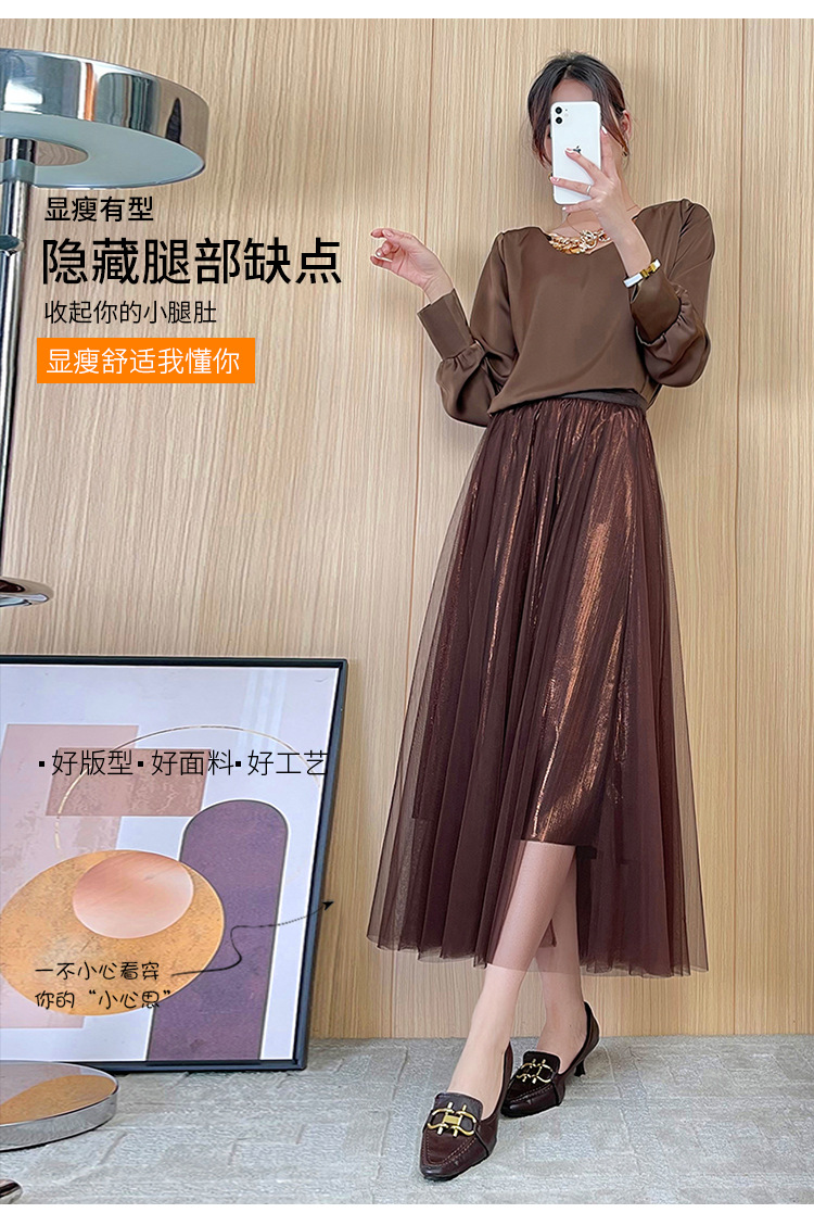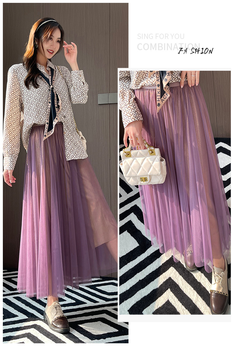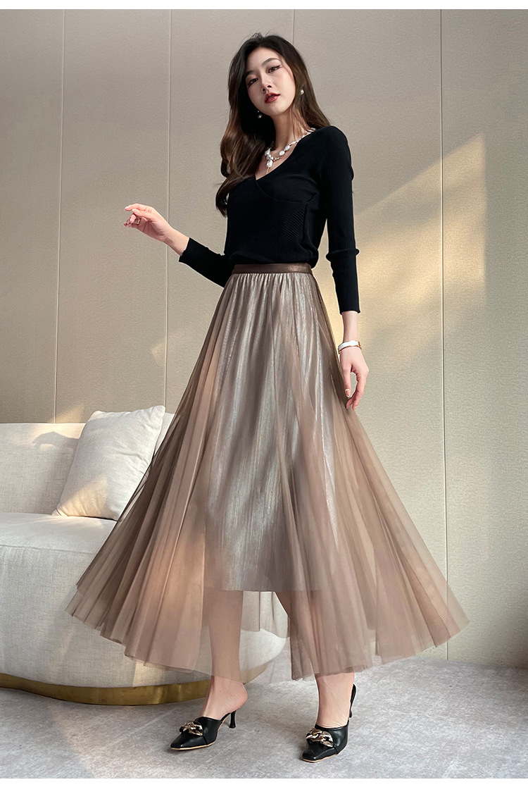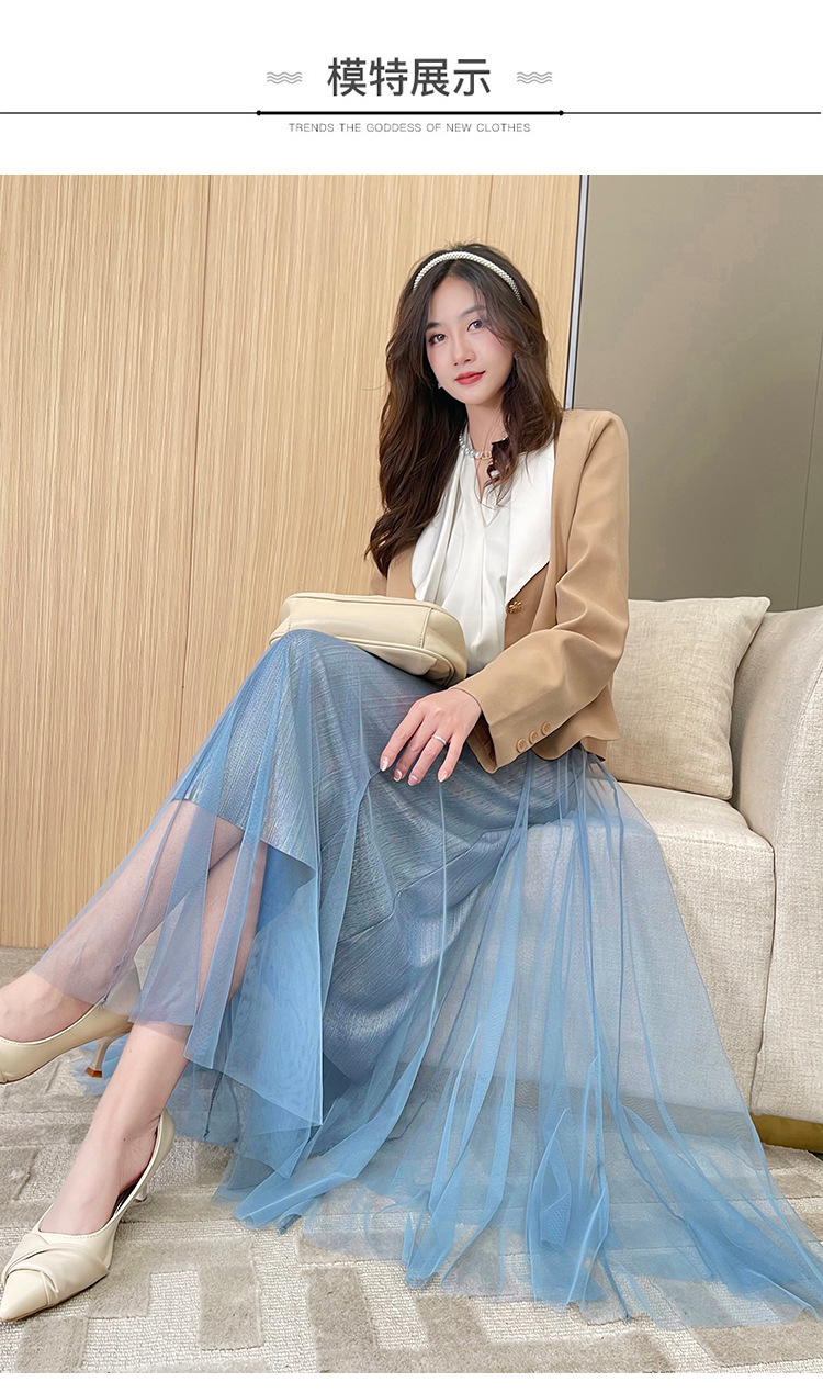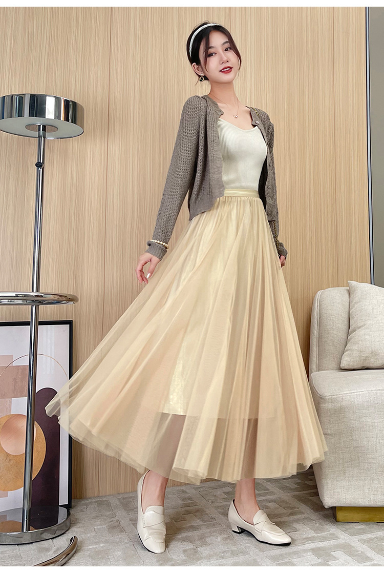 七彩流光网纱2022春季新款显瘦蓬蓬裙大摆仙女长纱半身裙 TY8803