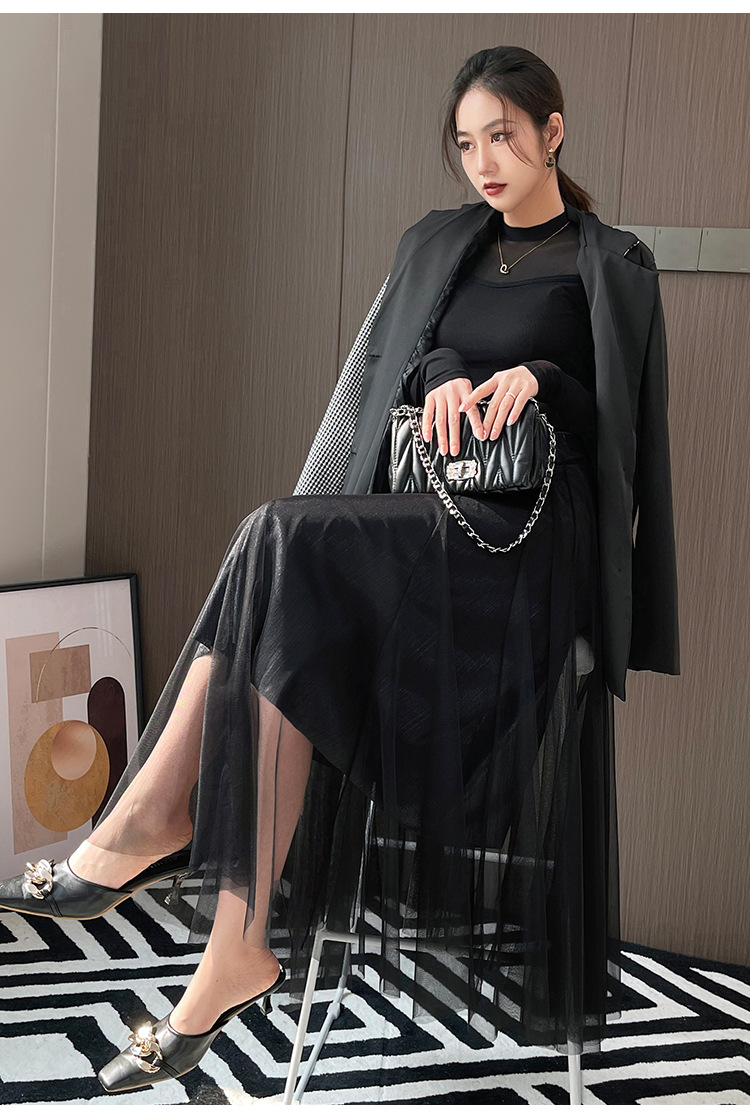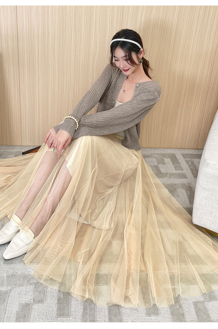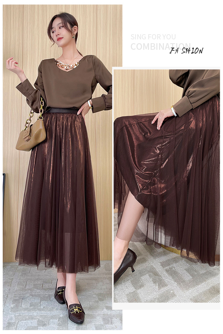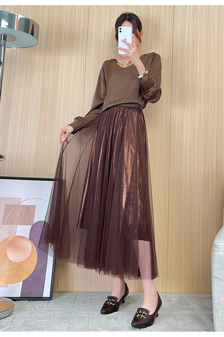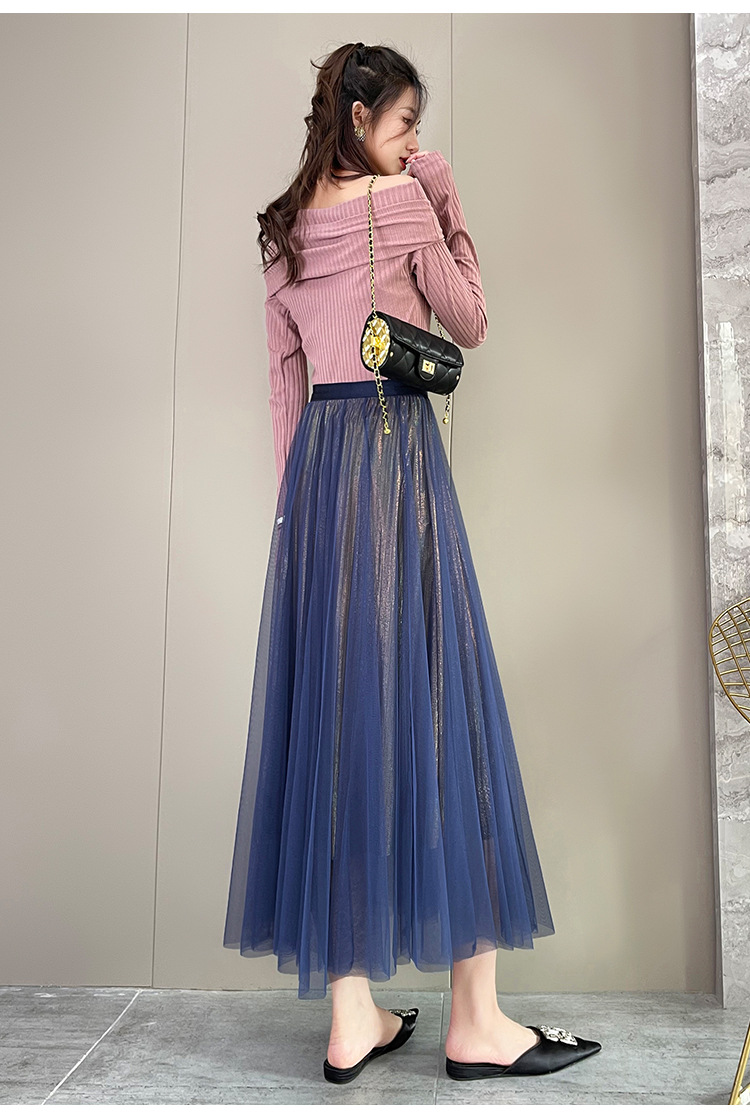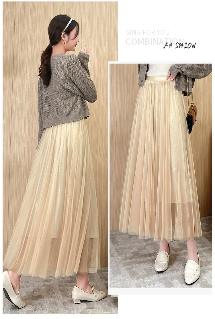 七彩流光网纱2022春季新款显瘦蓬蓬裙大摆仙女长纱半身裙 TY8803