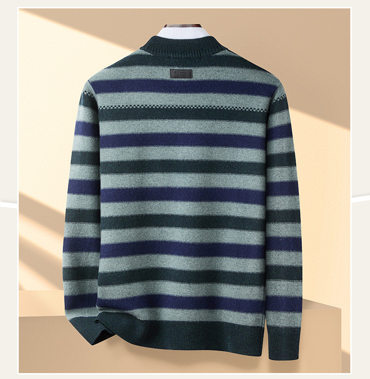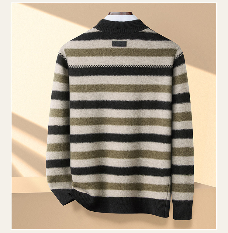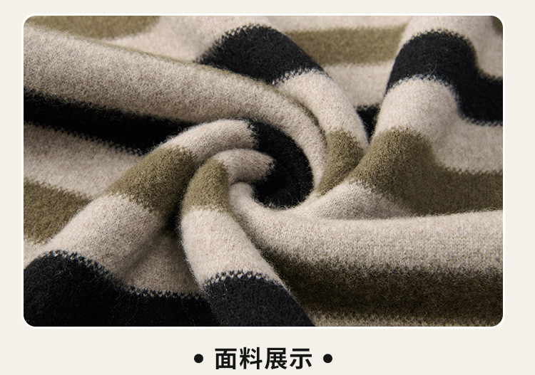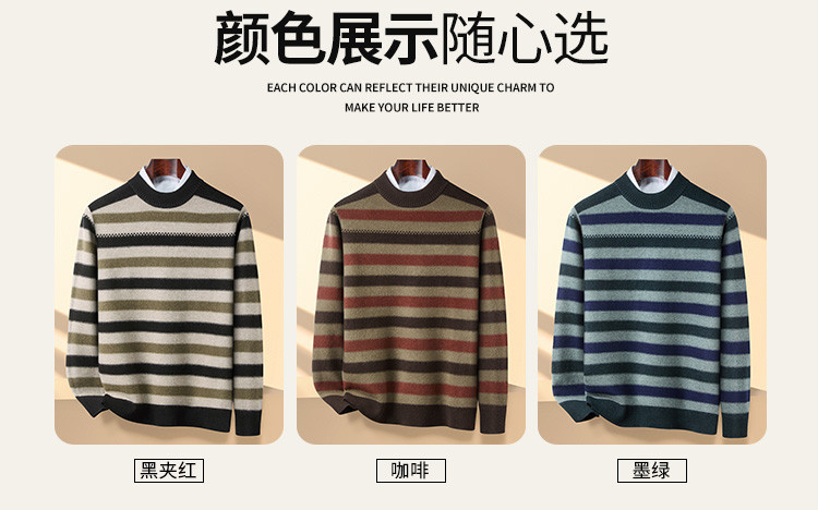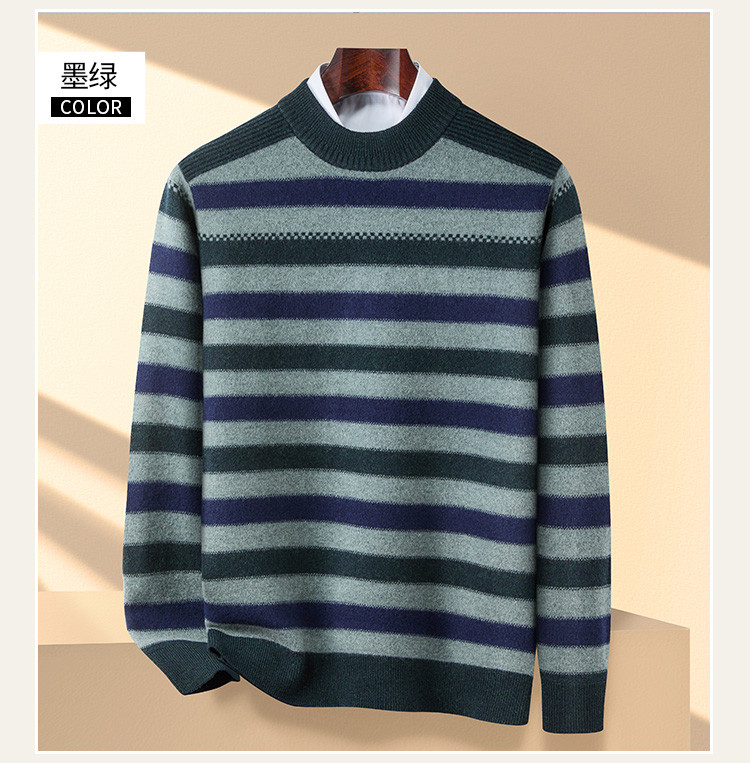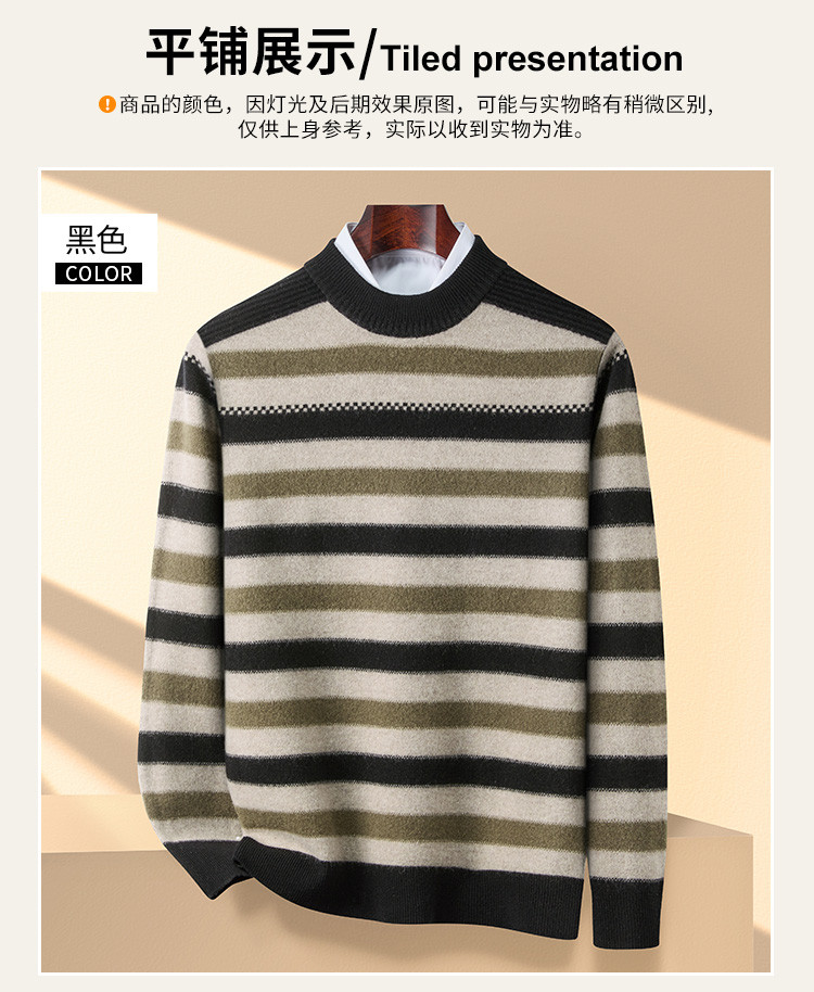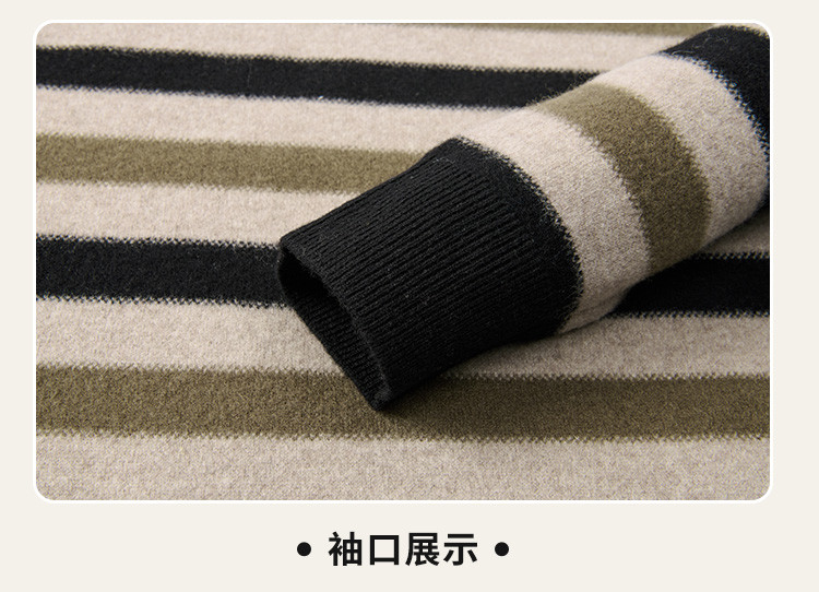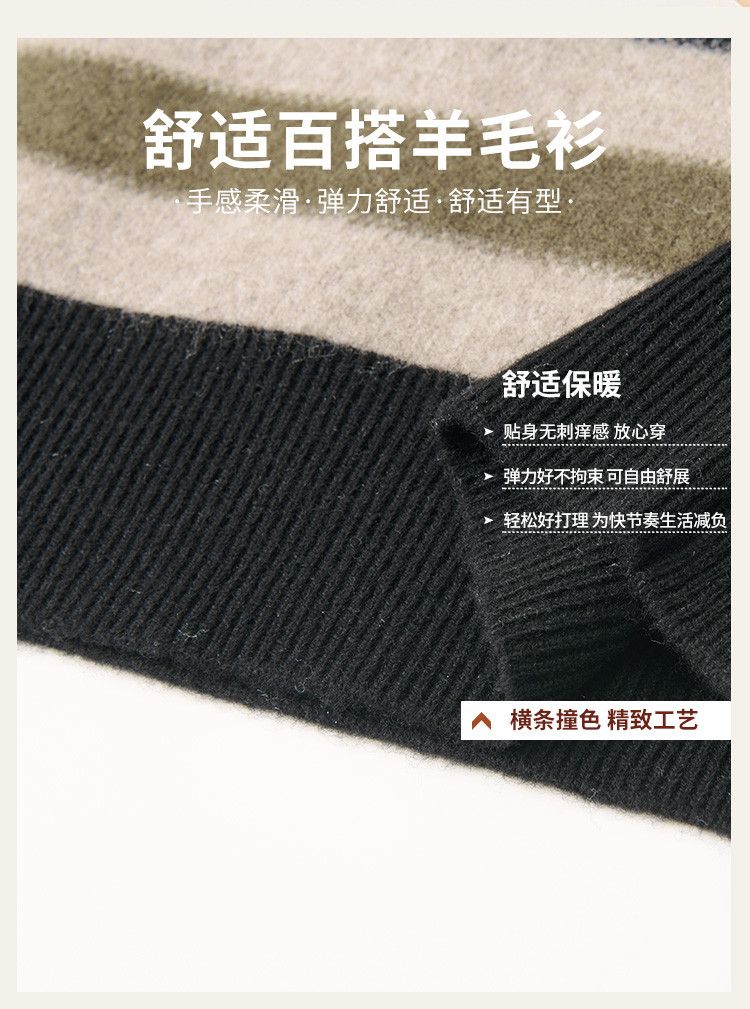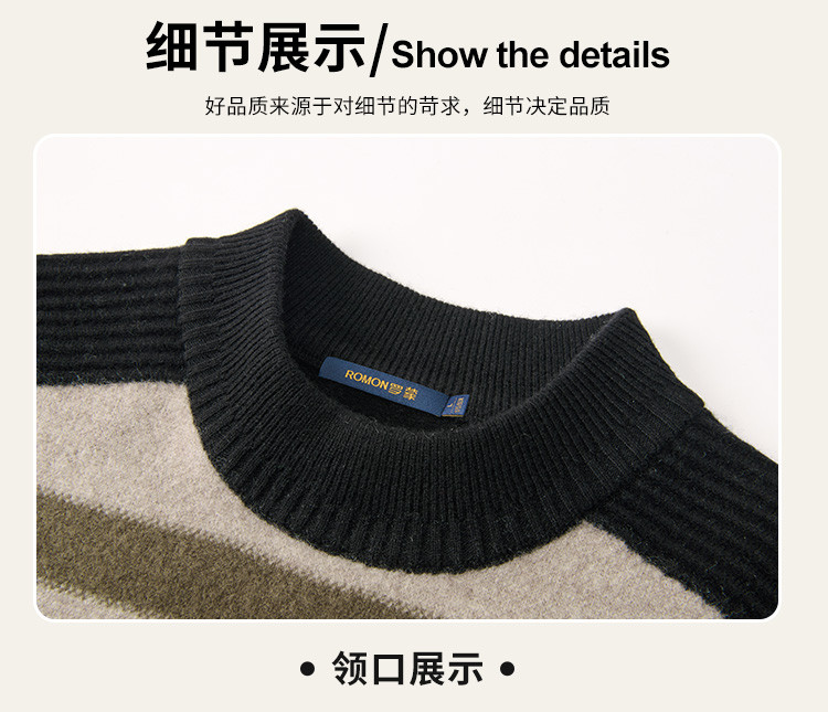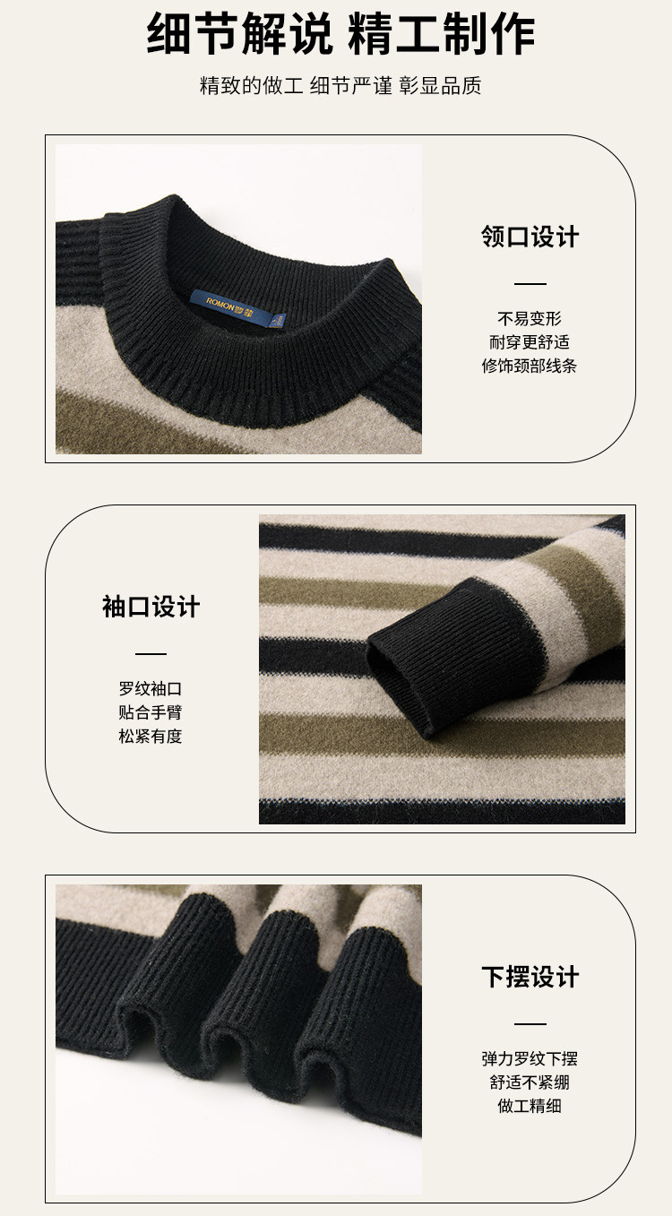 27DKHLA508H【100绵羊毛 横条撞色】罗蒙秋冬男装半高领羊毛衫男士加厚款针织条纹毛衣男