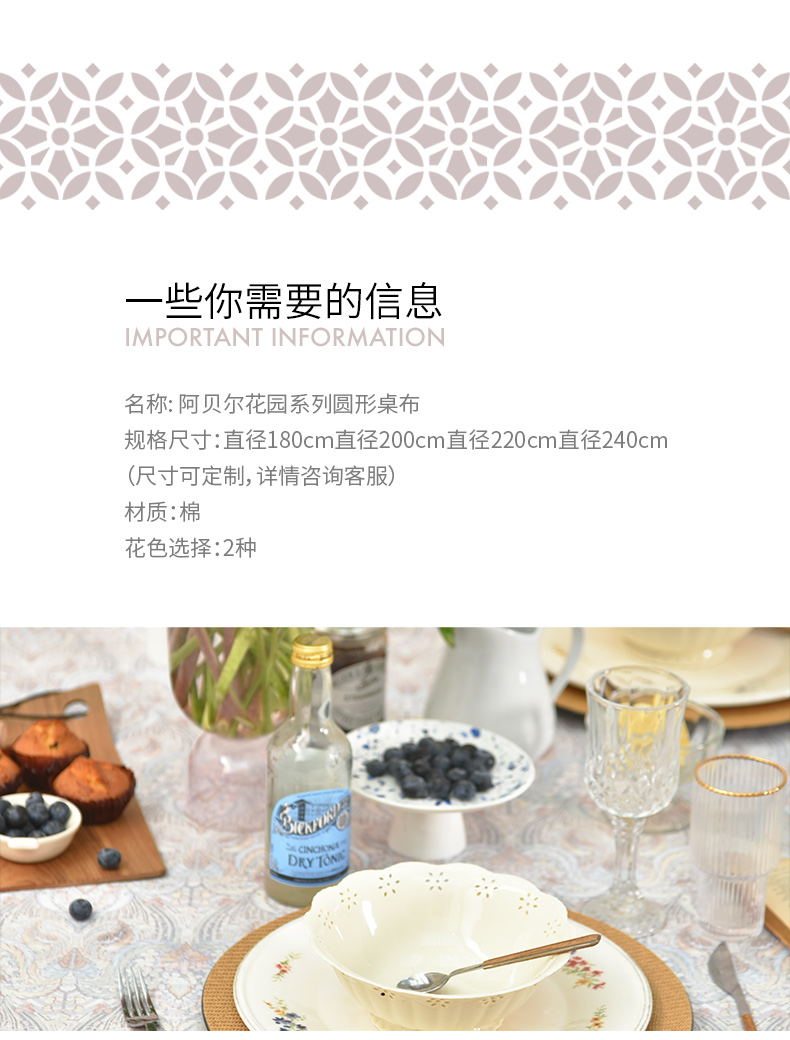 阿贝尔花园系列圆形桌布轻奢全棉台布