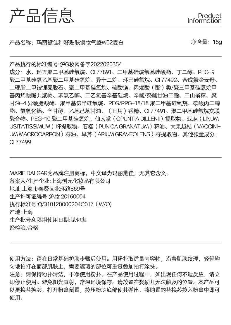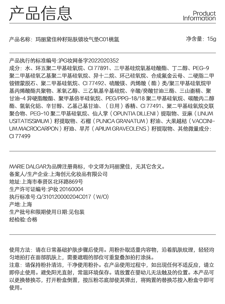 MARIE DALGAR玛丽黛佳 种籽气垫贴肤持妆混干皮粉底液持久遮瑕