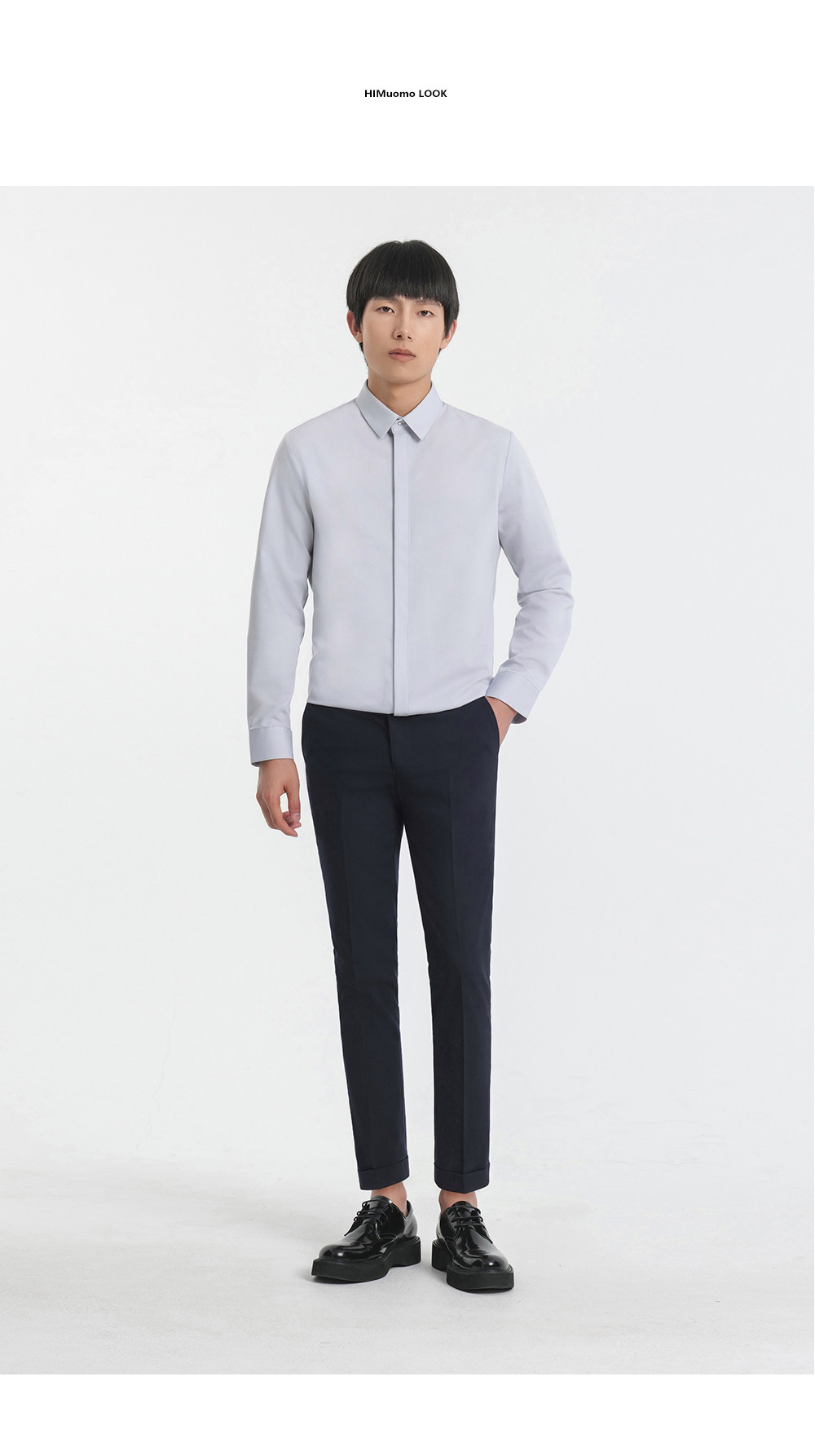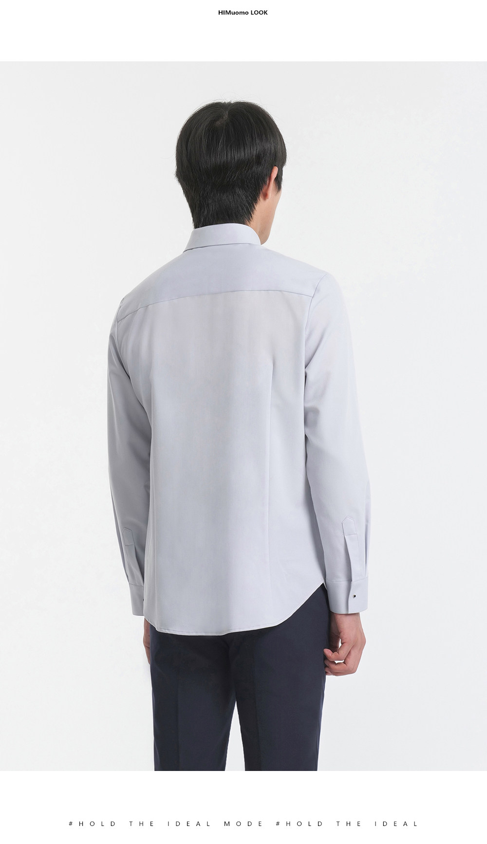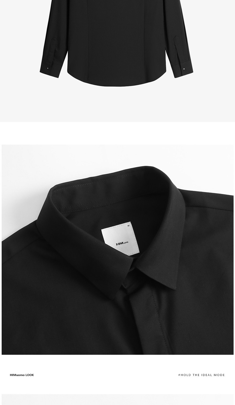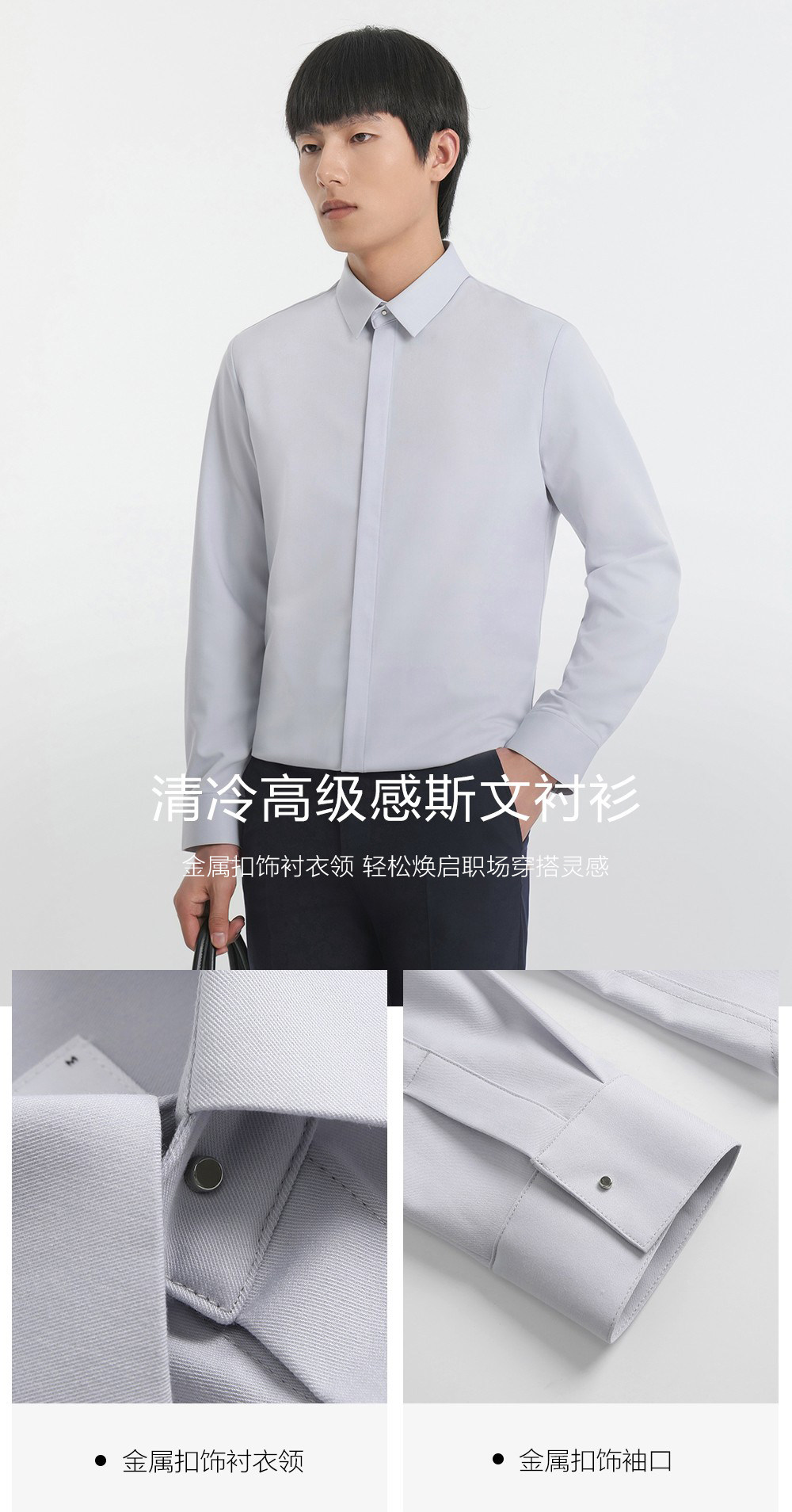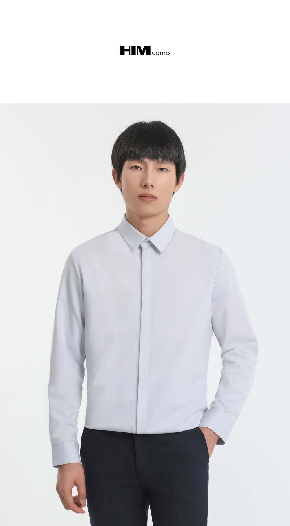 HIM漢崇 商务通勤衬衫男斯文修身上班宴会方领长袖衬衣 2025秋季