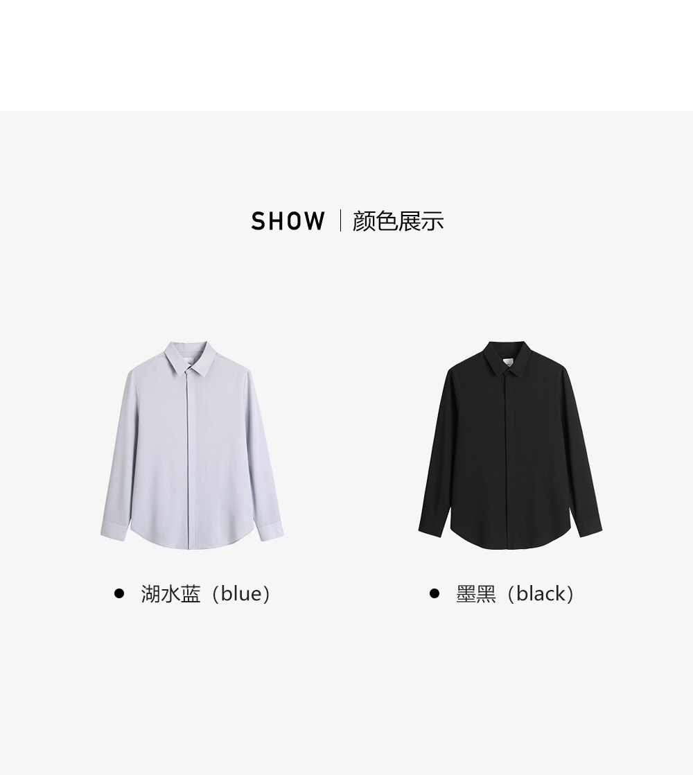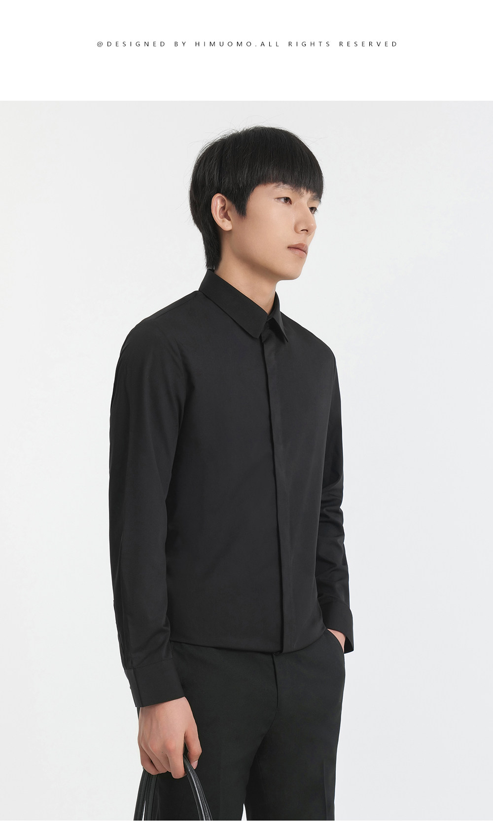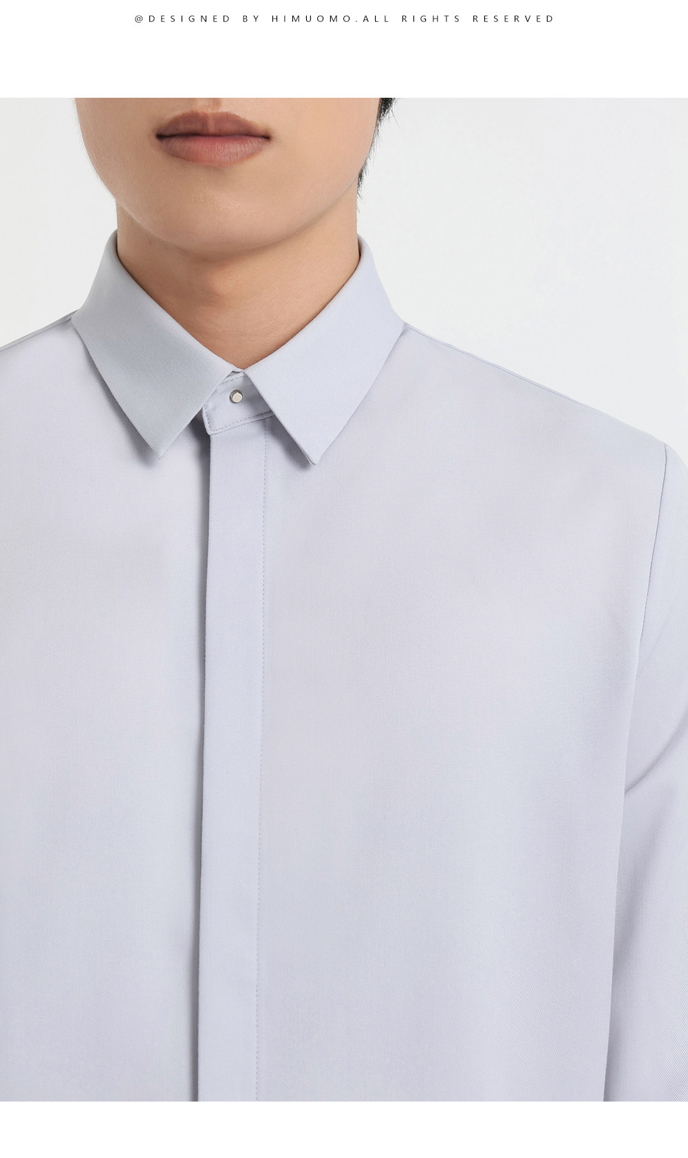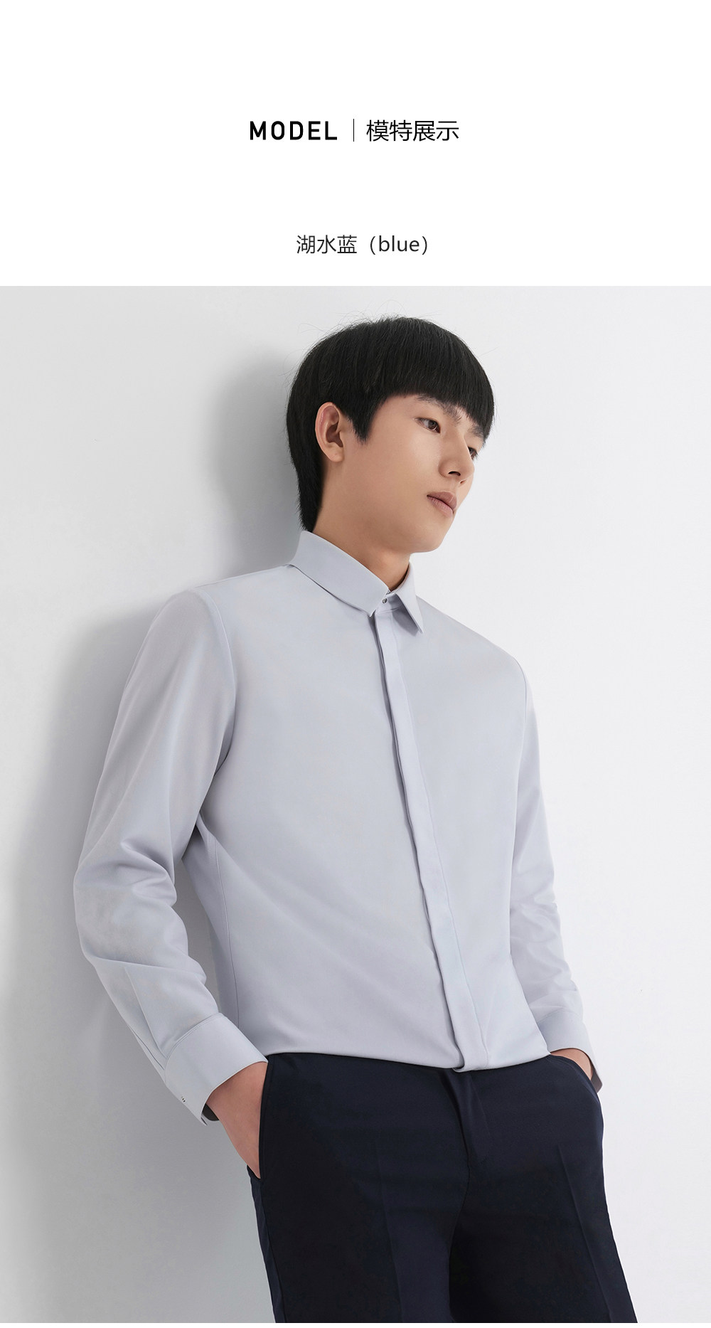 HIM漢崇 商务通勤衬衫男斯文修身上班宴会方领长袖衬衣 2025秋季