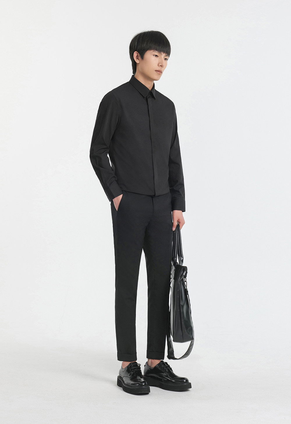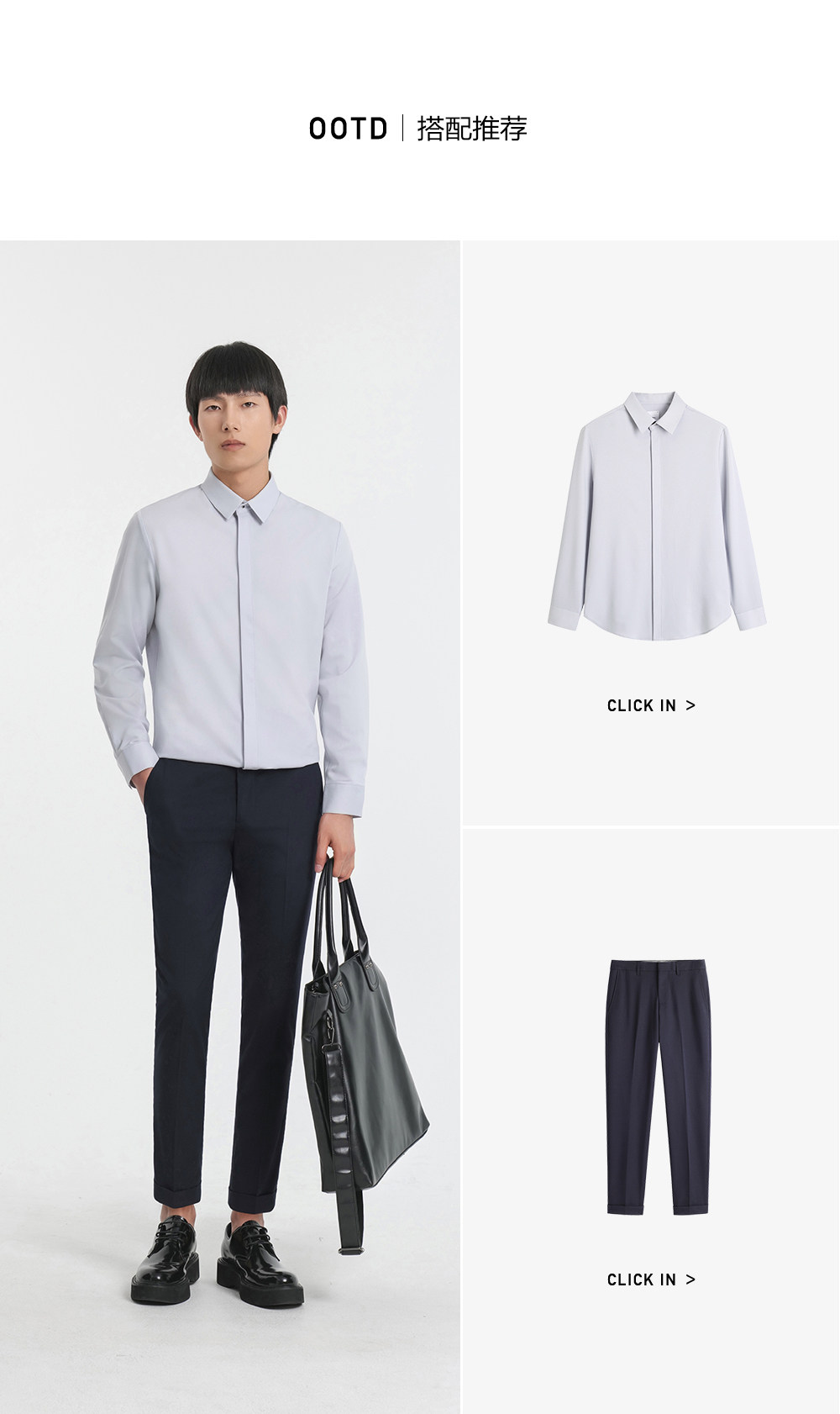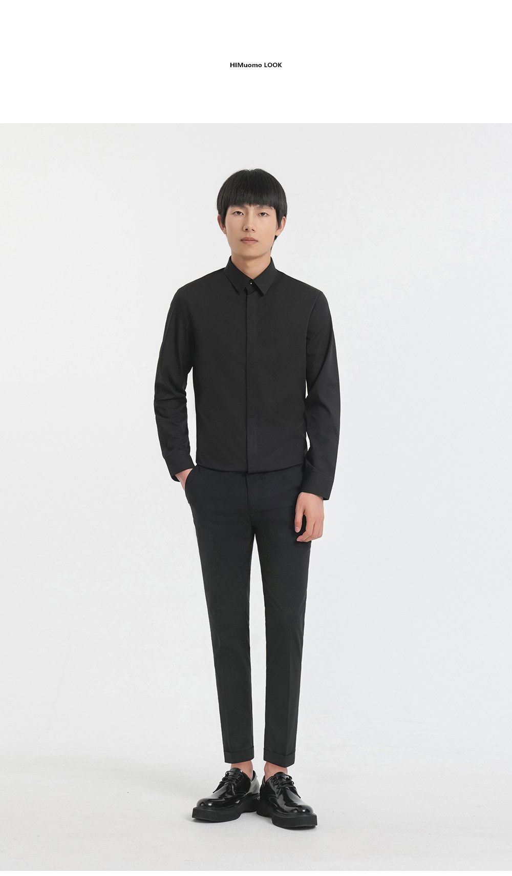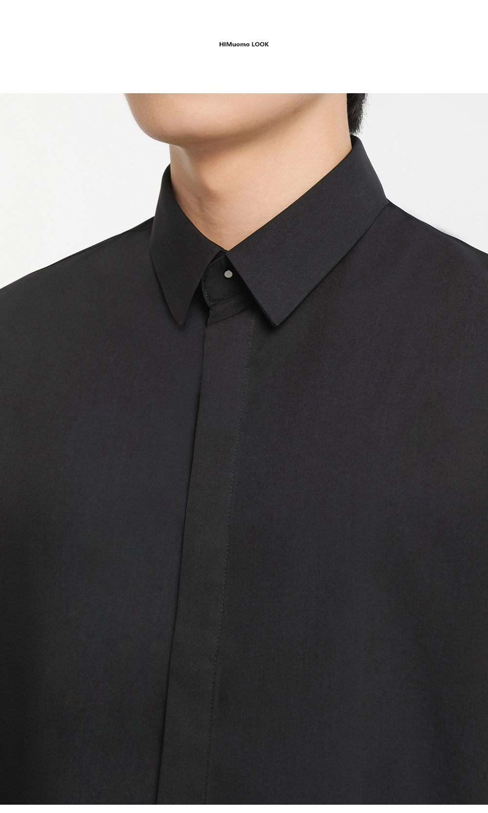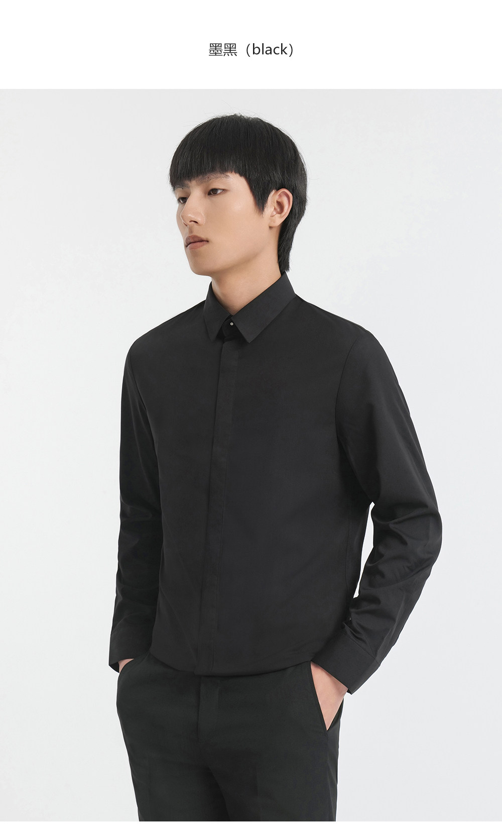 HIM漢崇 商务通勤衬衫男斯文修身上班宴会方领长袖衬衣 2025秋季