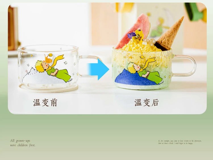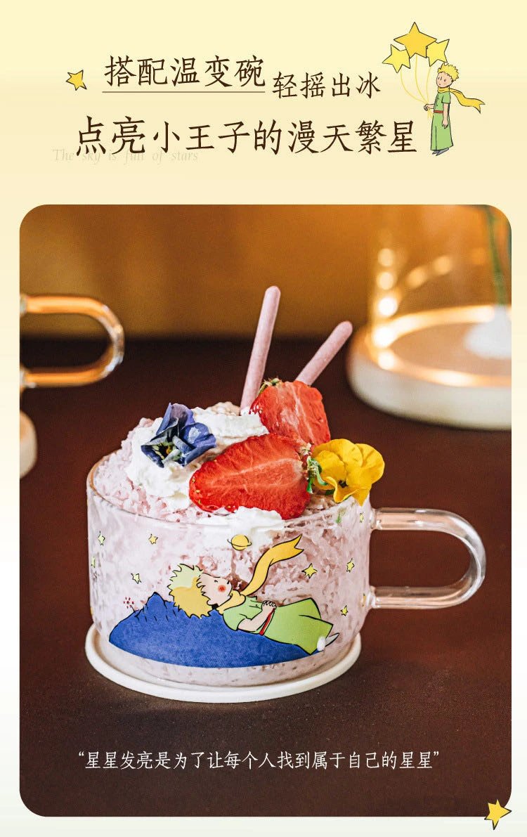 🥣搭配玻璃温变碗 沙沙的切削声,扑簌簌落下的绵绵冰,搭配温变冰碗,当温度降低到15℃开始就会慢慢呈现温变,点亮小王子的漫天繁星,超级治愈✨✨✨
