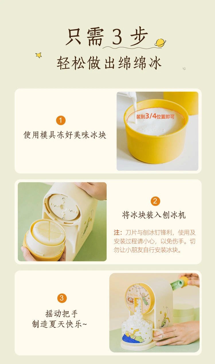 【🔥夏日王炸新品】 | 树可&小王子联名『治愈星球刨冰机』限量开团❗❗❗ 🍨绝对是今年夏天最称心的礼物~ ✅刨冰细腻,刀片黄金角度调试,轻松出冰,绵密 ✅机器稳固不晃动,人性化设计,轻松刨冰 ✅小王子IP联名,附赠正版周边 ✅不锈钢钉板,抓冰稳固,刨冰轻松顺畅 正版授权🧊绵绵冰🧊丝滑刨冰🧊礼盒包装🧊玩一场夏日清凉游戏~ 🌠这个夏天,让B612星球的凉风吹进你家~