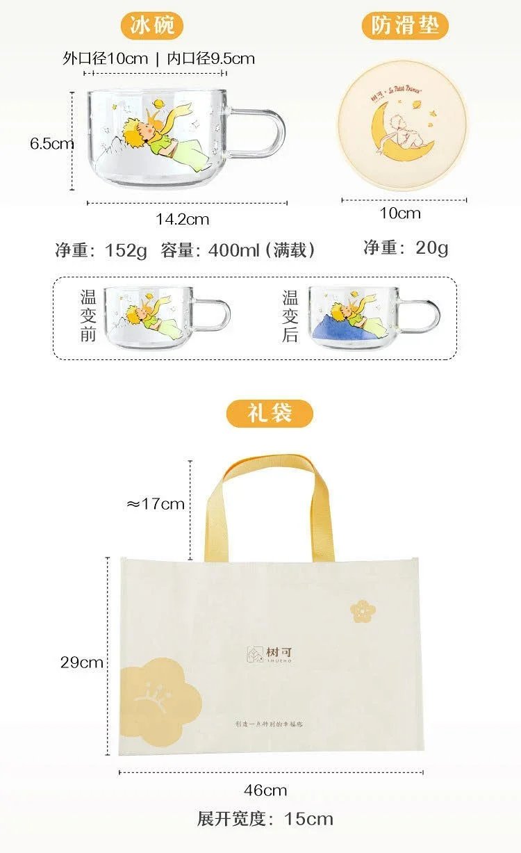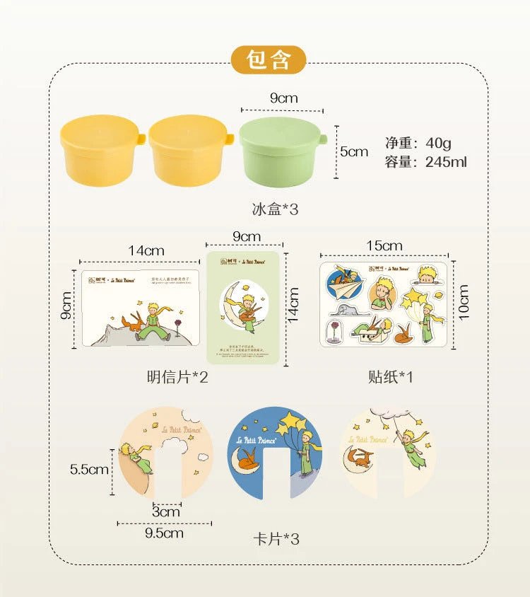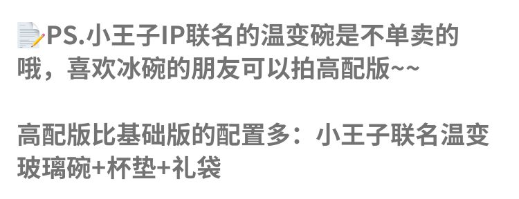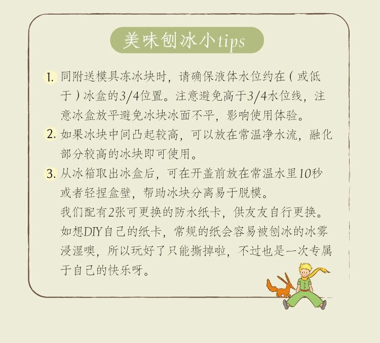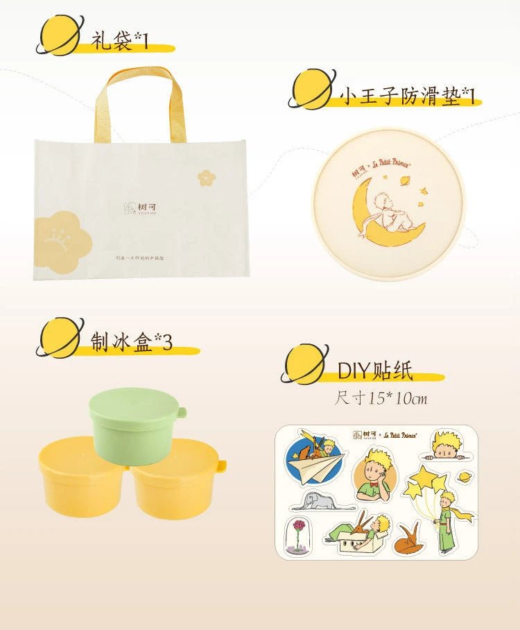签收这份来自B612星球的礼物🖋 ✅【基础款套装】小王子刨冰机+冻冰模具*3+替换卡片*3+明信片*2+贴纸+折页说明书 ——发货方式:彩盒+邮购盒 ✅【高配款套装】小王子刨冰机+冻冰模具*3+替换卡片*3+明信片*2+贴纸+折页说明书+温变玻璃碗+防滑杯垫+礼袋 ——发货方式:彩盒+邮购盒+发货箱