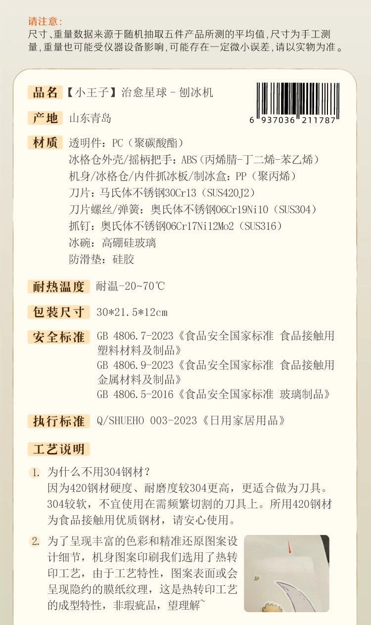 夏日王炸新品树可&小王子联名治愈星球刨冰机刨冰细腻刀片黄金角度调试轻松出冰绵密机器稳固不晃动人性化设计轻松刨冰基地直邮