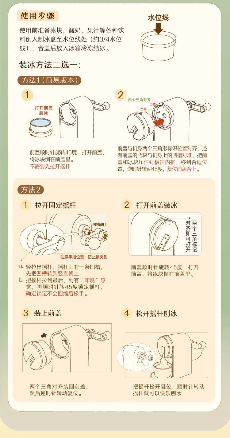 🤖操作简单 就像小时候的铅笔刨,转动把手就能轻松刨出蓬松细腻的绵绵冰,侧出冰设计更直观顺手🤗