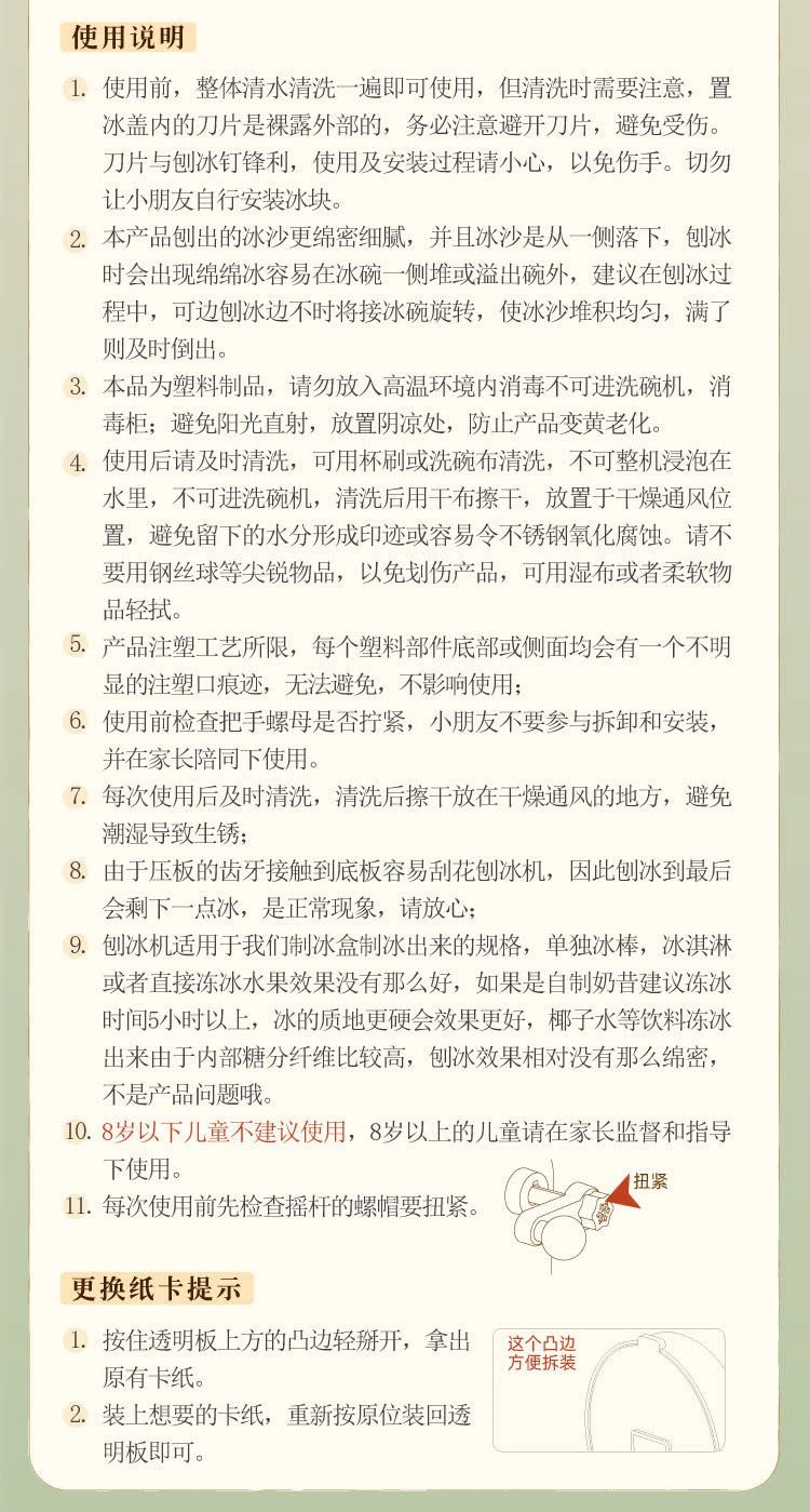 “所有的大人最初都是孩子。” 💞希望通过这款刨冰机,让大家在炎炎夏日里,享受一份清凉与童趣。制冰的过程就像一场快乐的游戏,每一口绵绵冰都让人从内到外舒爽妥帖。