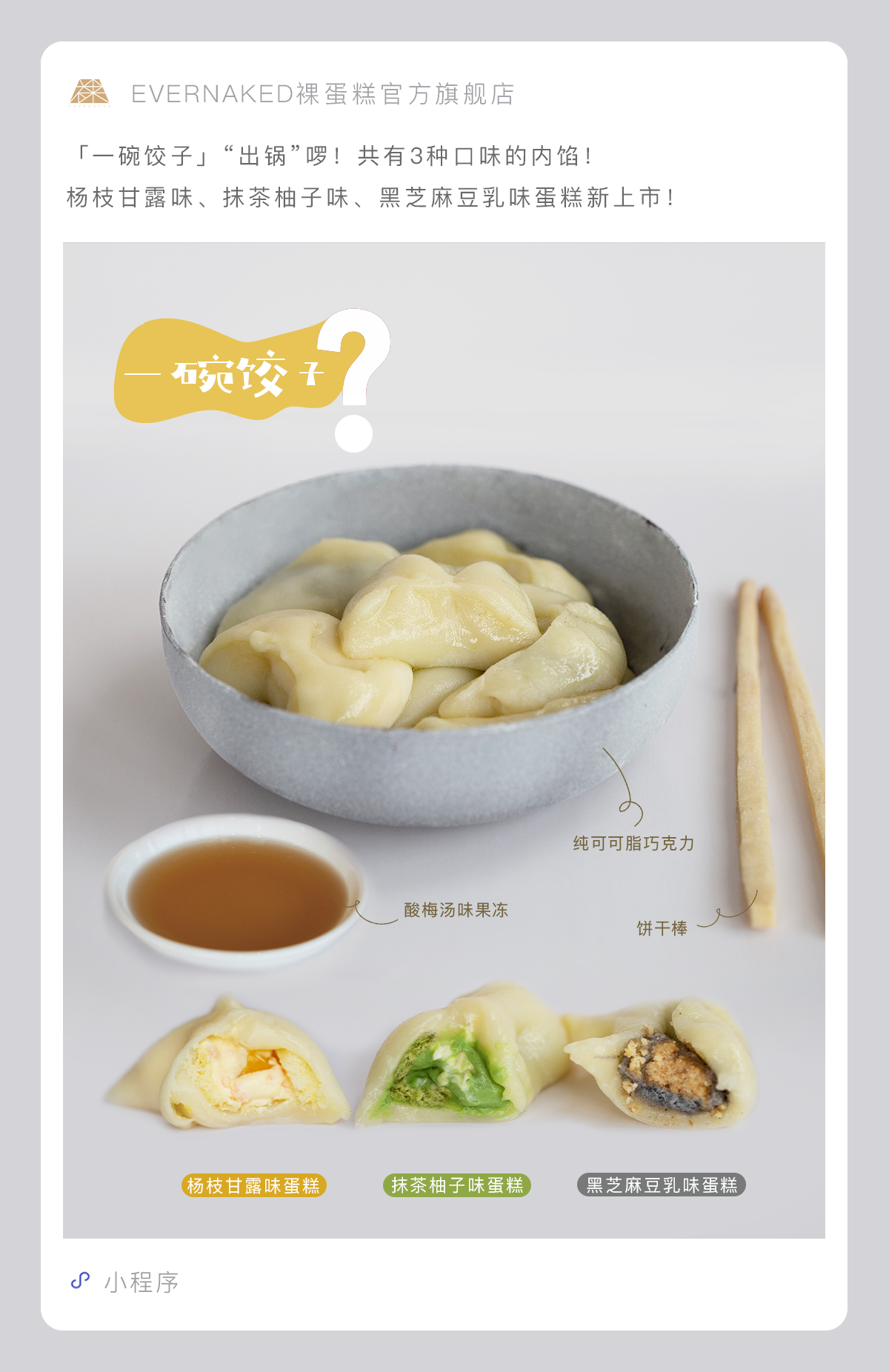 「一碗饺子」杨枝甘露味、抹茶柚子味&黑芝麻豆乳味蛋糕
