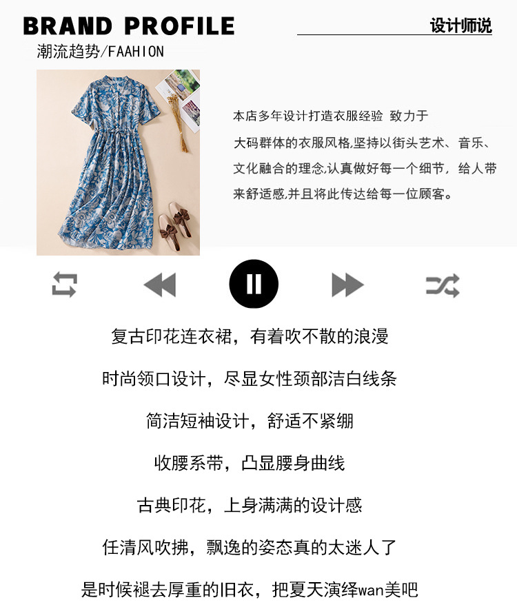 GYH 676轻薄连衣裙新品短袖文艺复古裙