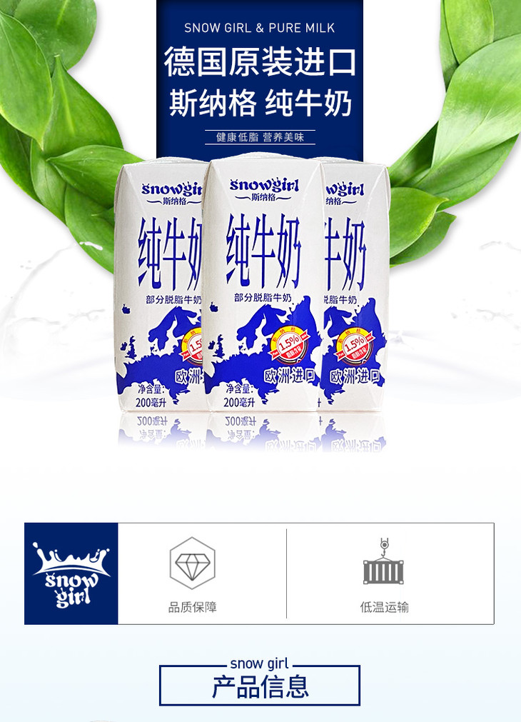 200ml*10斯纳格纯牛奶1.5% 德国原装进口
