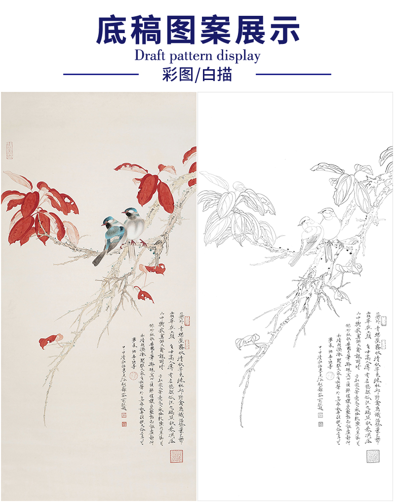 任重花鸟工笔画白描底稿《红叶小鸟》临摹勾线高清打印稿RD12