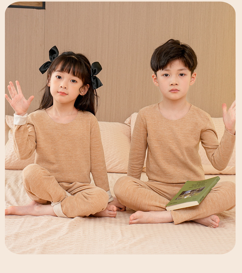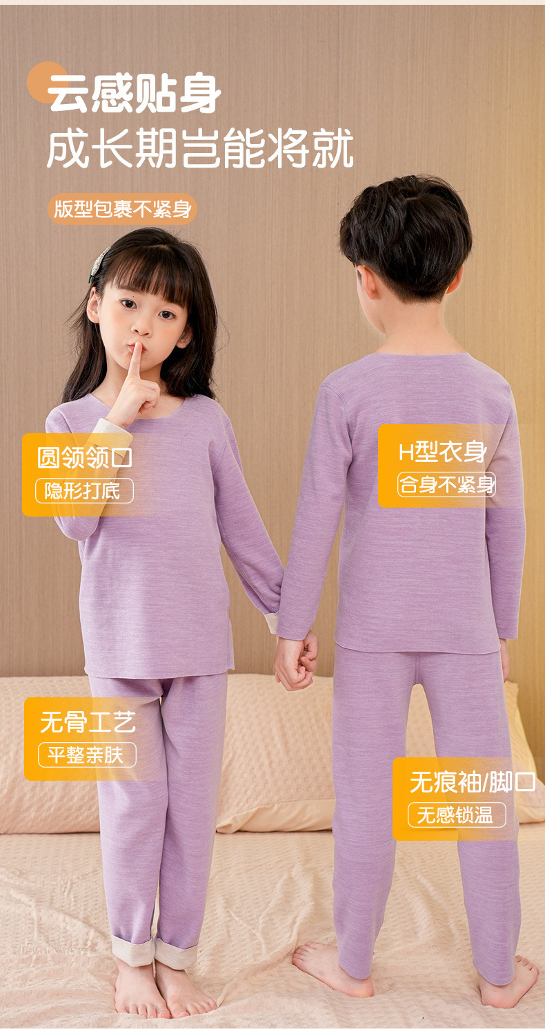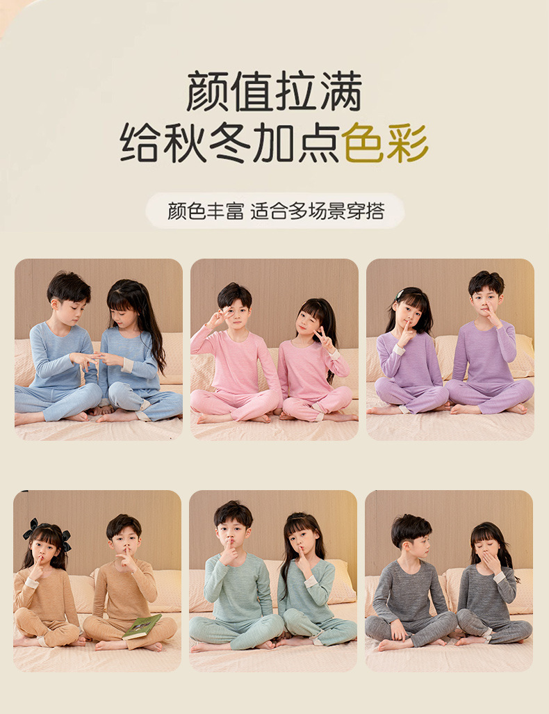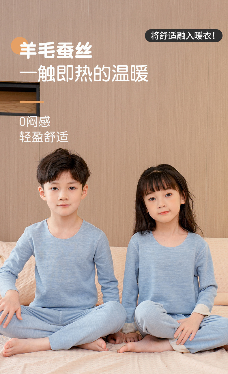 【羊毛蚕丝,一触即热的温暖】儿童羊毛蚕丝保暖内衣中高领男女童睡衣家居加厚宝宝秋衣秋裤套装优异的透气性和柔软度,让孩子们在秋季享受舒适自在的穿着体验