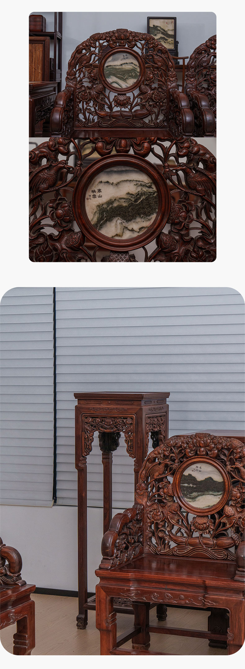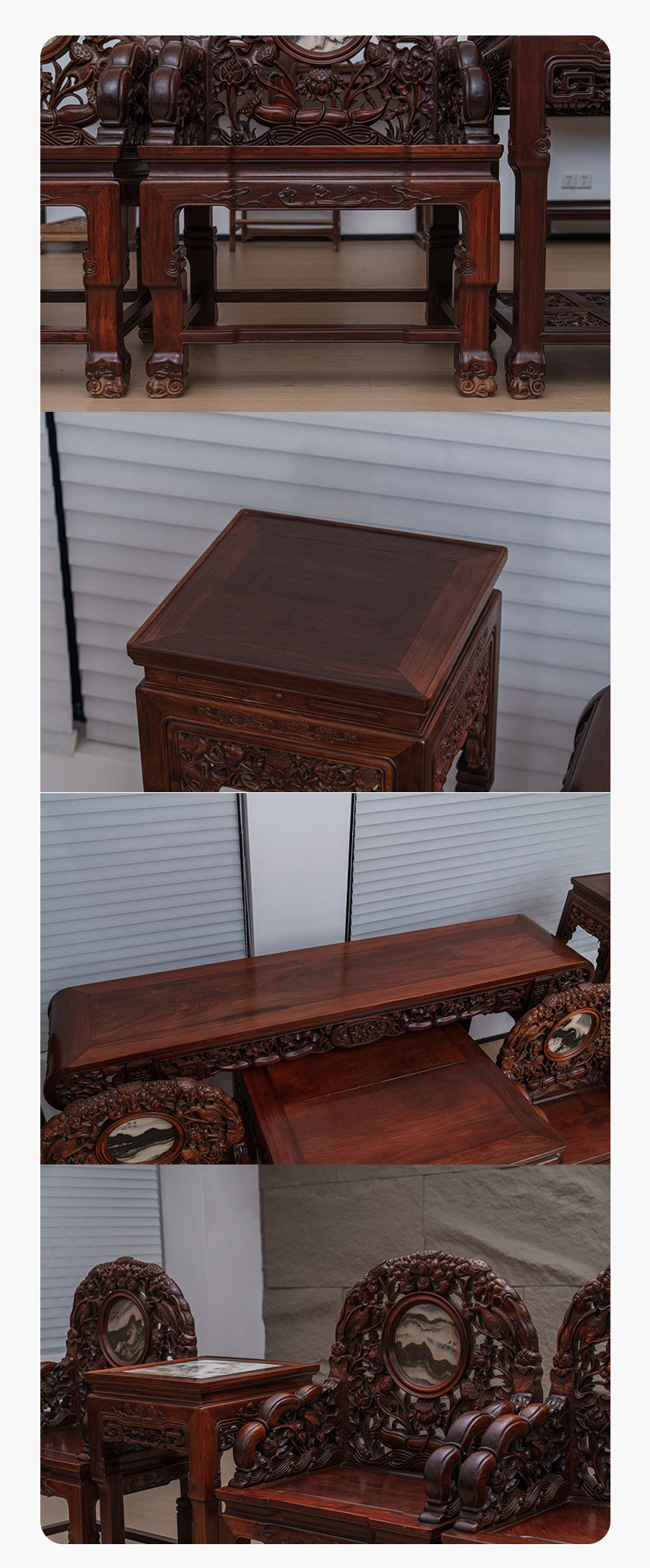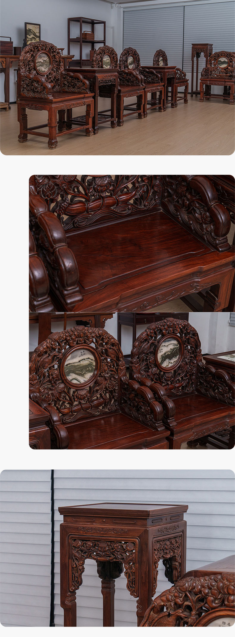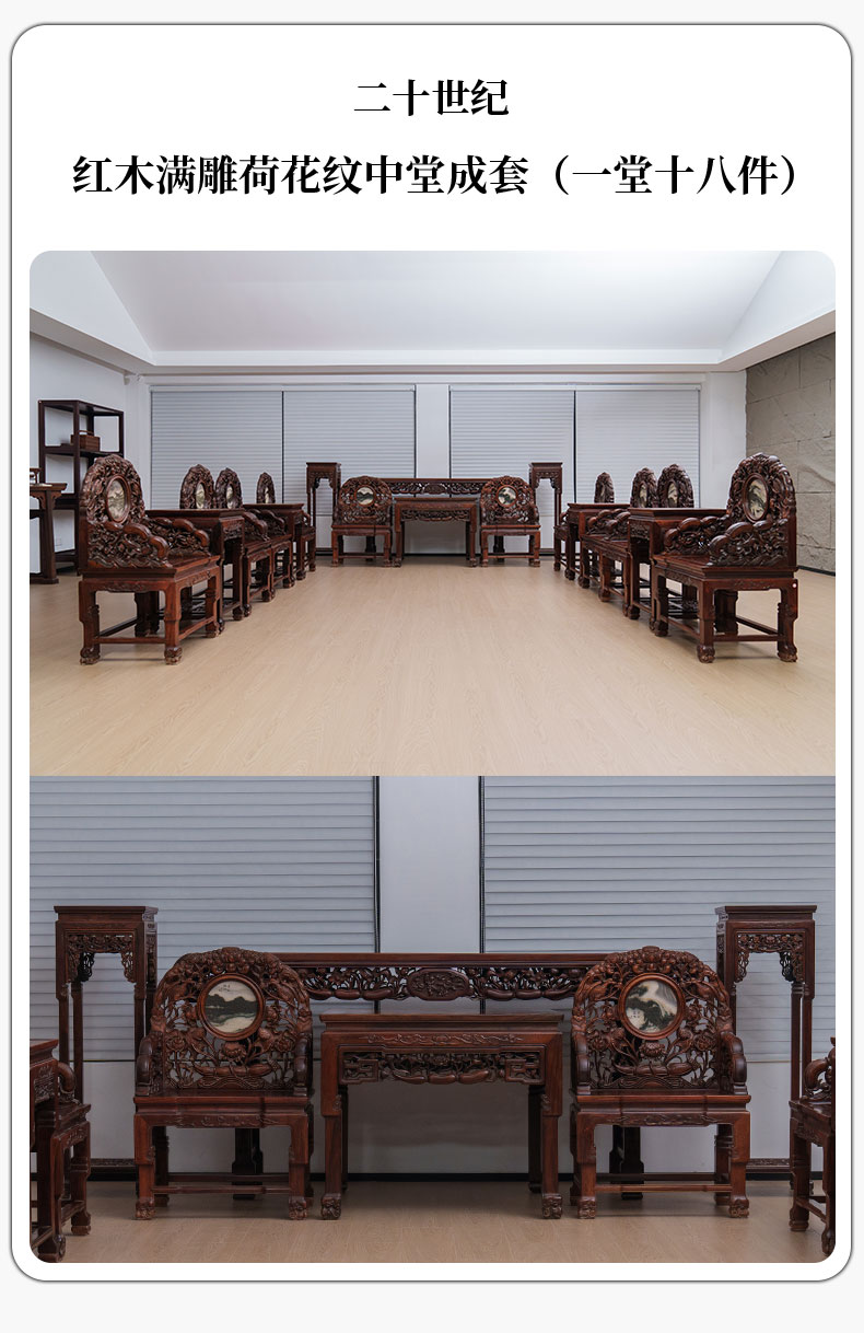 二十世纪 红木满雕荷花纹中堂成套(一堂十八件)