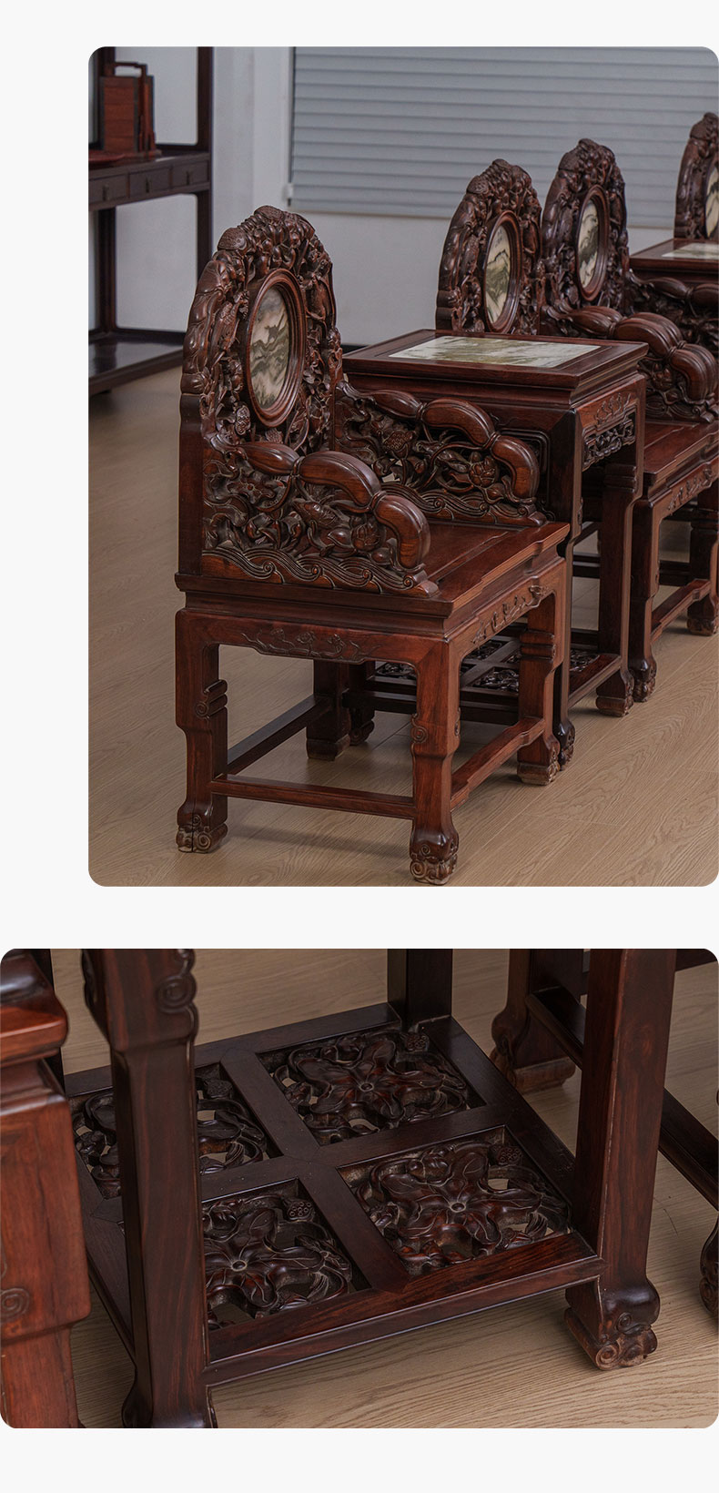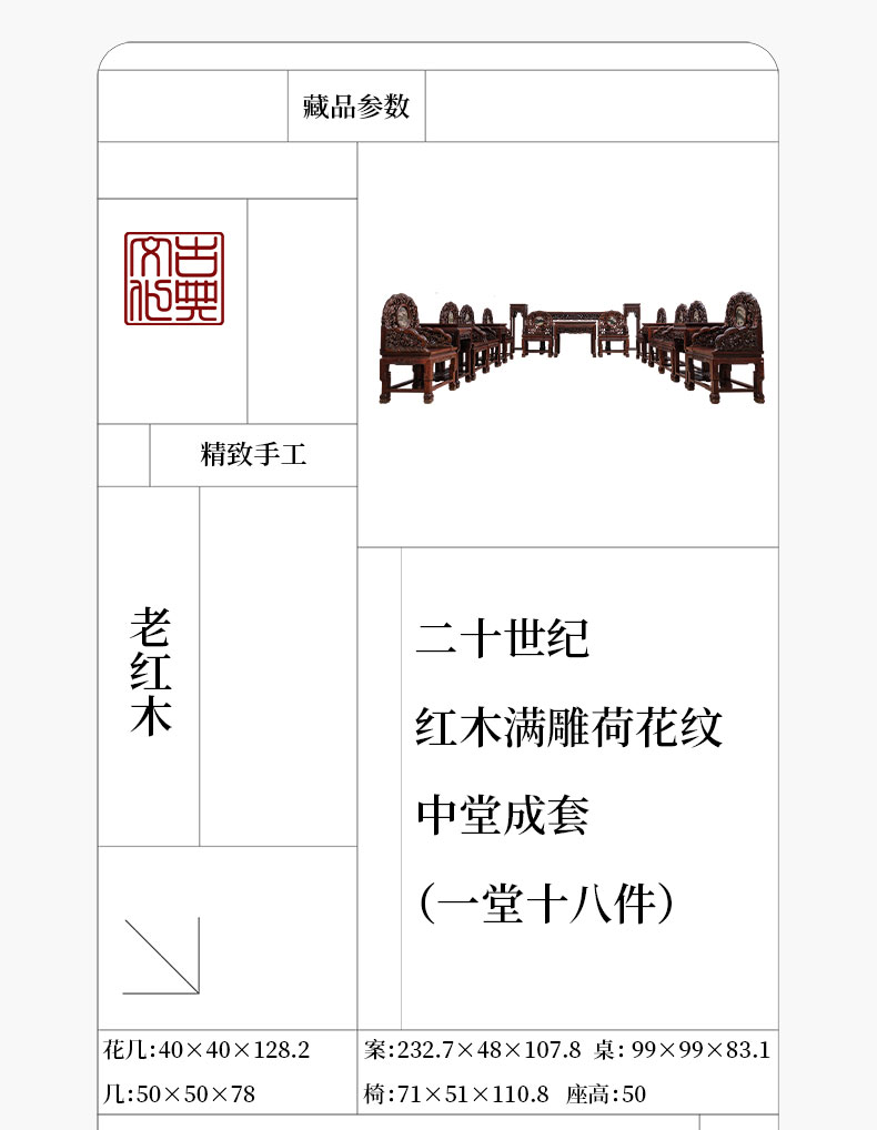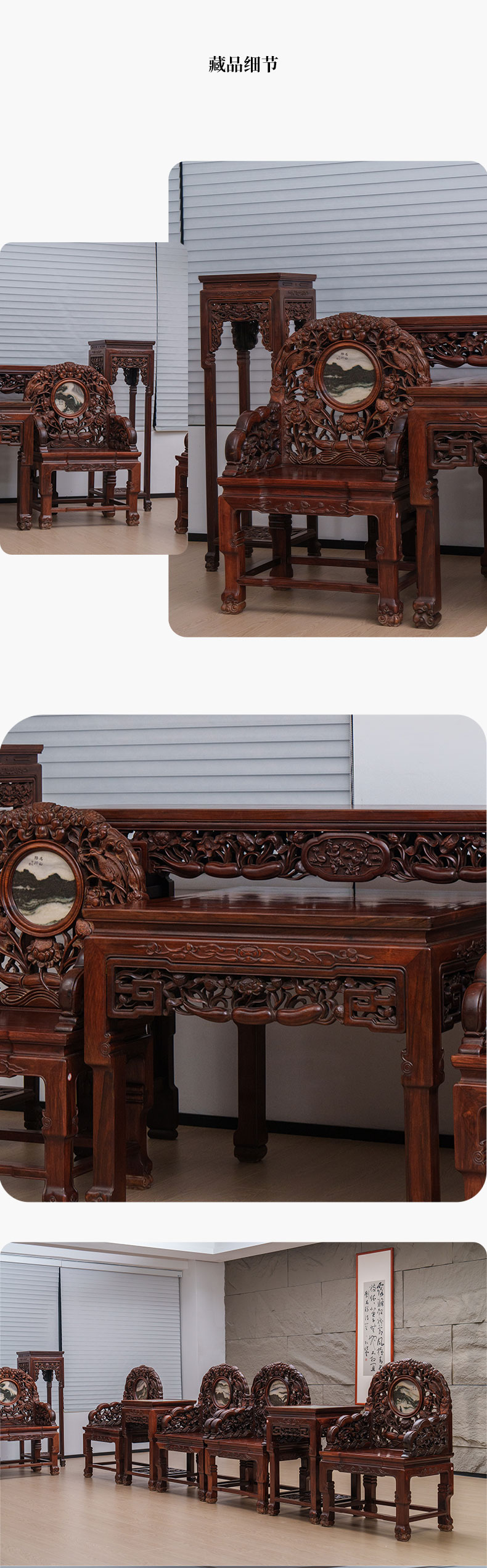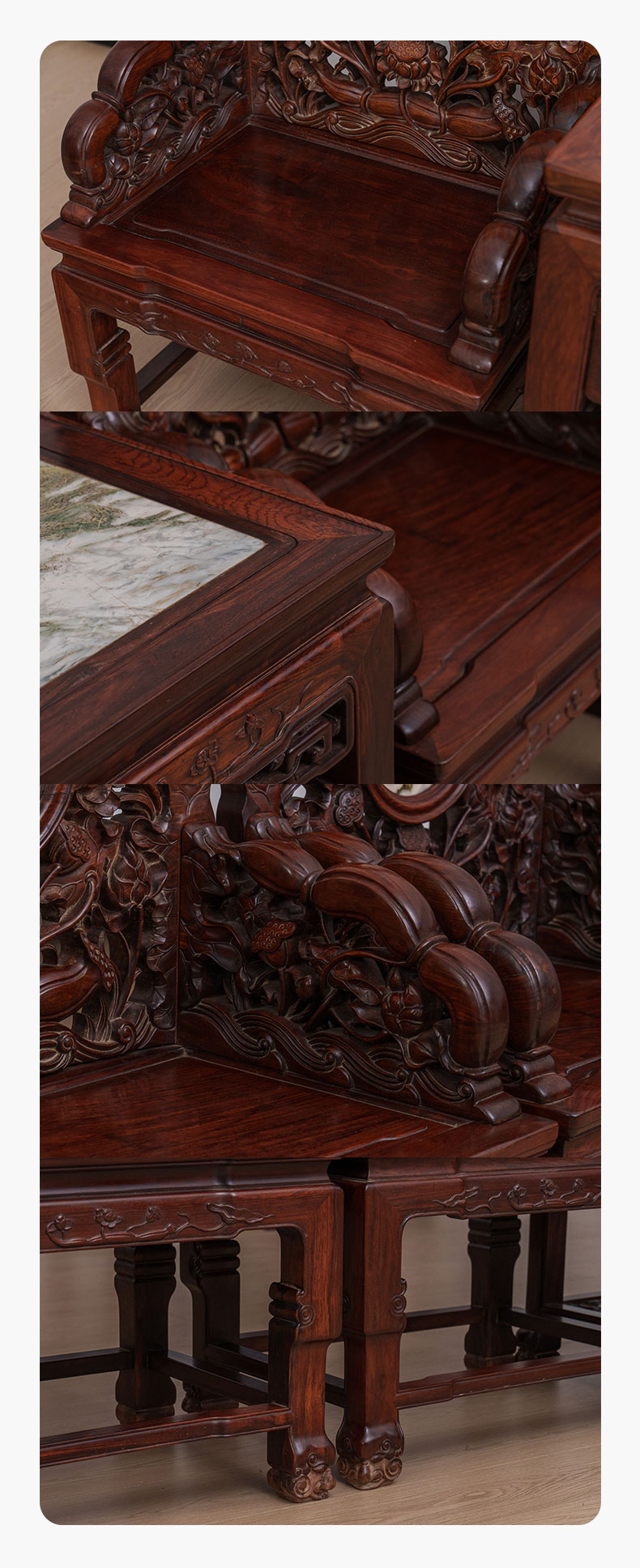 二十世纪 红木满雕荷花纹中堂成套(一堂十八件)