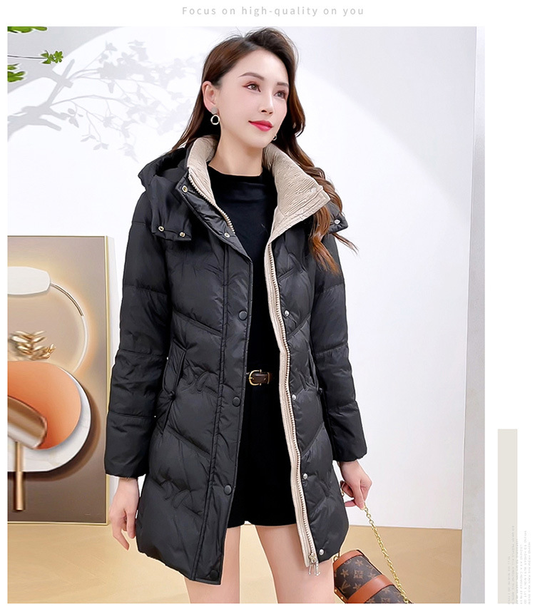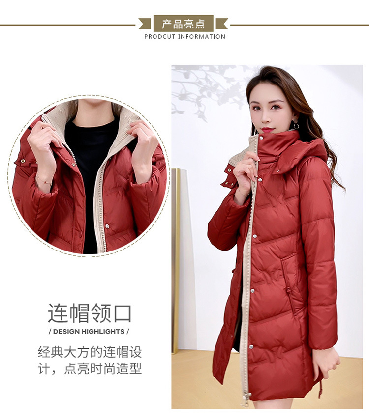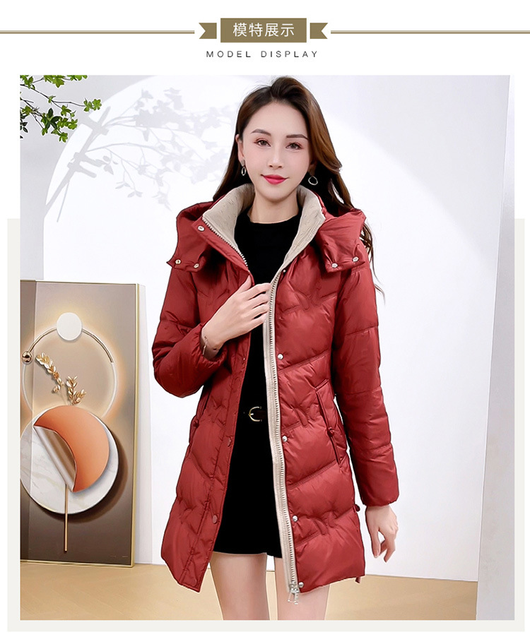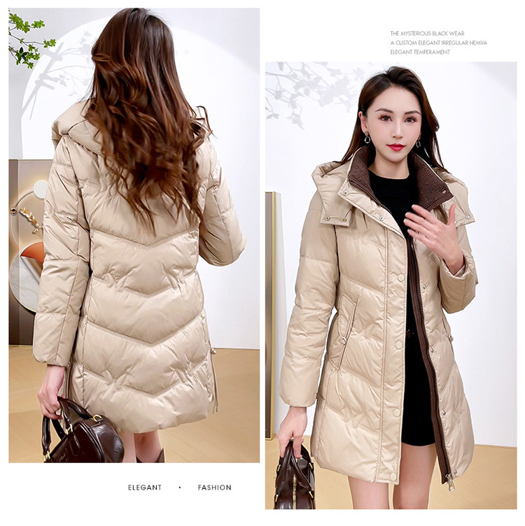 QYMCR-XN24B21-L简约中长款连帽羽绒服24年冬款时髦洋气妈妈装加厚保暖白鸭绒外套 商品图0