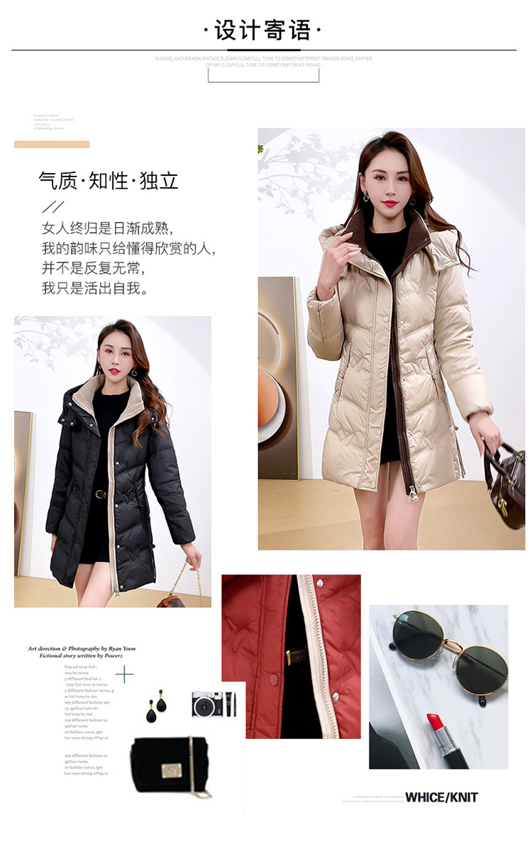 QYMCR-XN24B21-L简约中长款连帽羽绒服24年冬款时髦洋气妈妈装加厚保暖白鸭绒外套 商品缩略图0