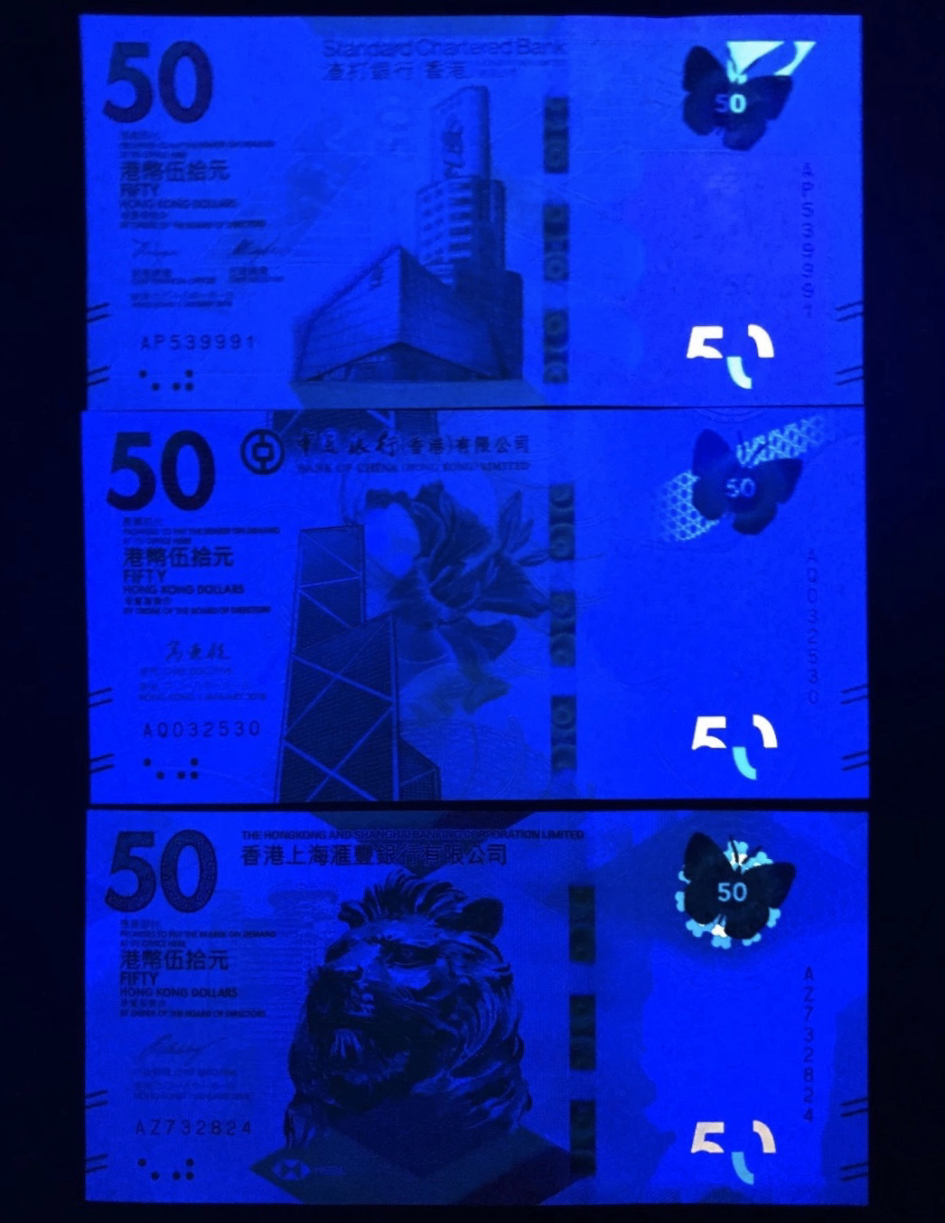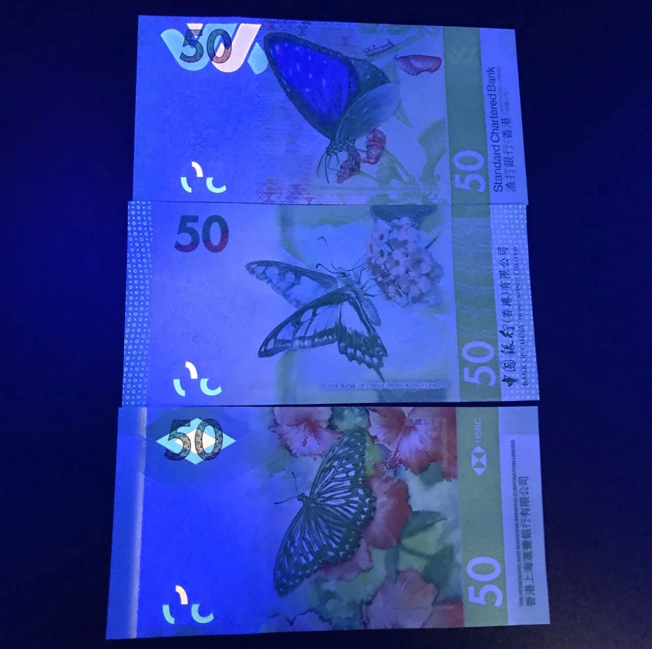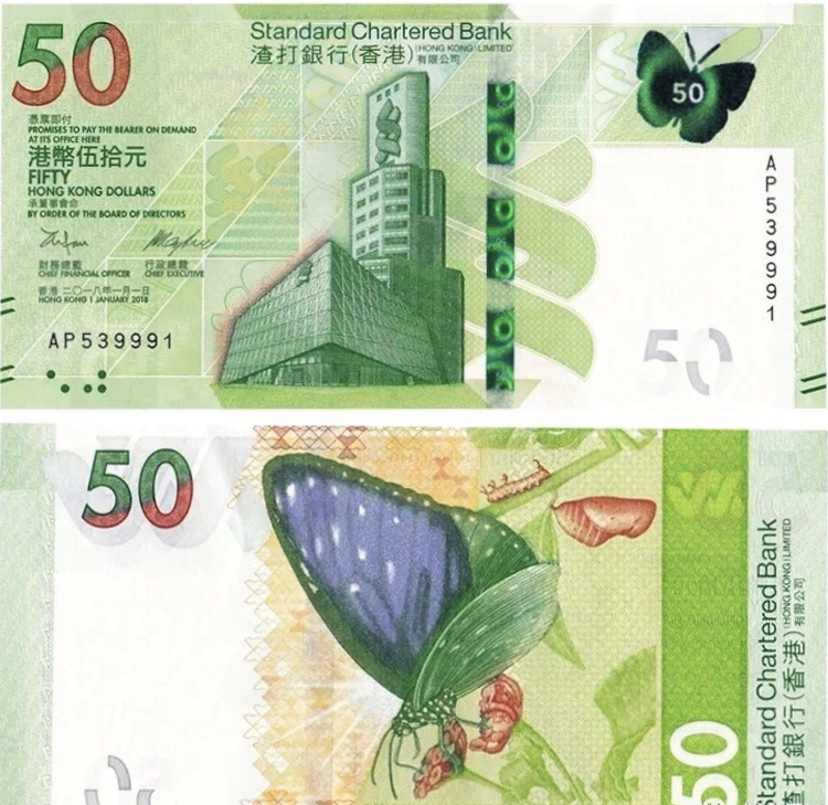 (中国银行(中银香港)、渣打银行、汇丰银行)新发行:中国银行(香港)新发行的50港币新钞、汇丰银行(香港)新发行的50港币新钞、渣打银行(香港)新发行50港币新钞,共计三张新钞。