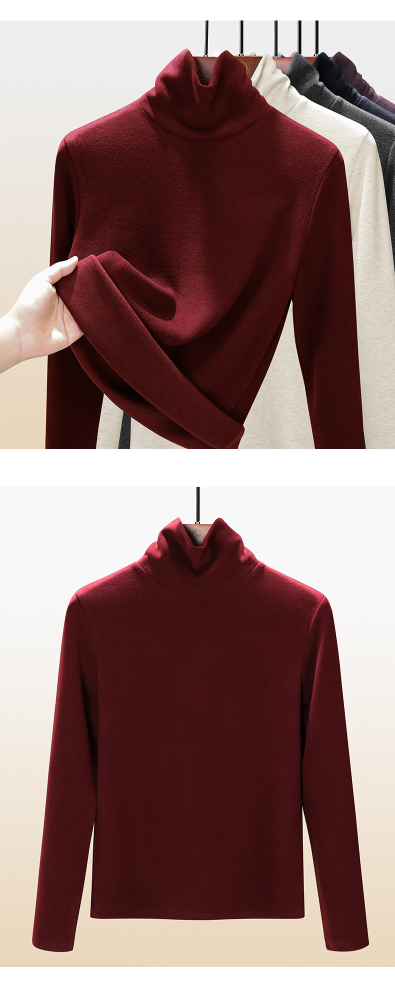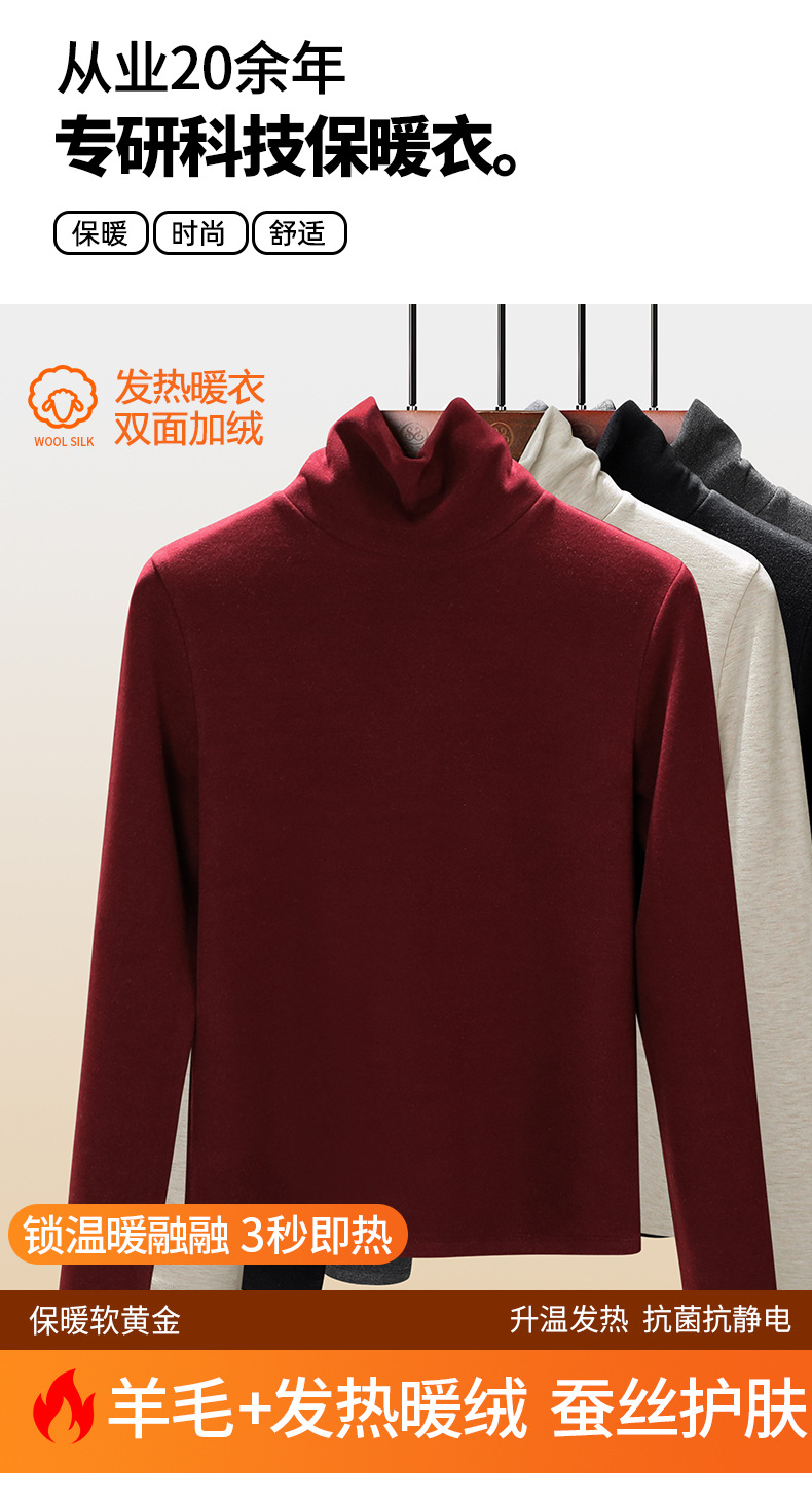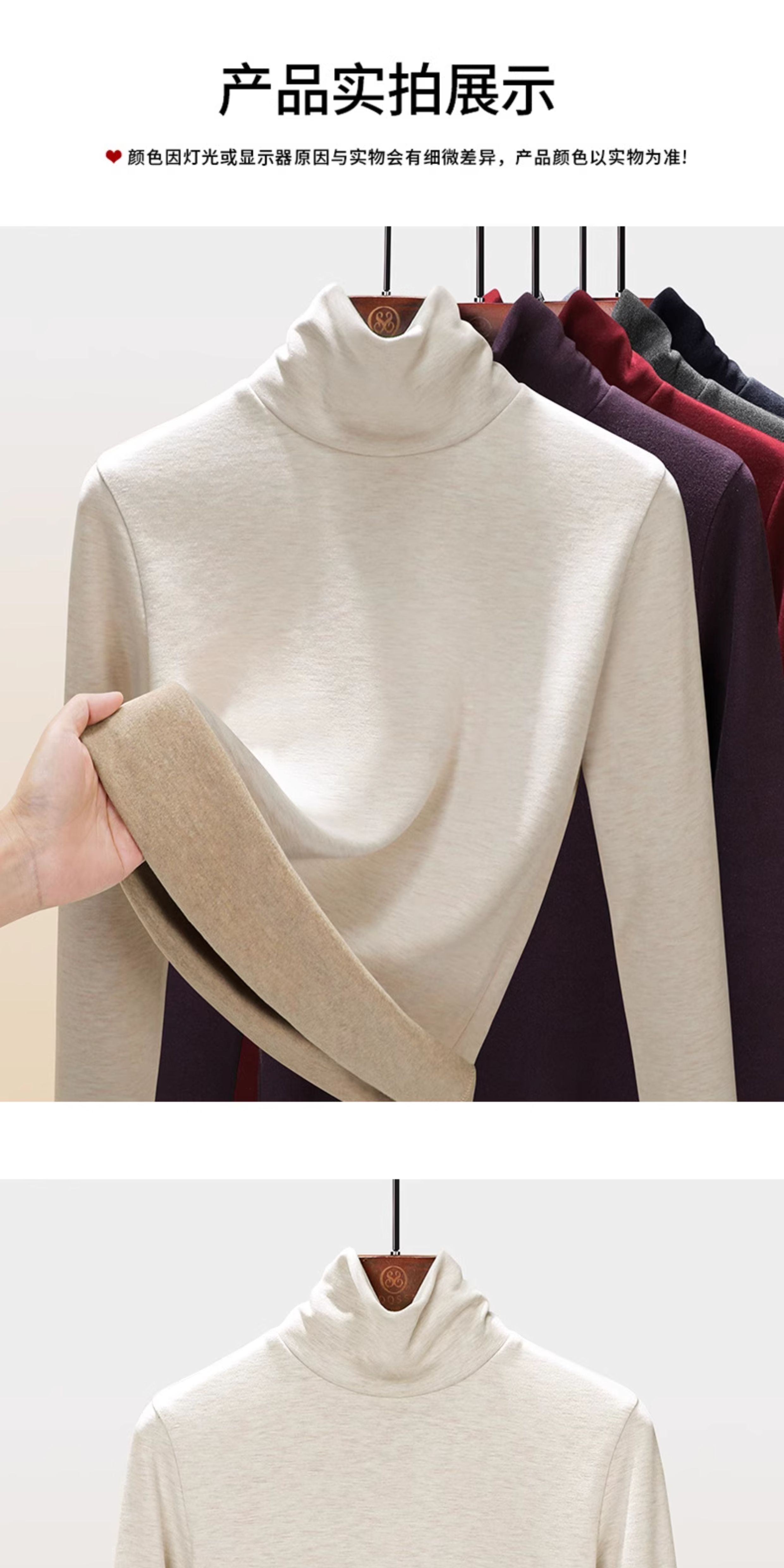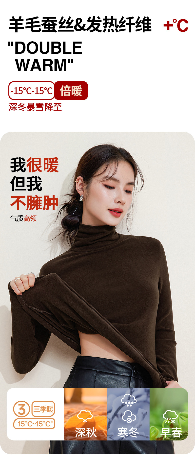 「自j」全新升级【铂金会员119/天猫159/差价40】(10221)洛诗琳含羊毛双面绒高领上衣2025秋冬加厚加绒蚕丝打底衫
