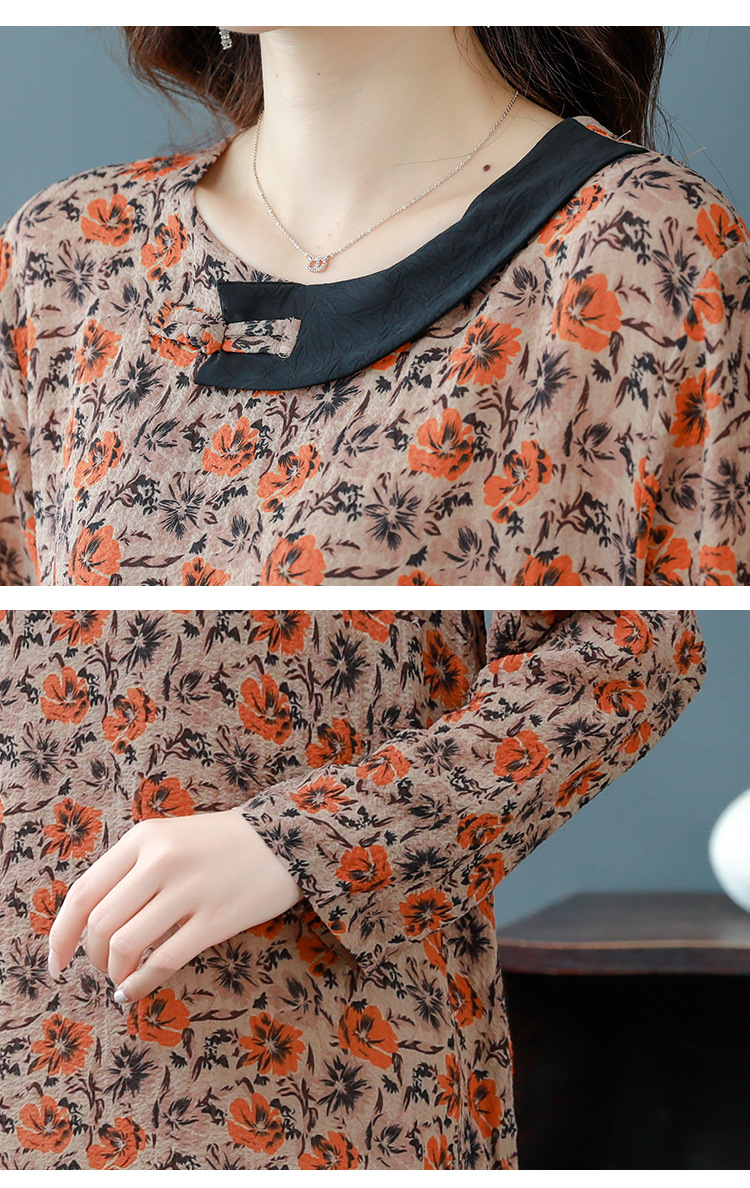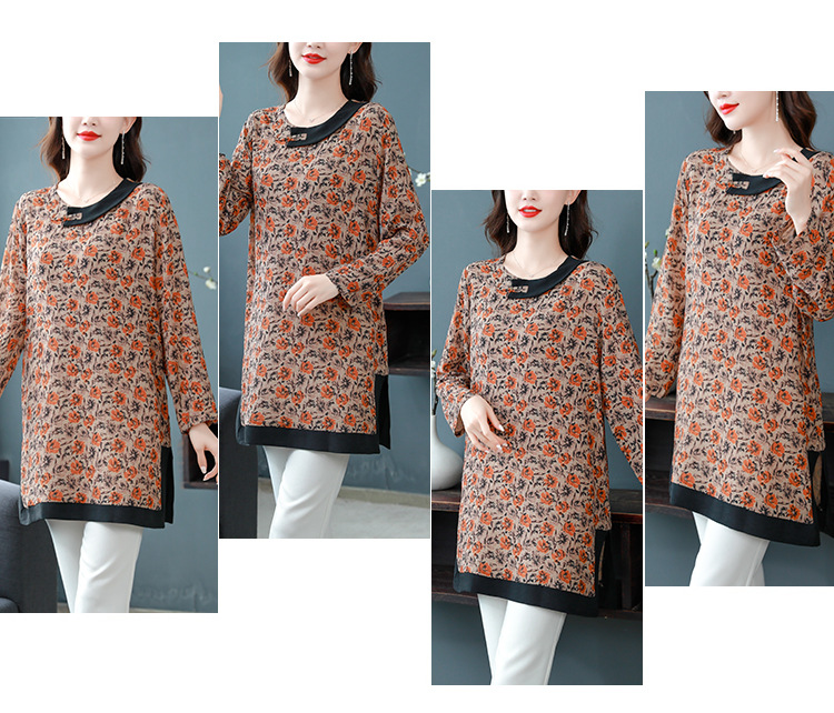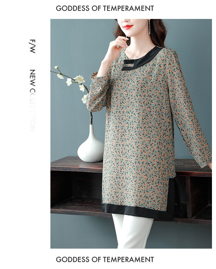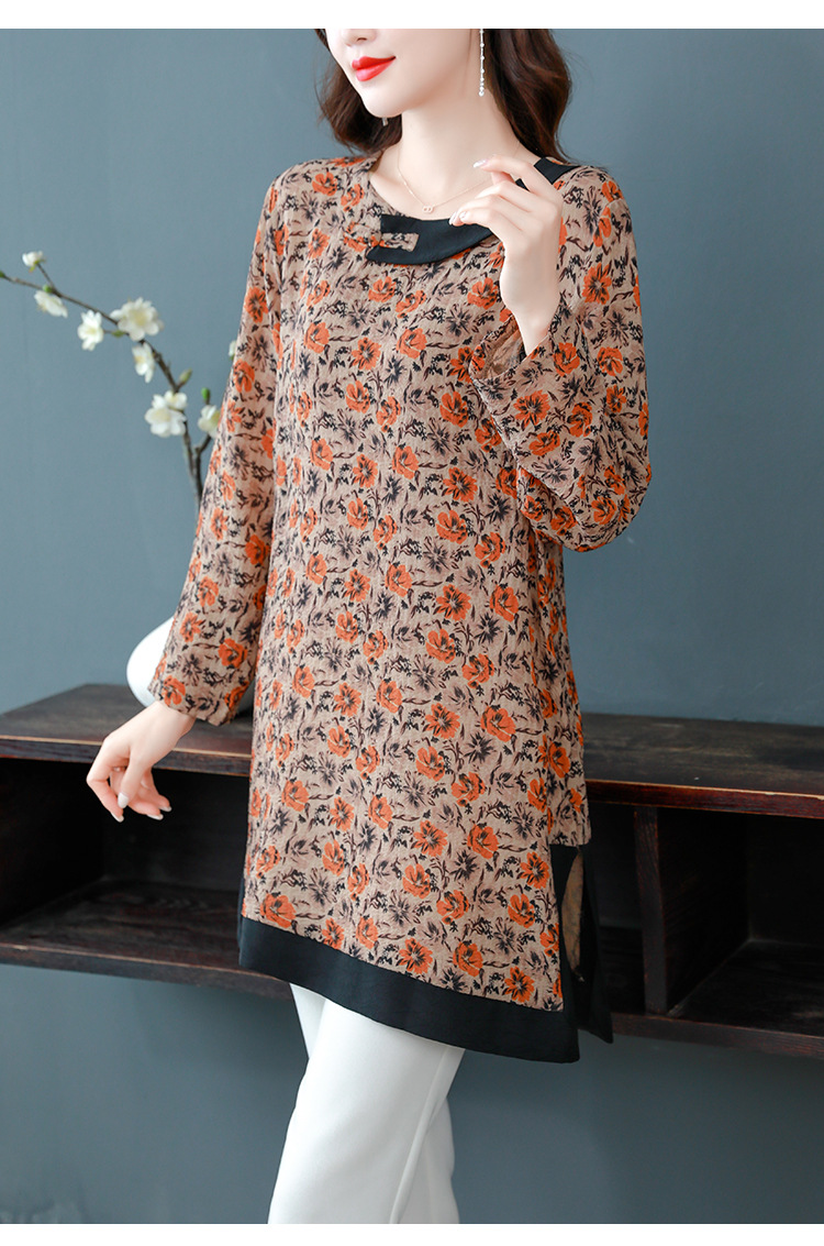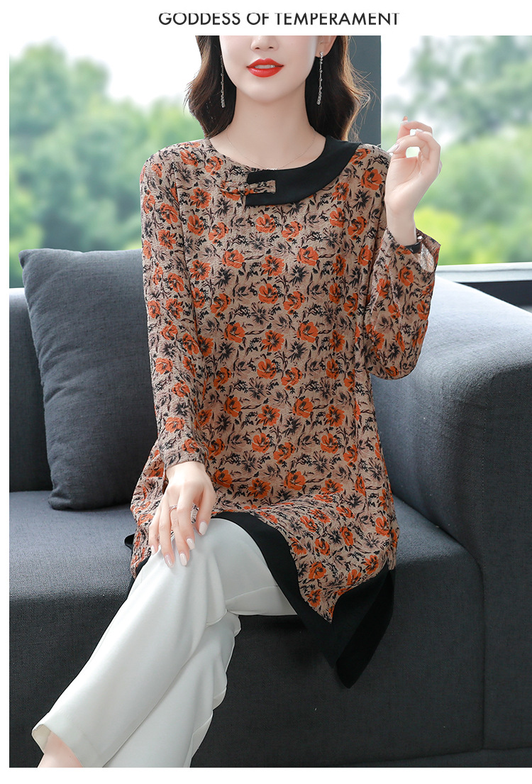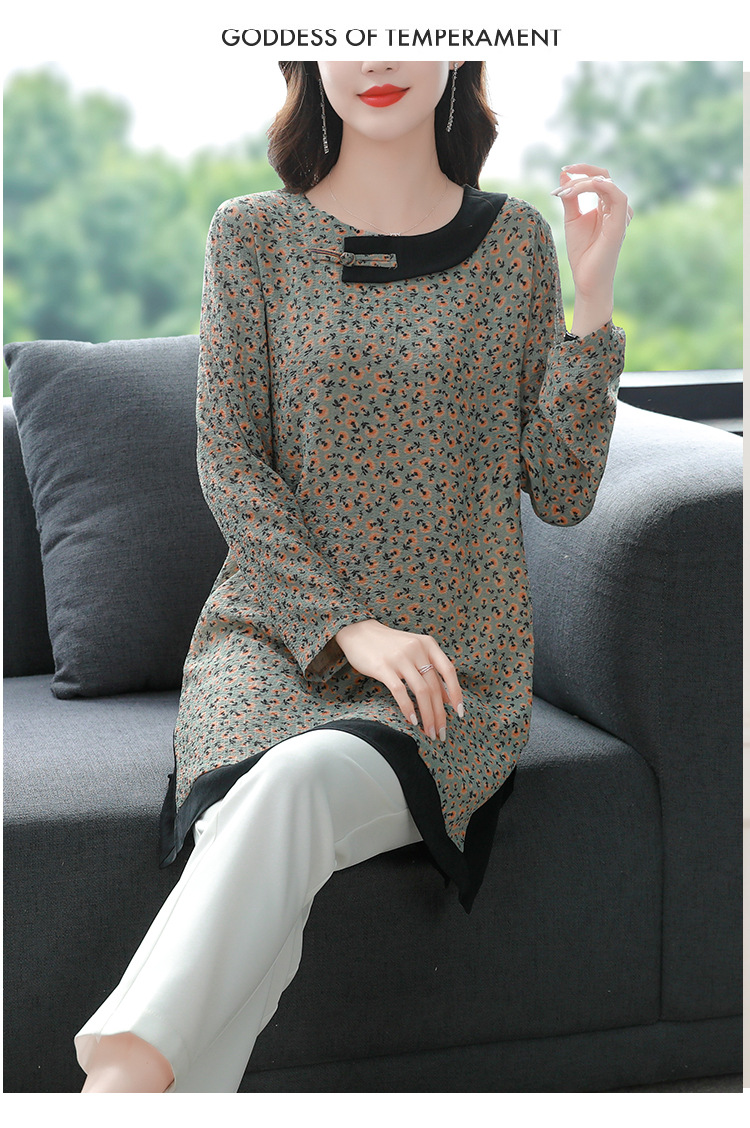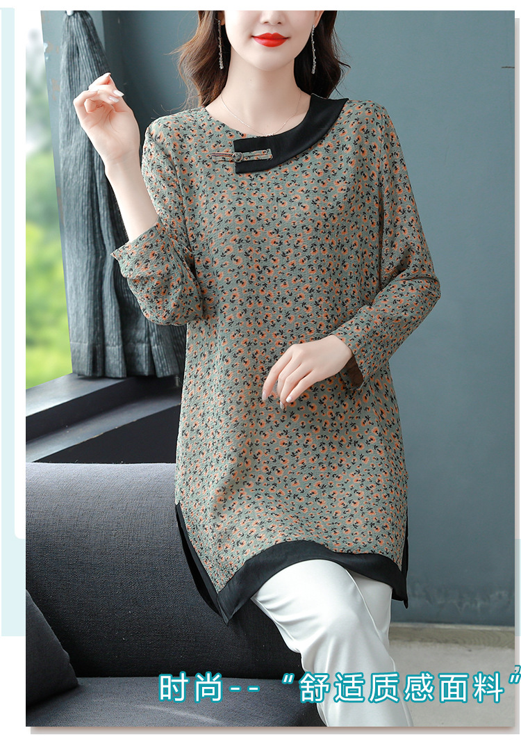 KQL A83N6063棉麻提花衬衫宽松遮肚盘扣民族风碎花