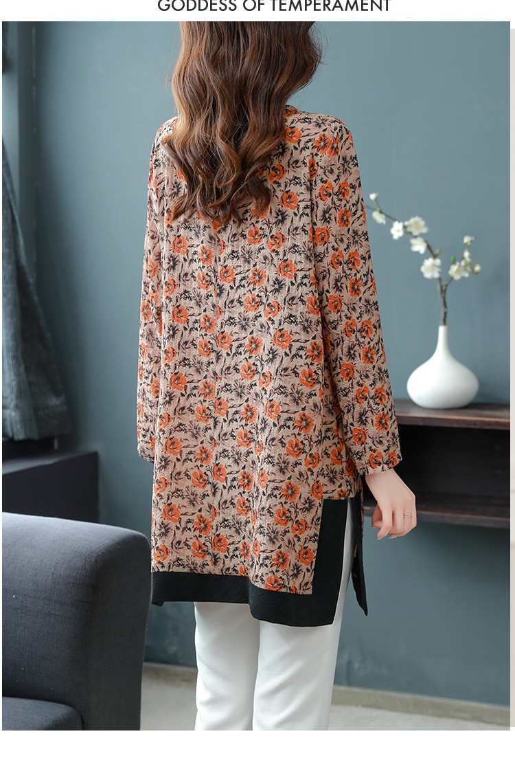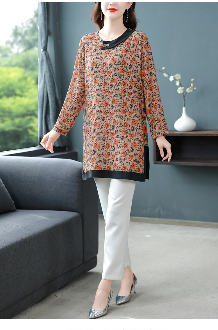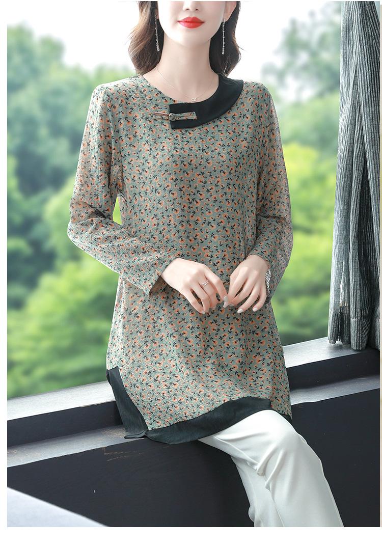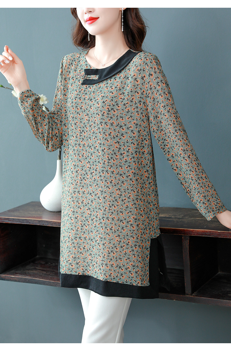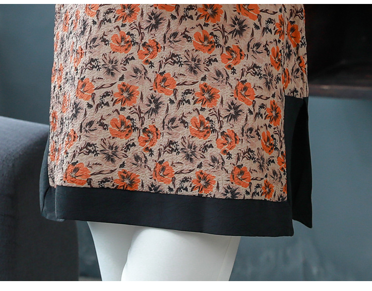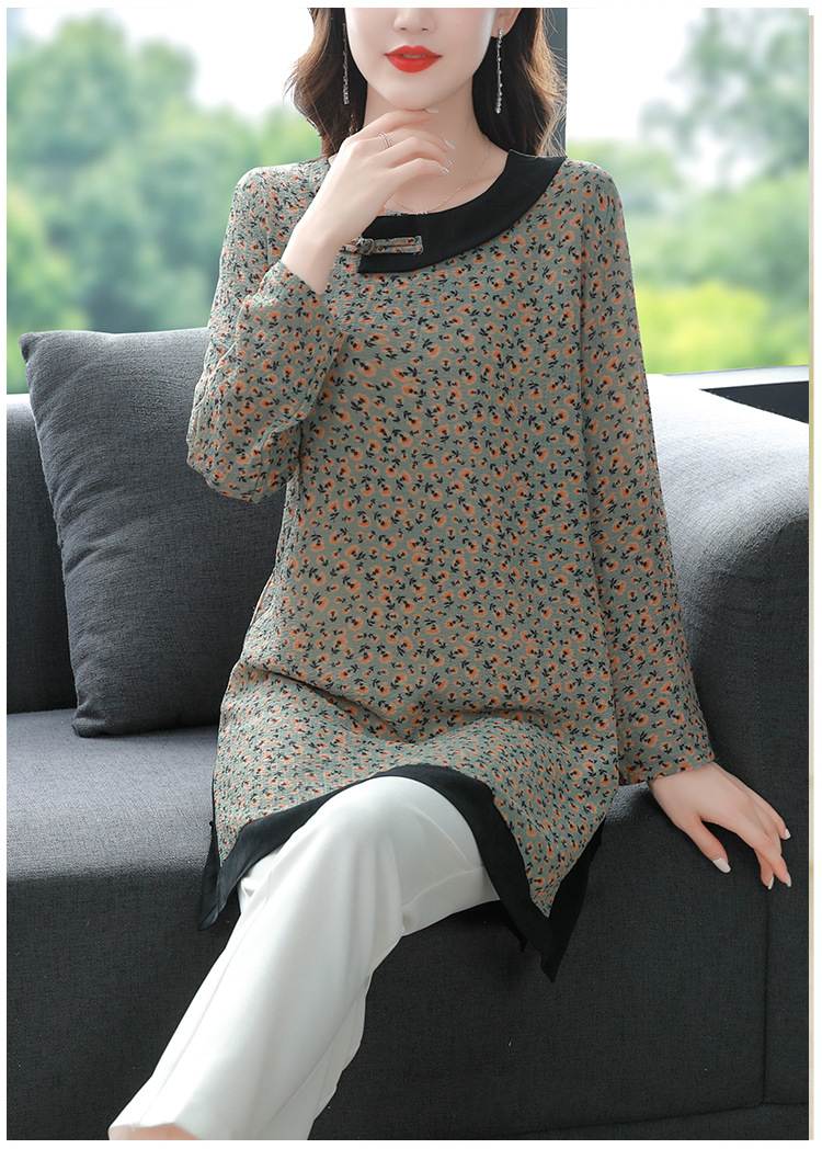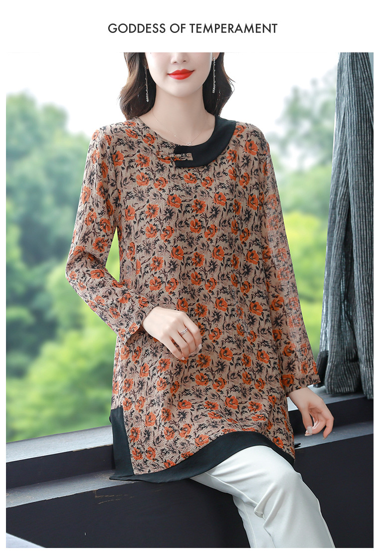 KQL A83N6063棉麻提花衬衫宽松遮肚盘扣民族风碎花