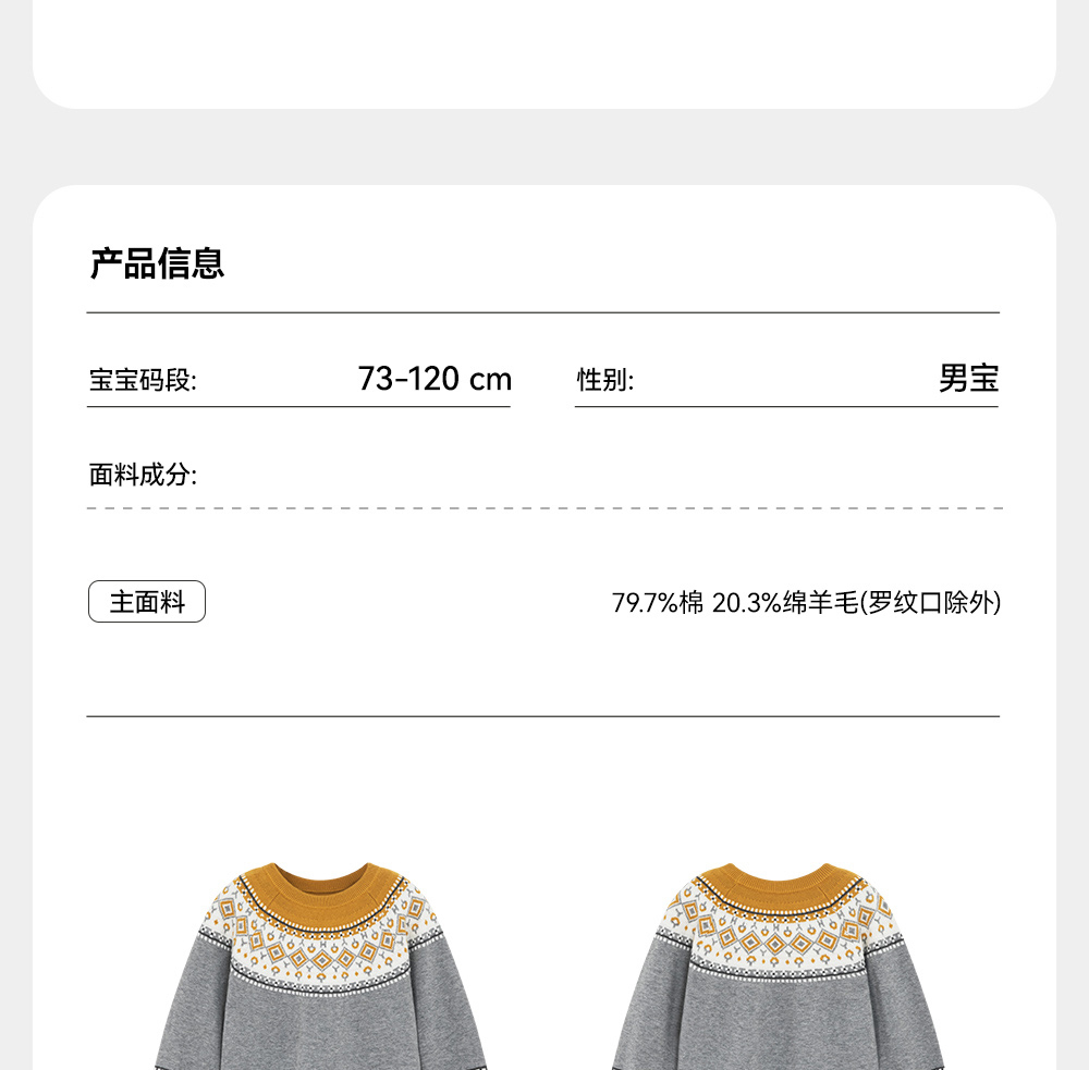 【商场同款】英氏儿童毛衣针织衫长袖秋冬男童休闲羊毛衫新款