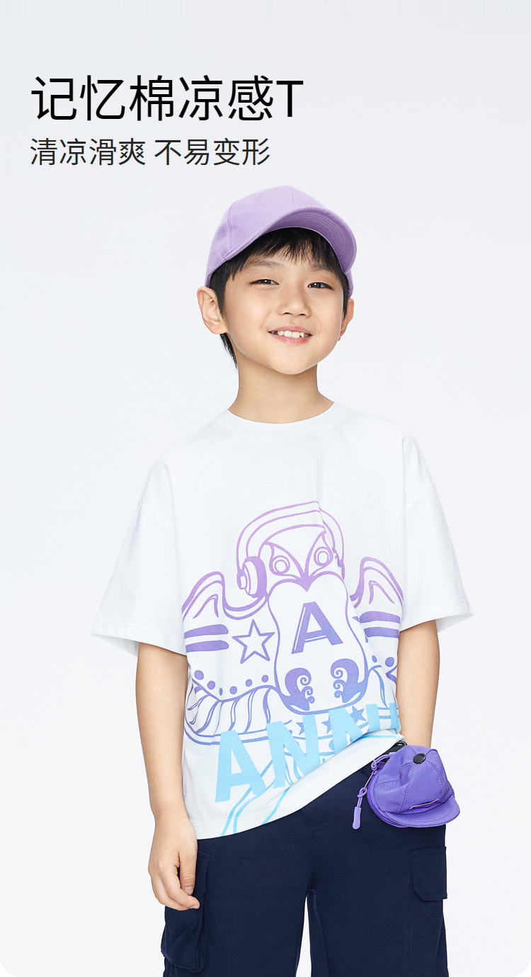 男童凉感短袖T恤圆领夏季新款安奈儿童装实体店同款AB421745