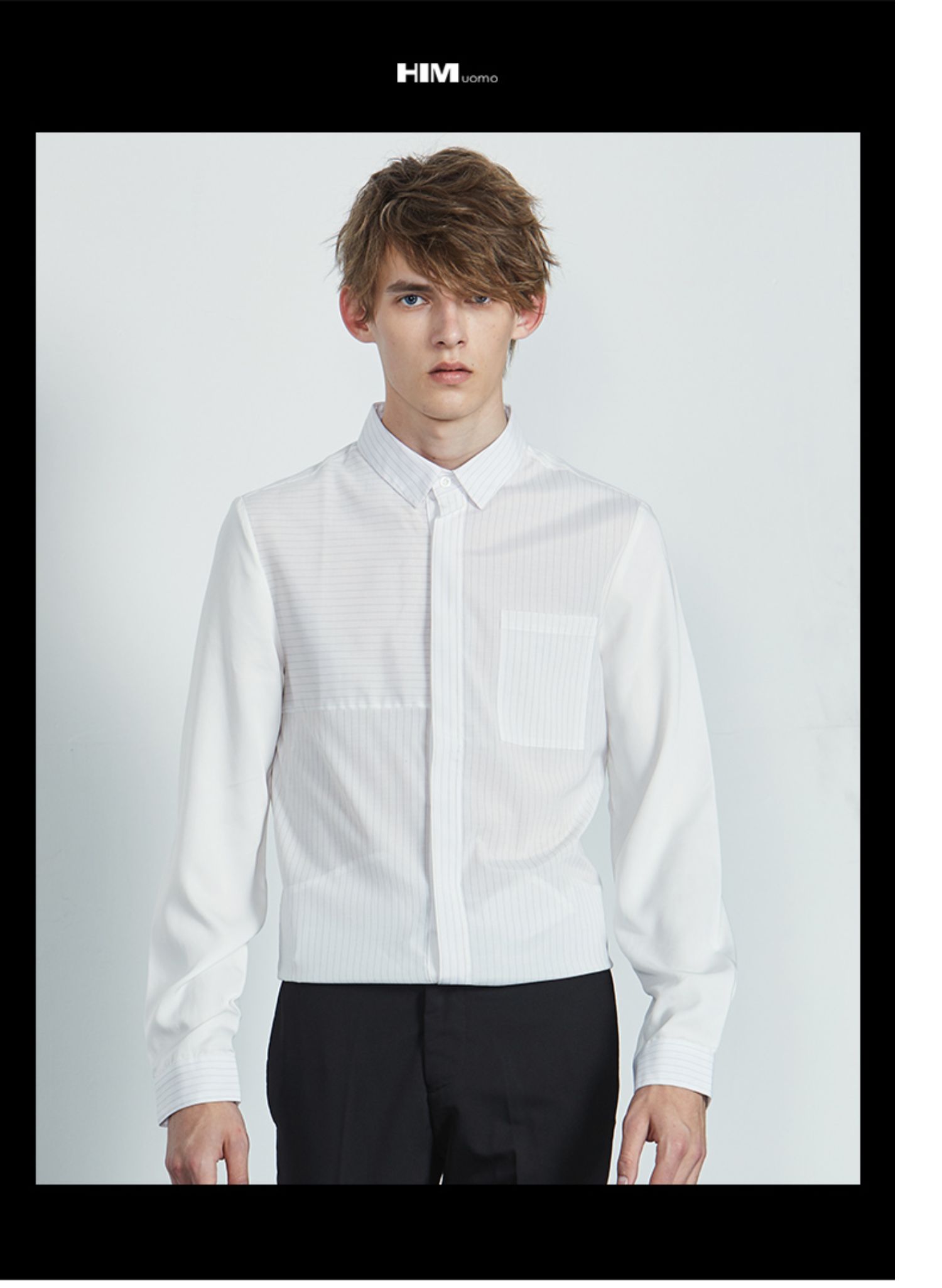 HIM汉崇男装2019春季新品条纹长袖衬衫男士商务休闲百搭时尚衬衣