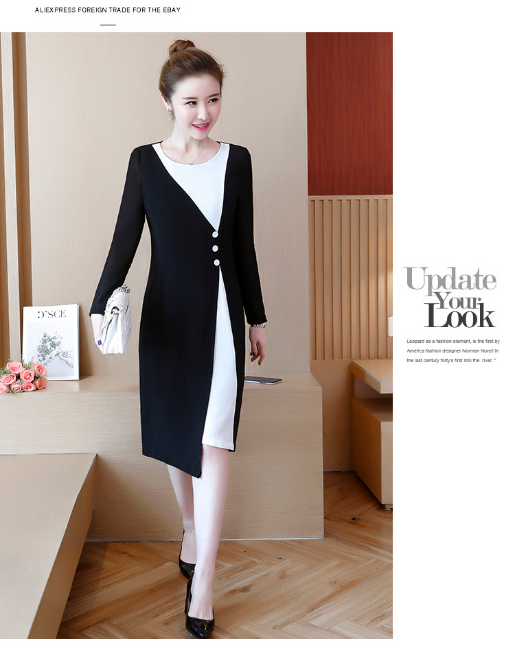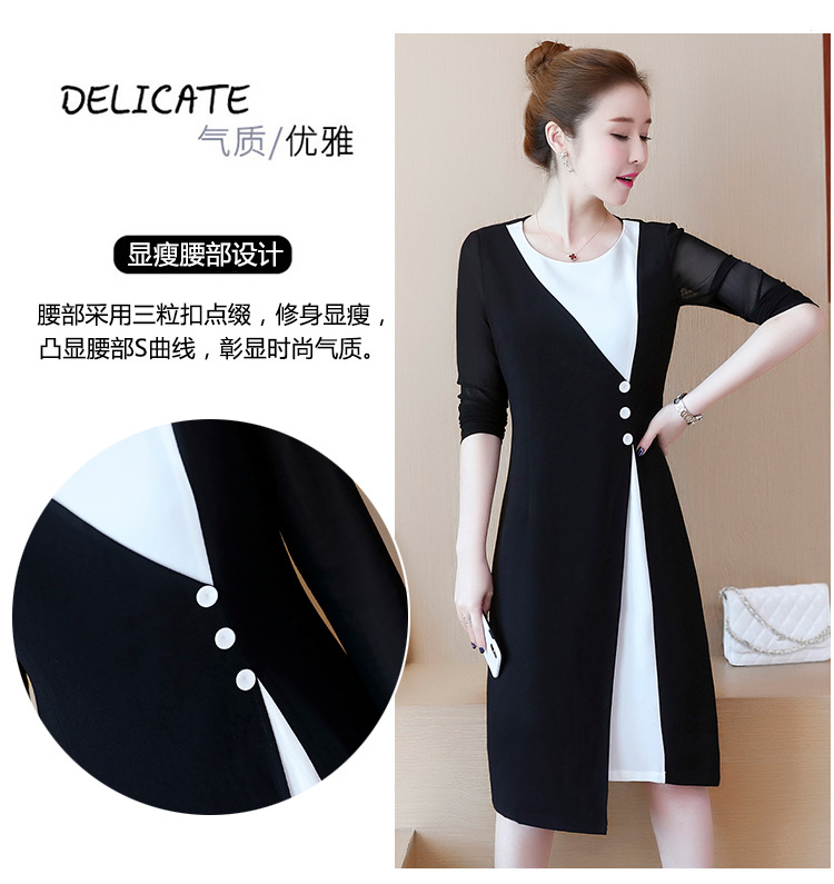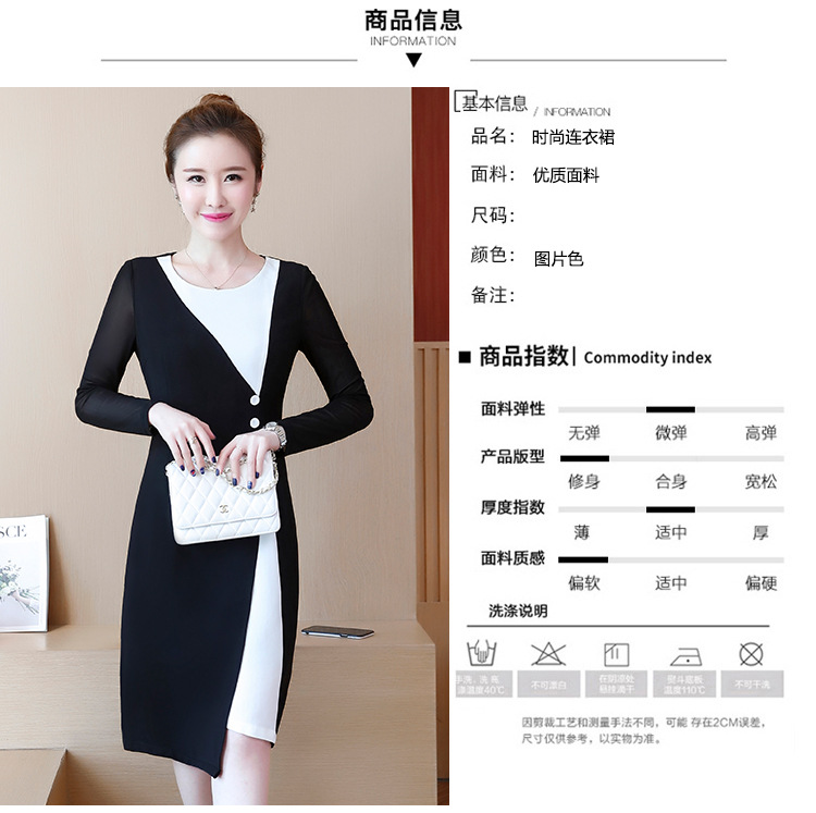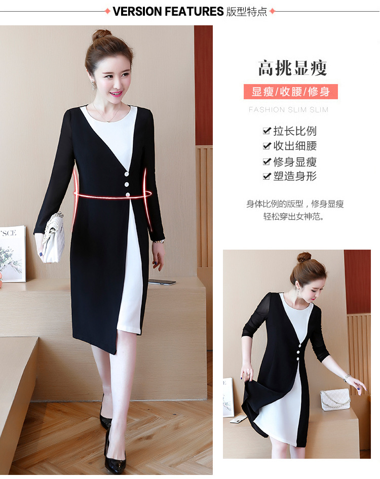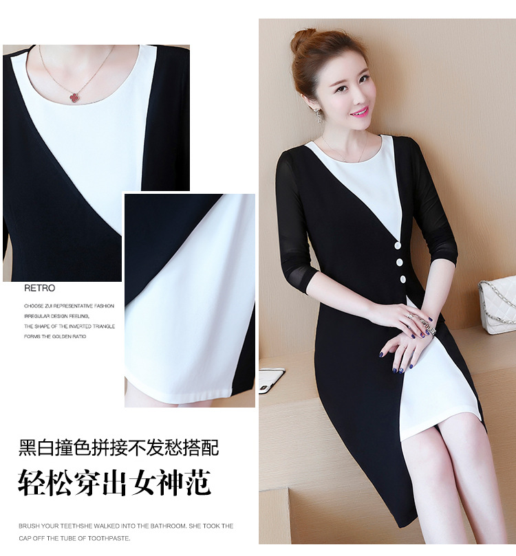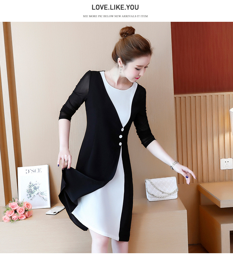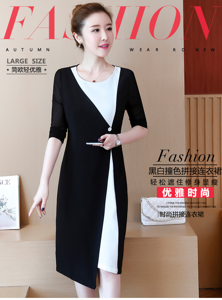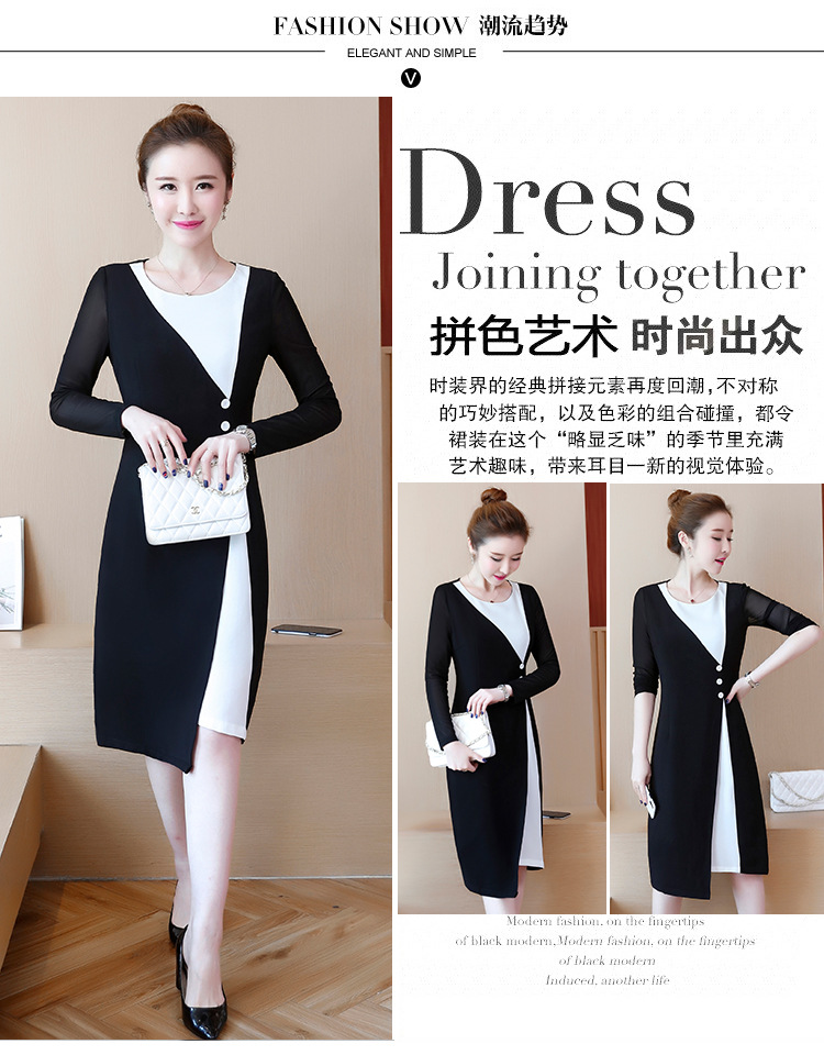 AHM-mf2161新款时尚流行大码黑白撞色拼接长袖连衣裙TZW