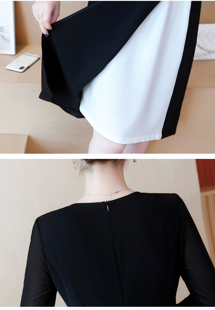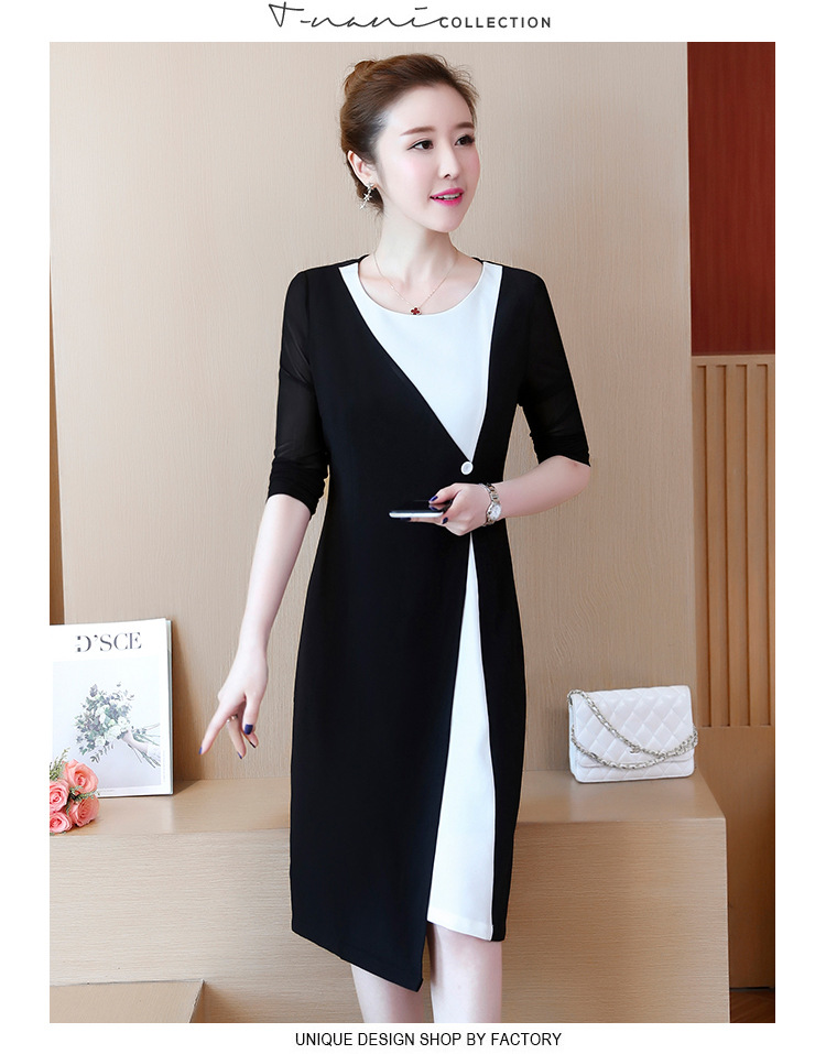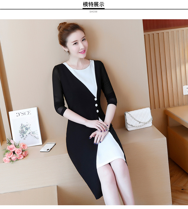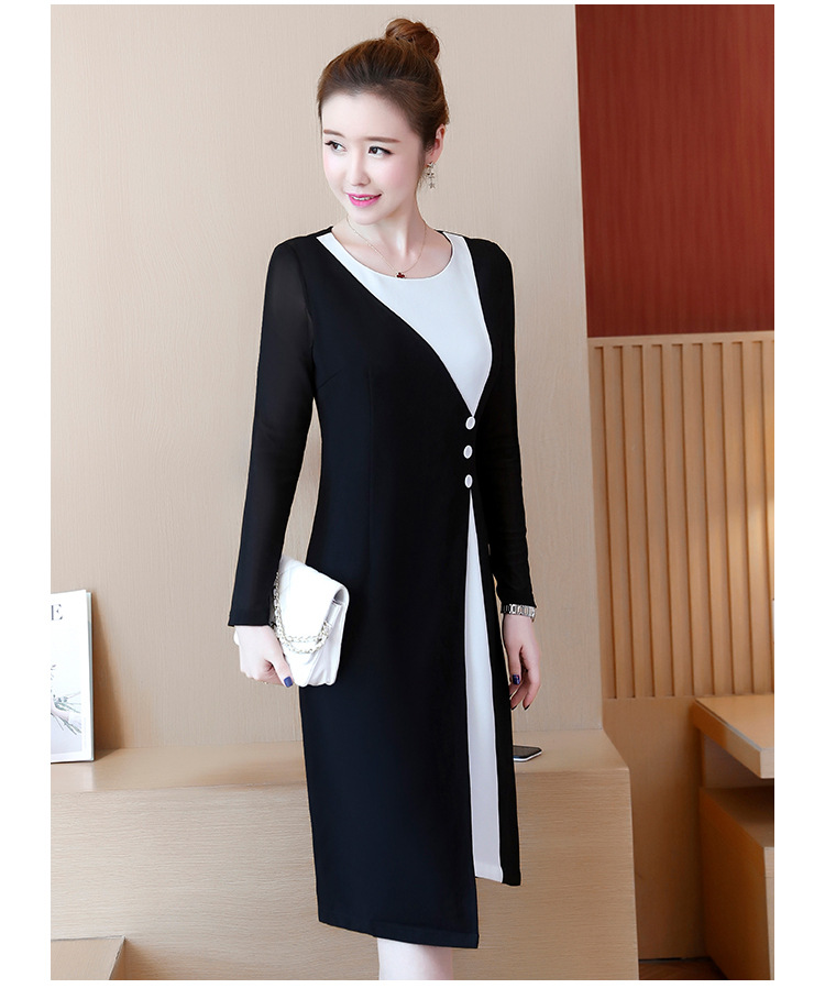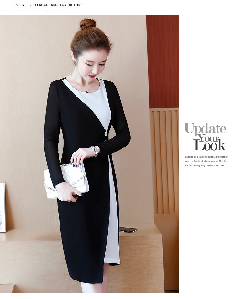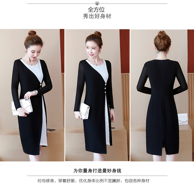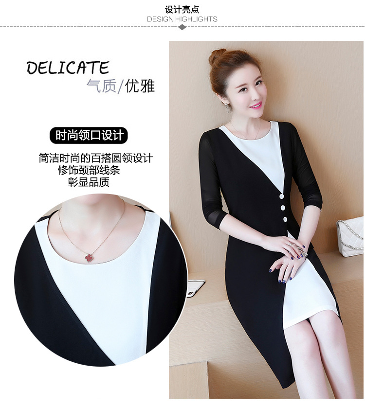AHM-mf2161新款时尚流行大码黑白撞色拼接长袖连衣裙TZW
