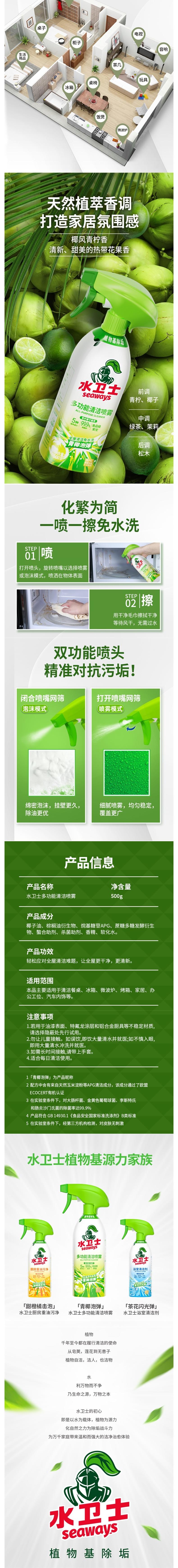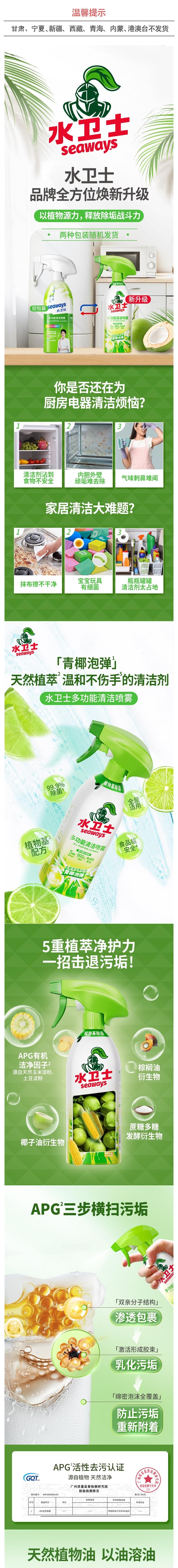 水卫士 多功能清洁喷雾-带喷头500g/瓶 SWS003
