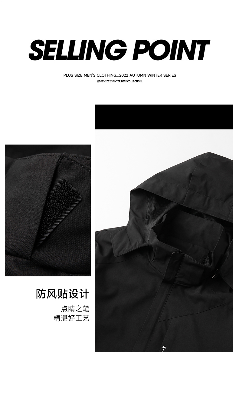 一口价【新款DK】大依优型大码男装休闲可拆卸帽夹克加肥加大胖子肥佬大号运动冲锋衣外套上衣男