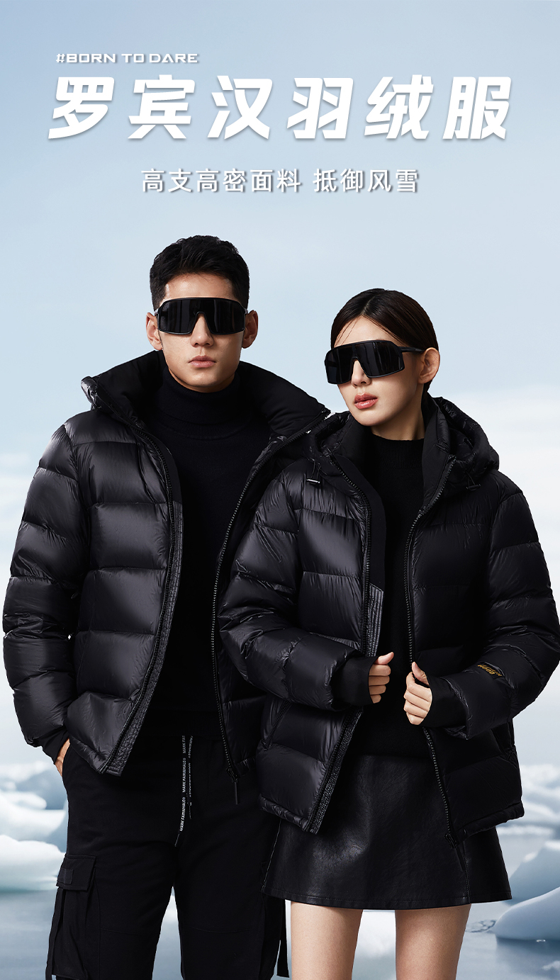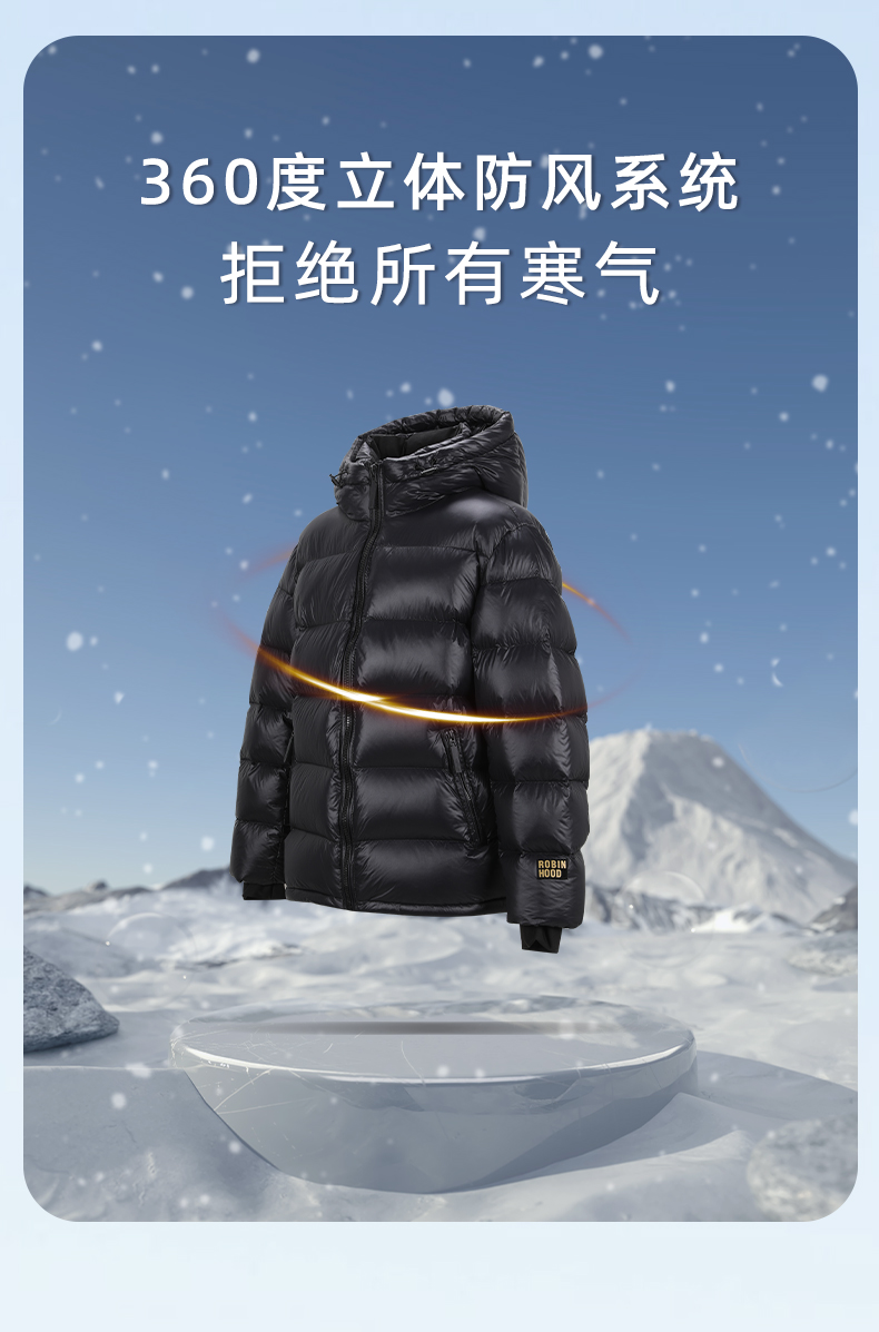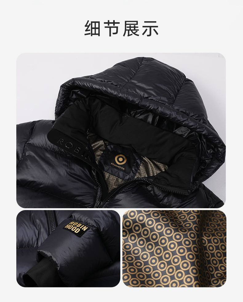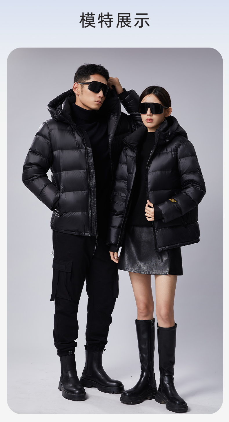 【高密抗风 大朵鹅绒 石墨烯内里】罗宾汉黑色金标男女短款鹅绒羽绒服(R038Y51023)