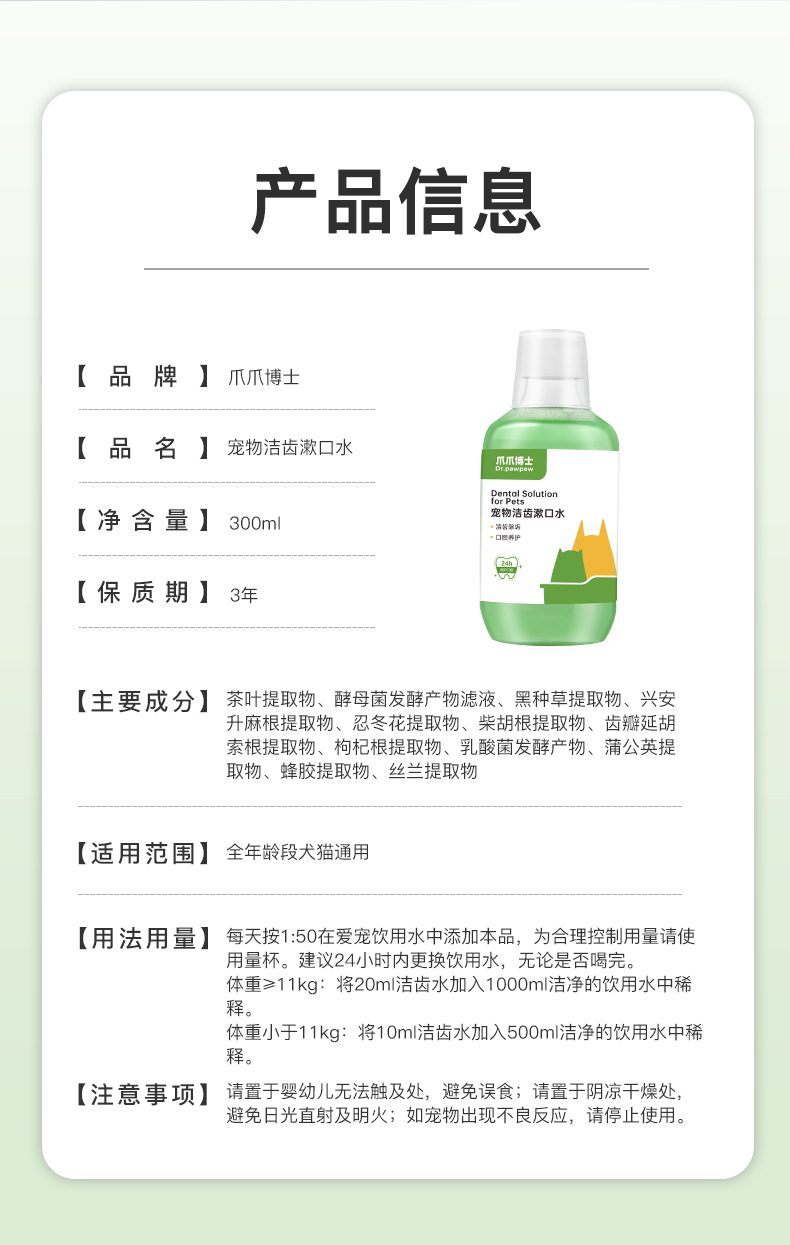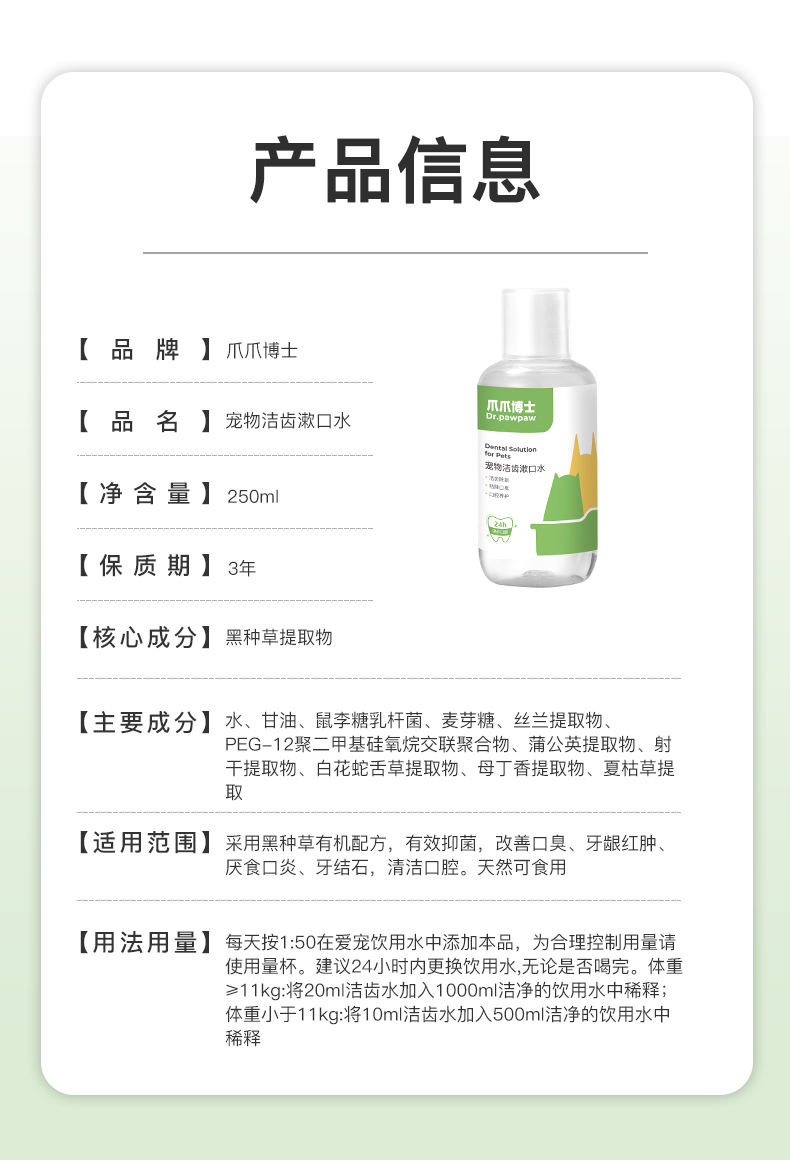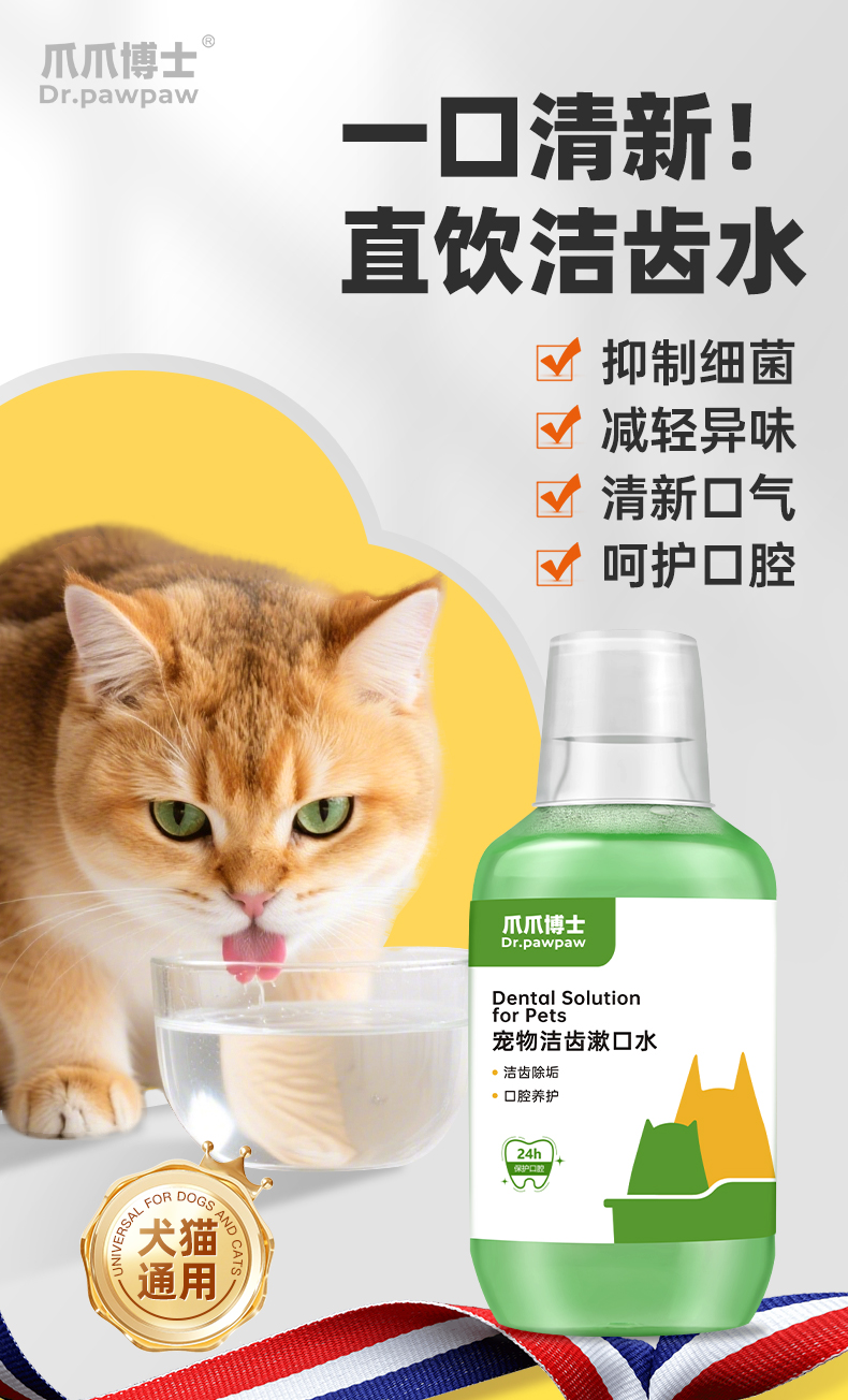 【犬猫通用X洁齿水250ml】爪爪博士猫咪洁齿水狗漱口水可食饮用口腔清洁除口臭克星预防牙结石