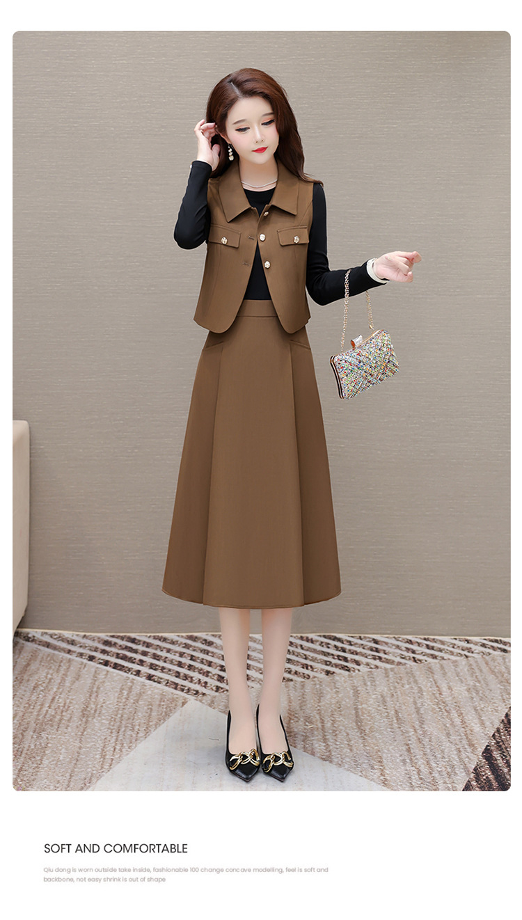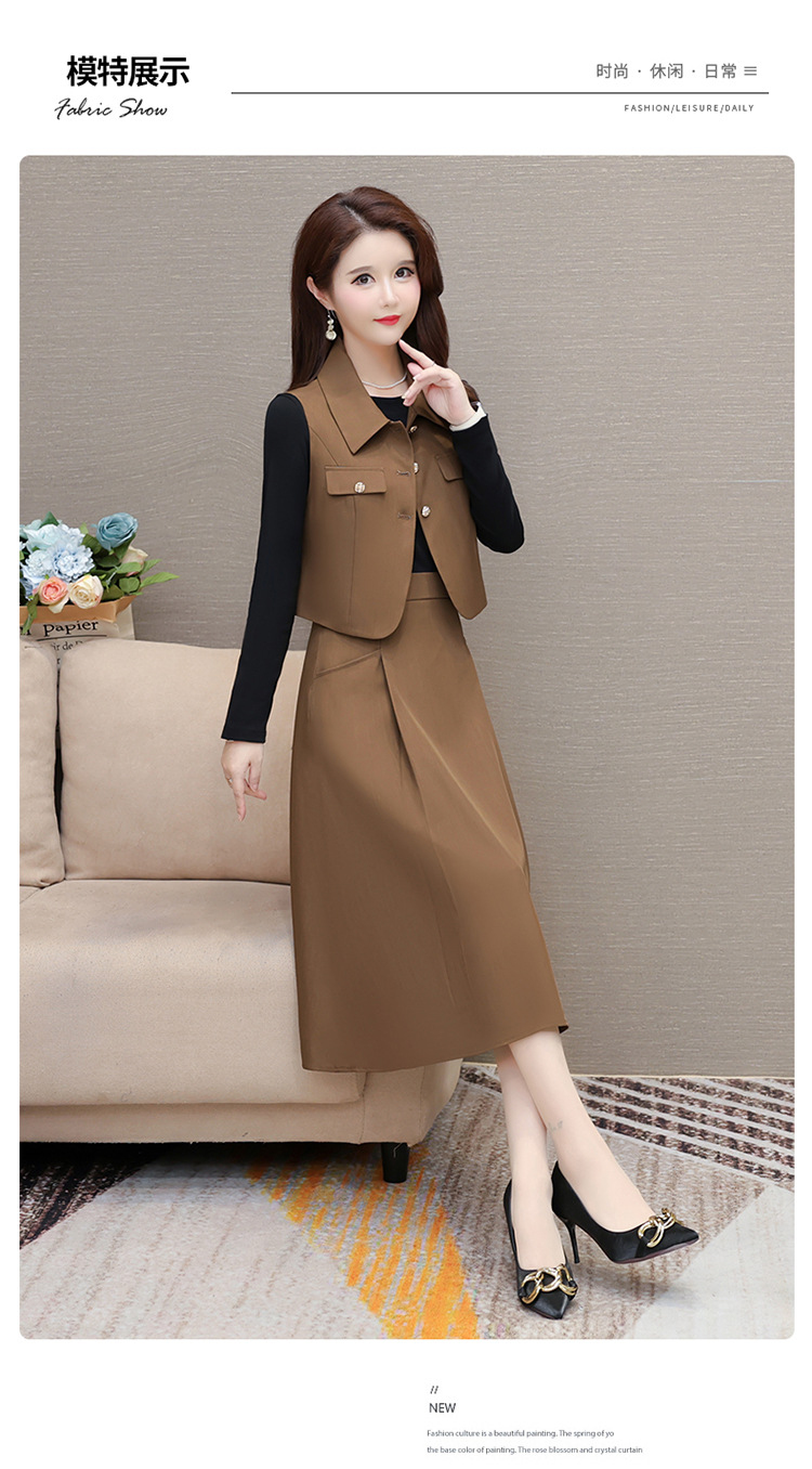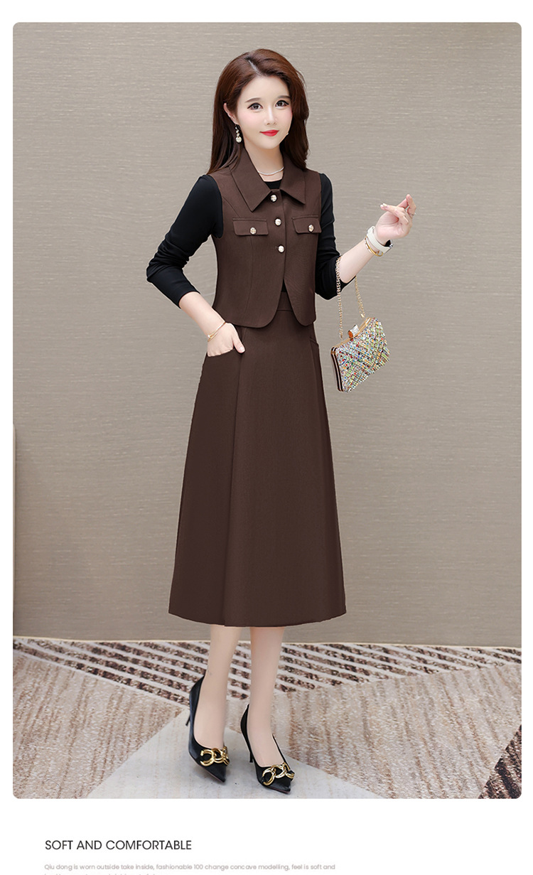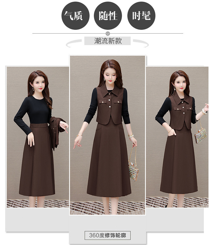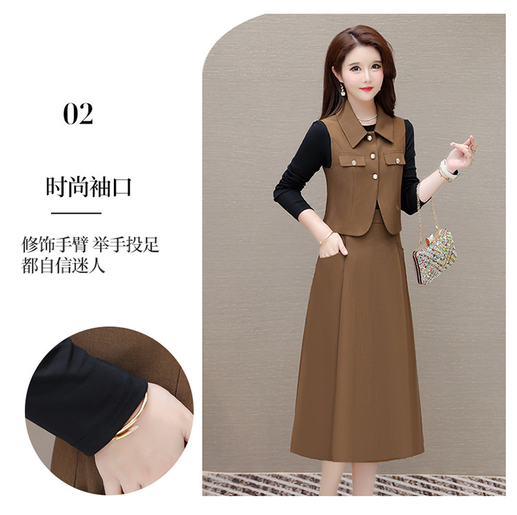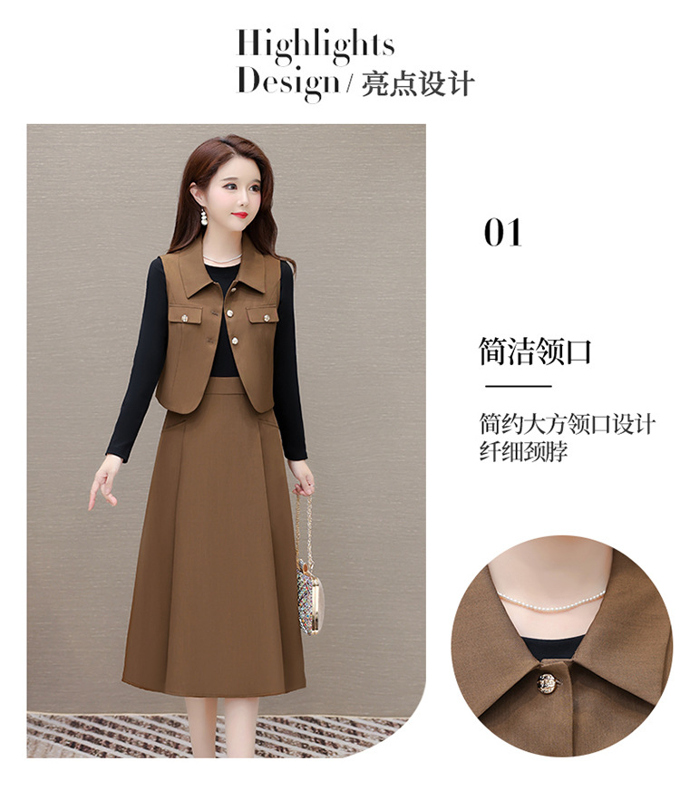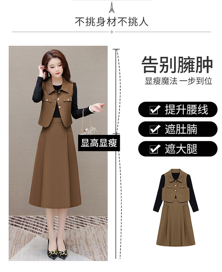 QYM 19C2489-L通勤连衣裙POLO领洋气短款马甲两件套裙 商品图2
