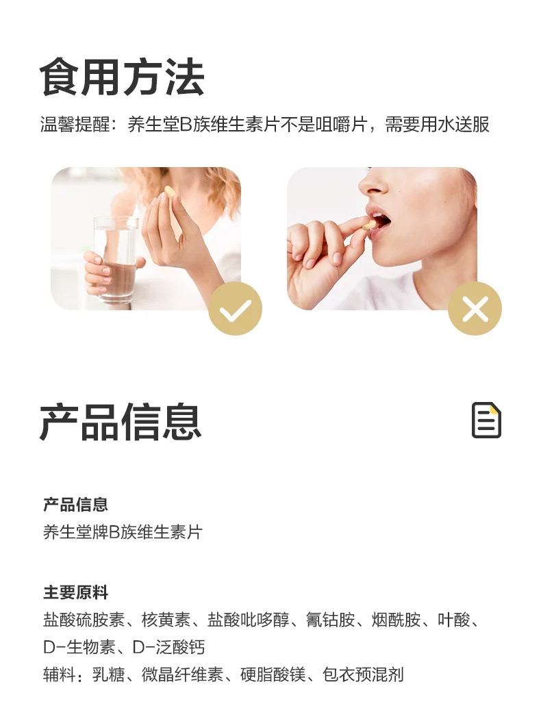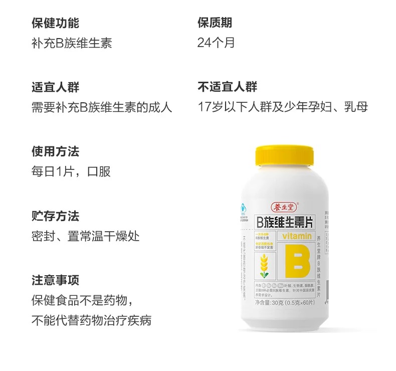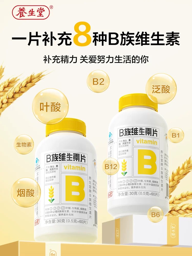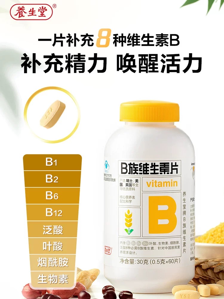 【叼健康】养生堂B族维生素片家庭分享装/1盒(0.5g*120片*1瓶+0.5g*60片*1瓶)生产日期:25年5月