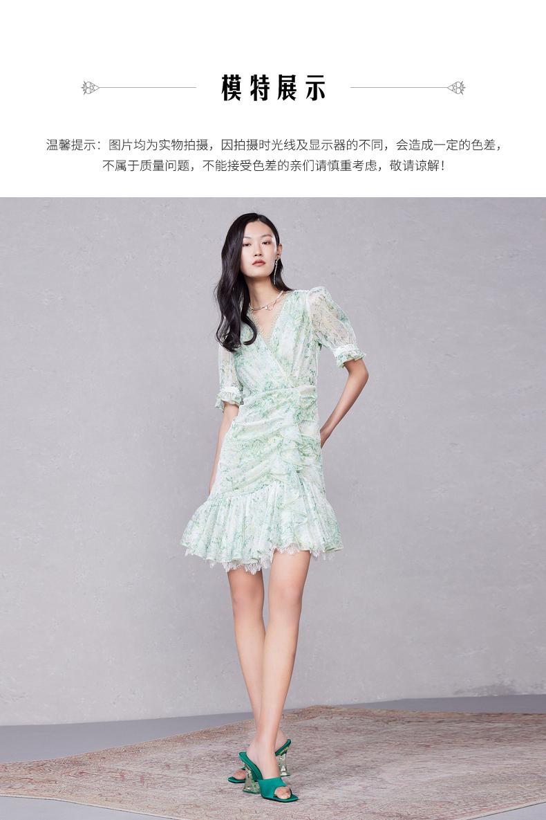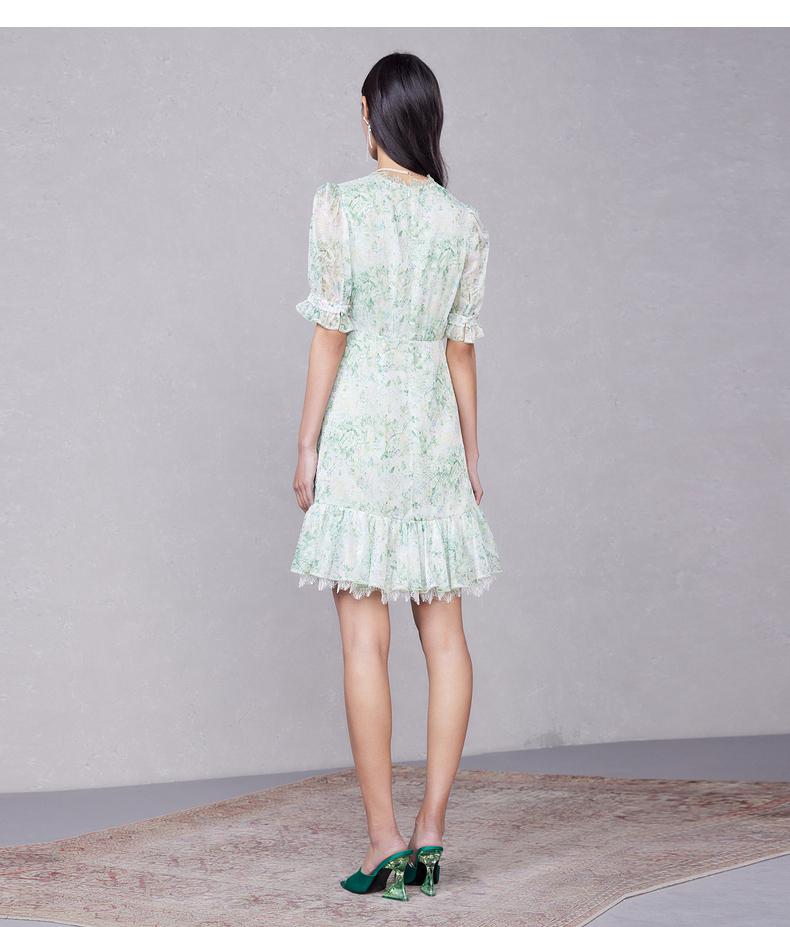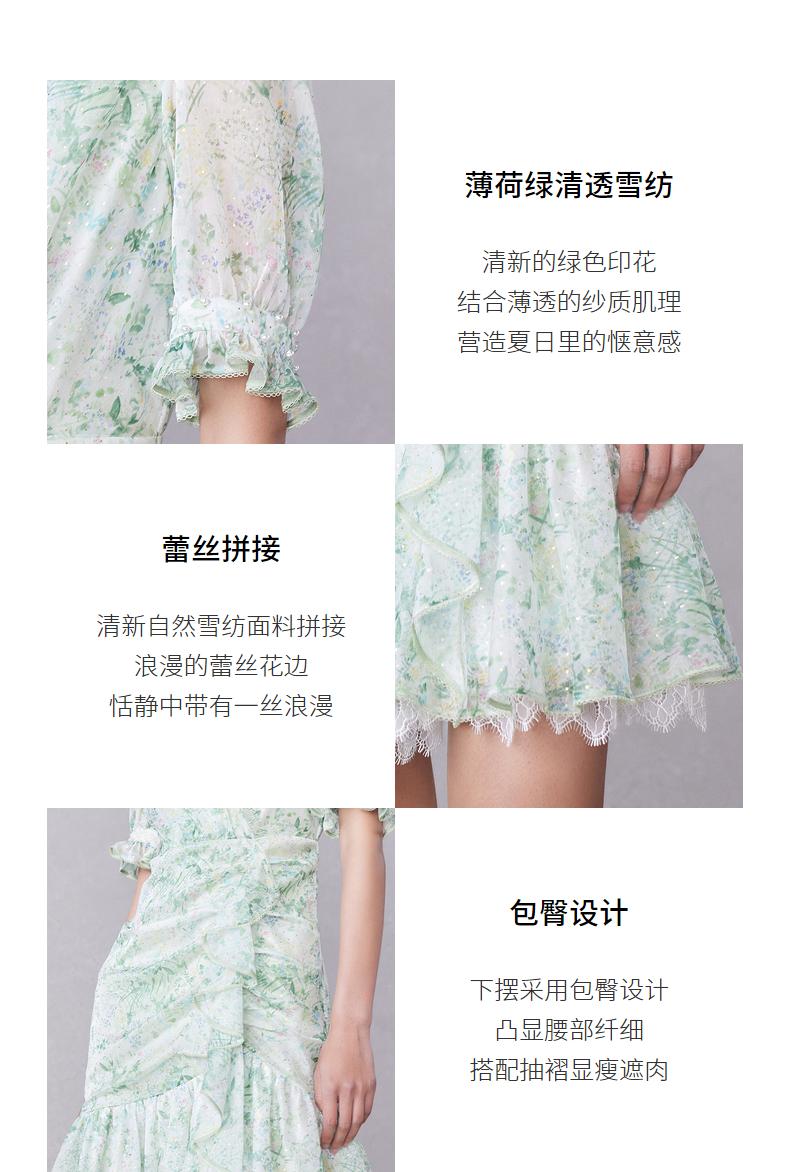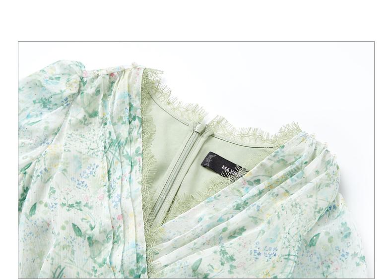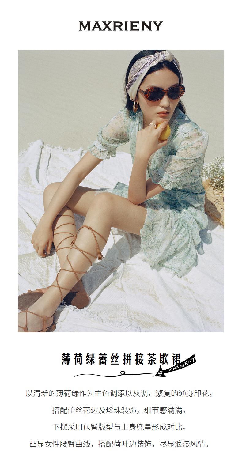 MAXRIENY蕾丝气质性感夏季复古春夏法式印花连衣裙设计师薄荷曼波(货号:MC87DR319)