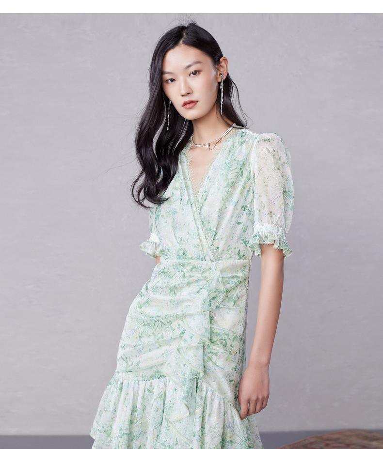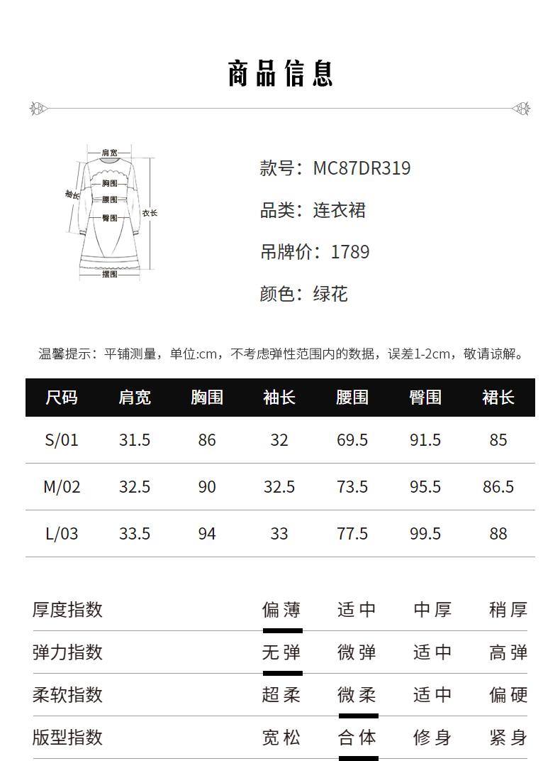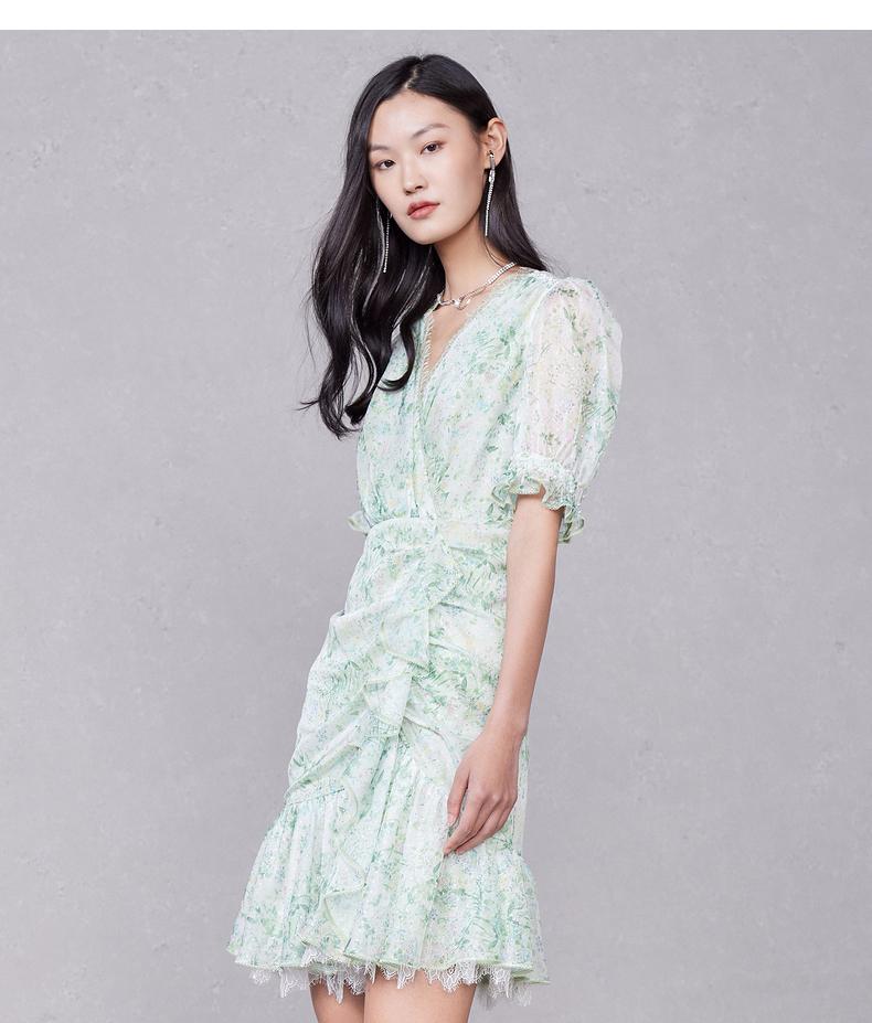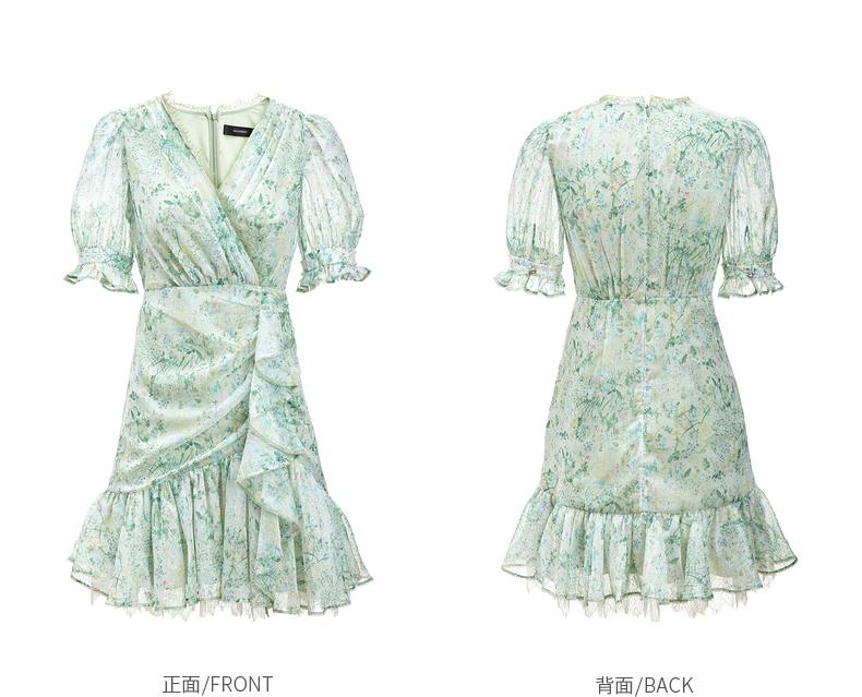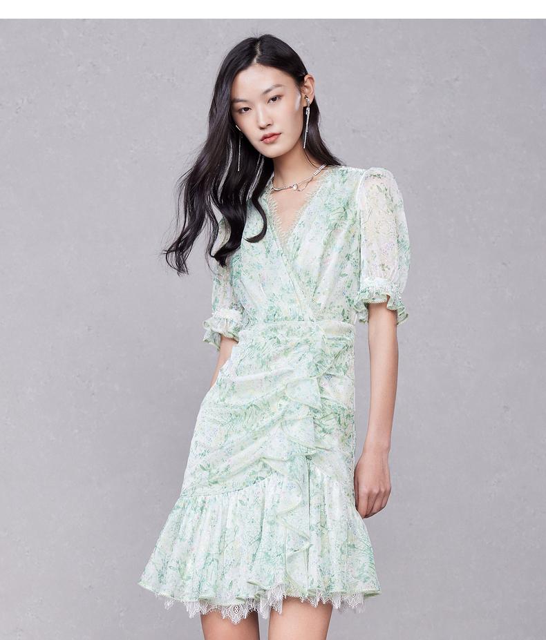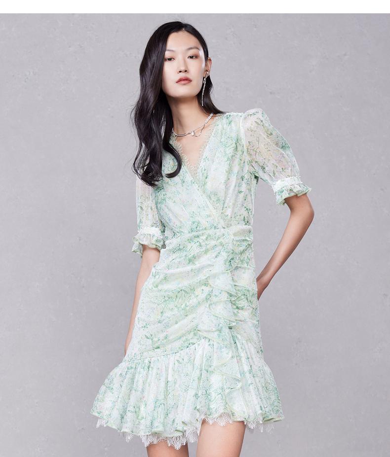 MAXRIENY蕾丝气质性感夏季复古春夏法式印花连衣裙设计师薄荷曼波(货号:MC87DR319)