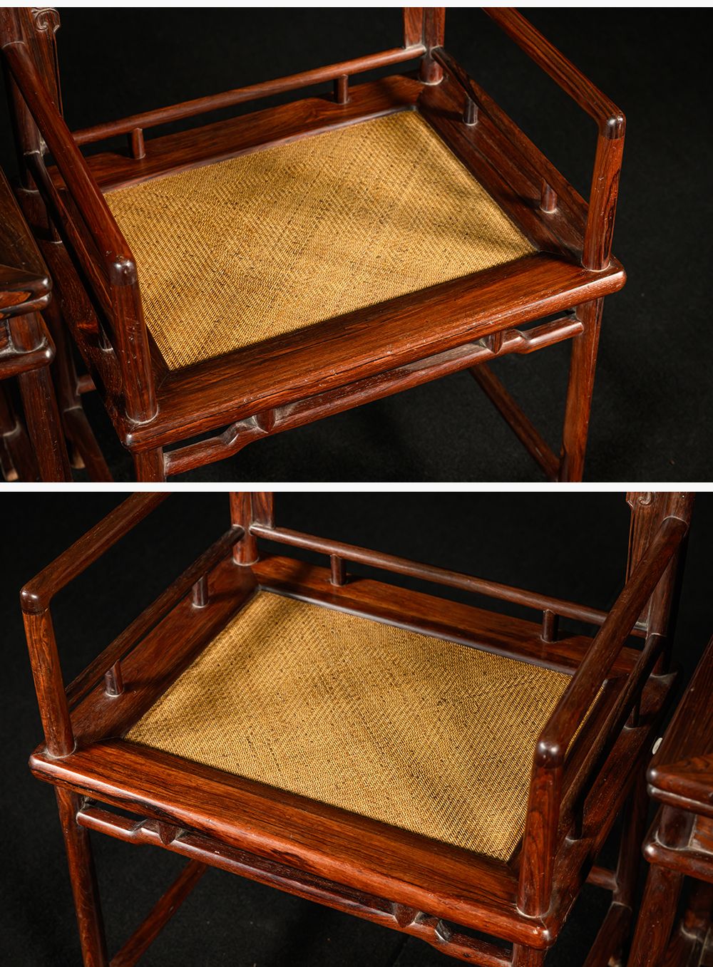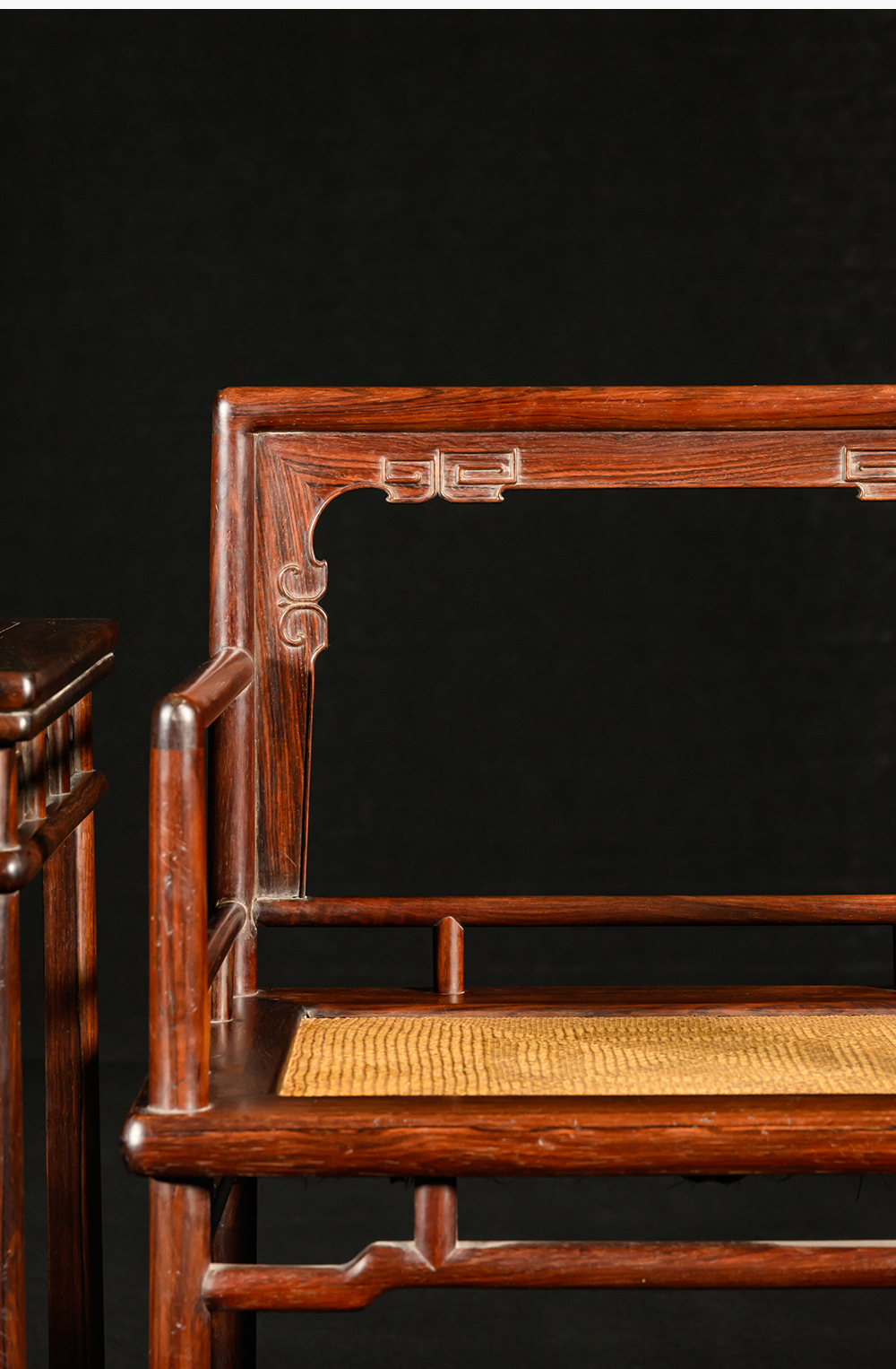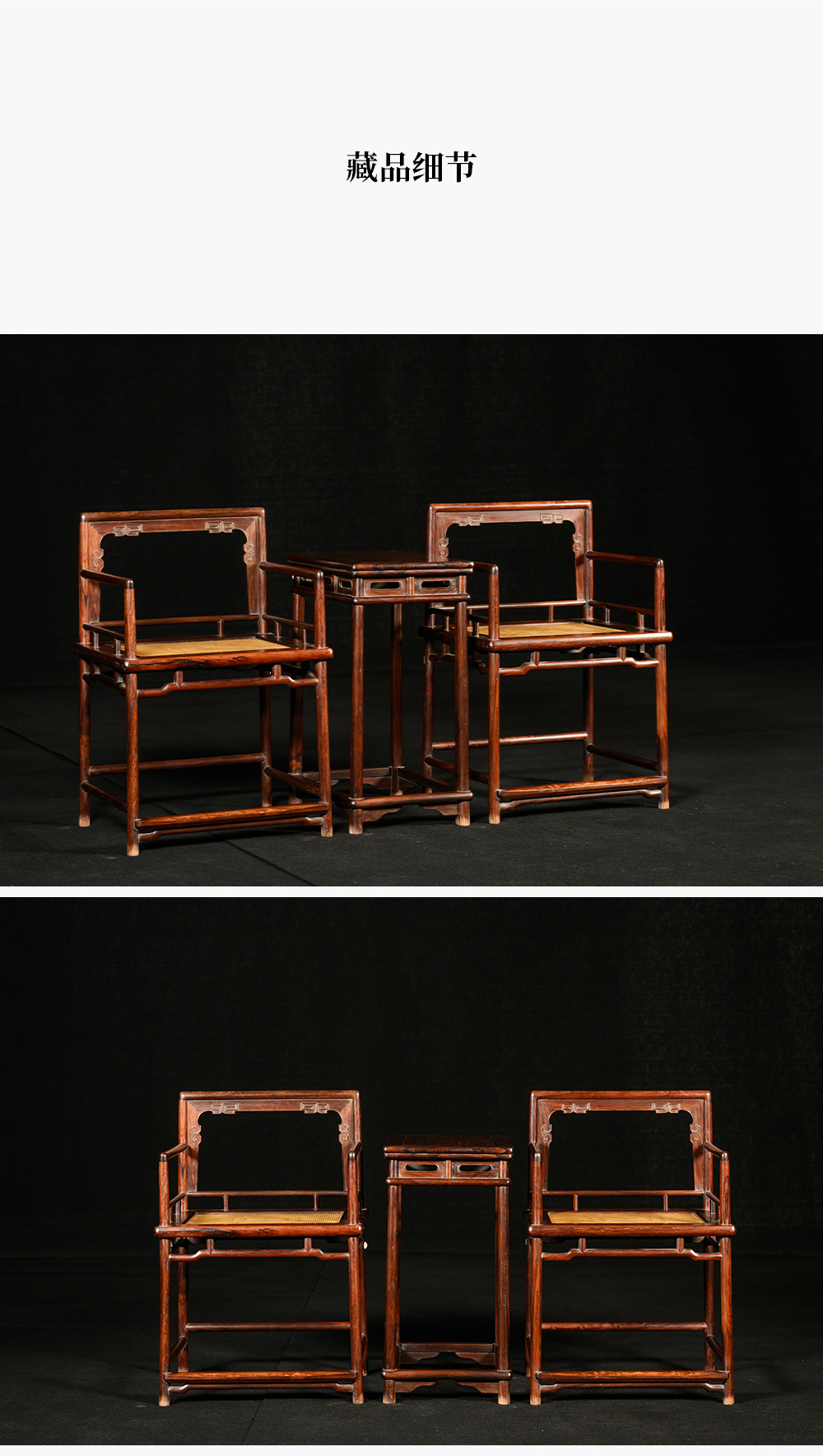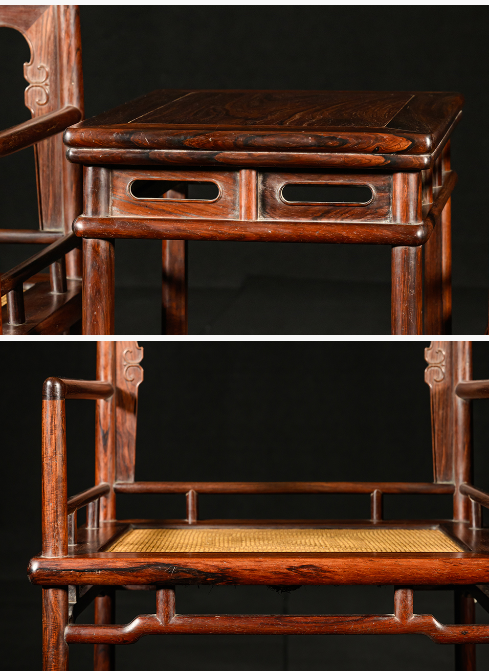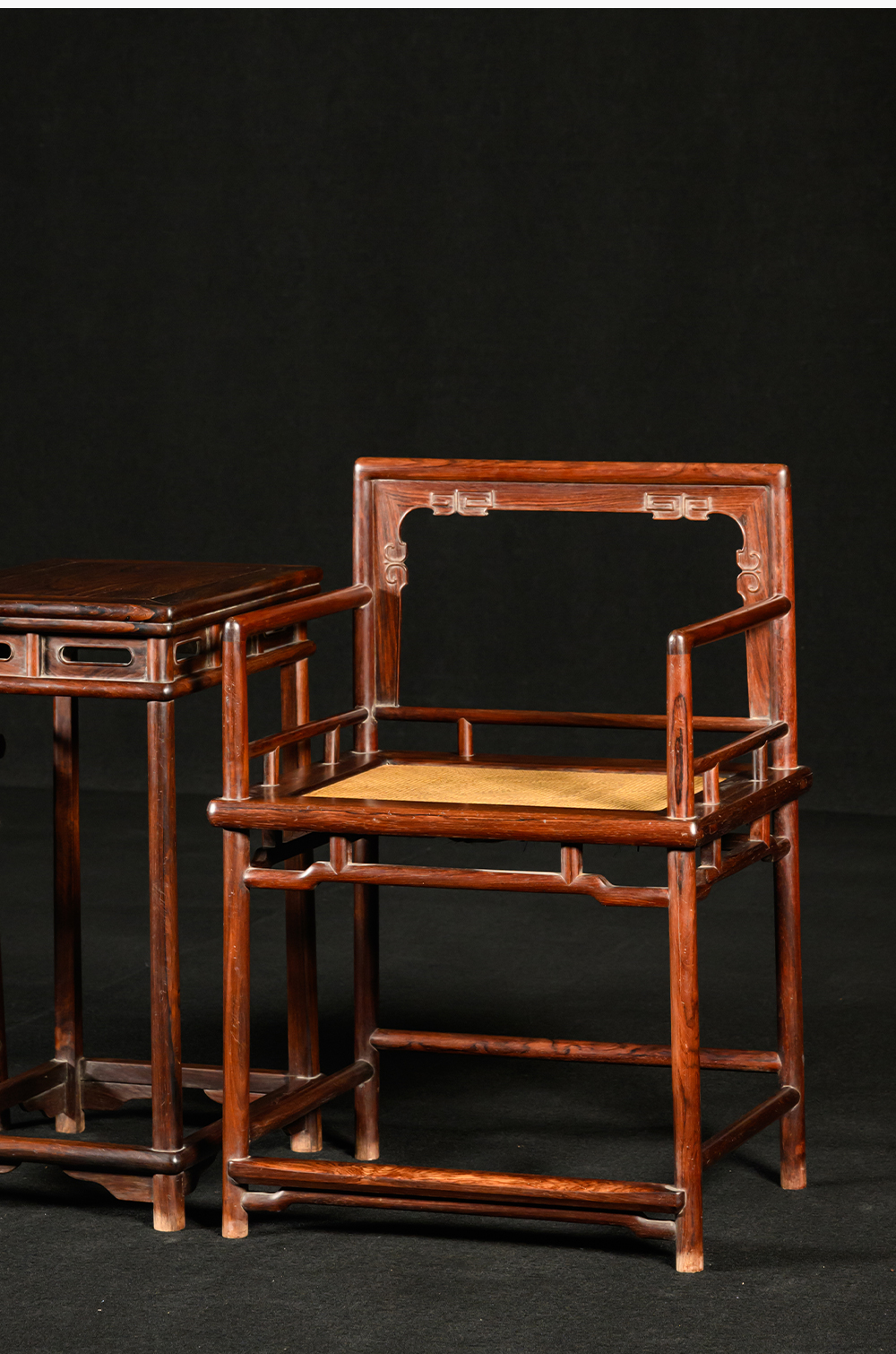 清 红木券口靠背玫瑰椅成套(两椅一几)