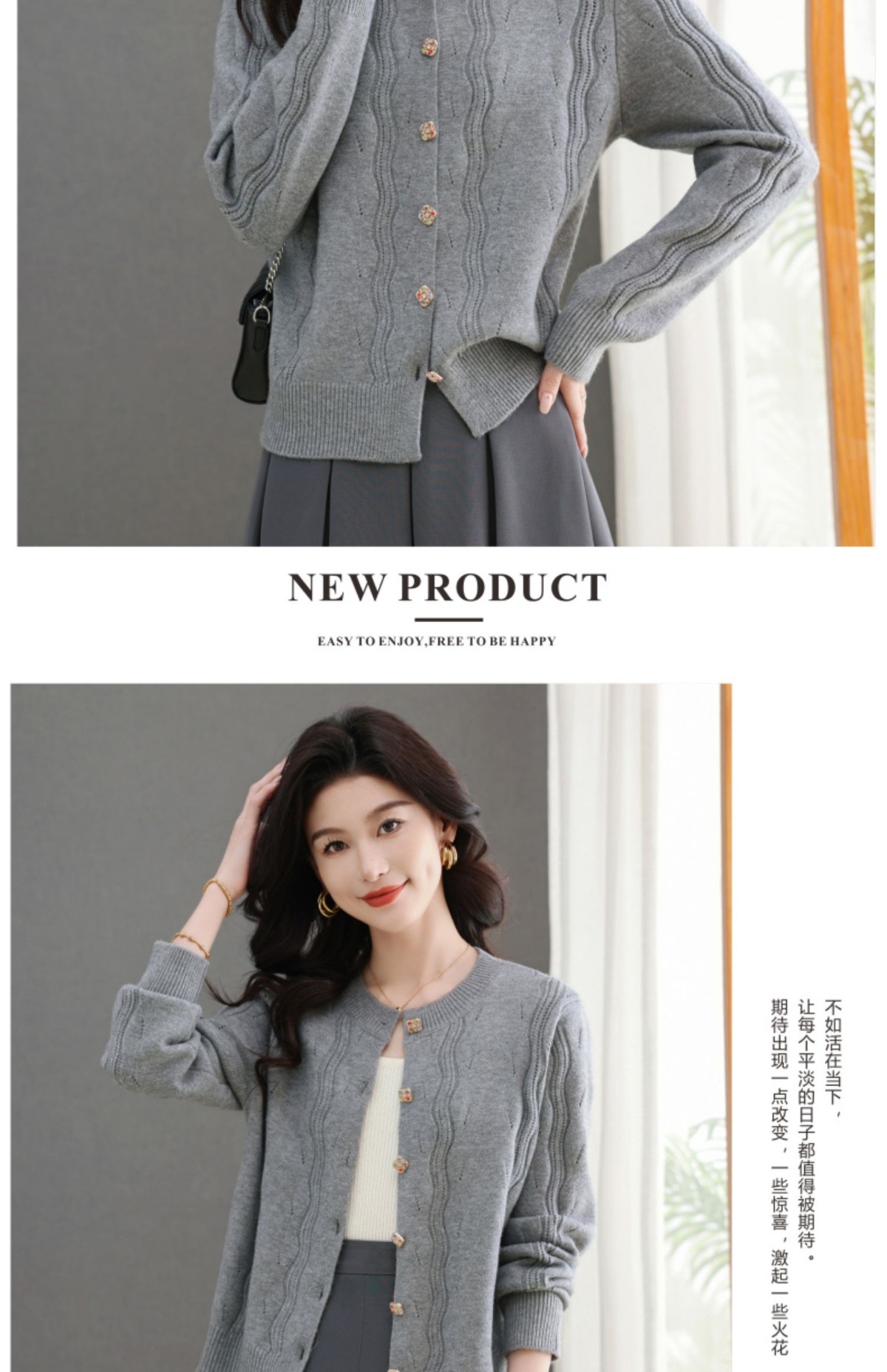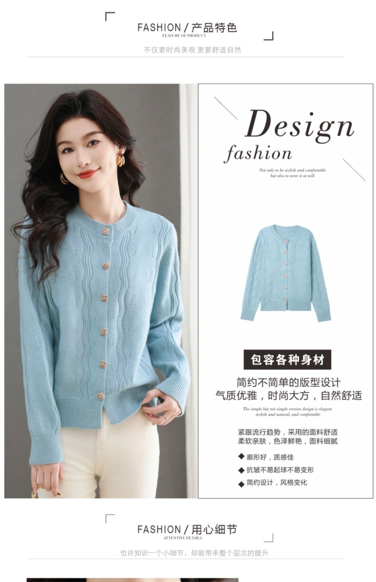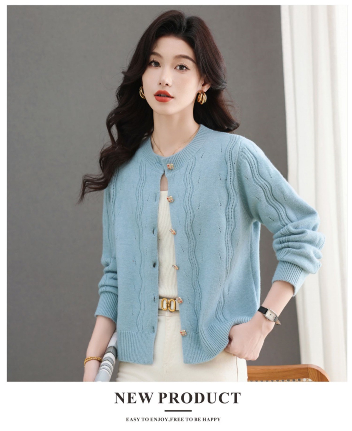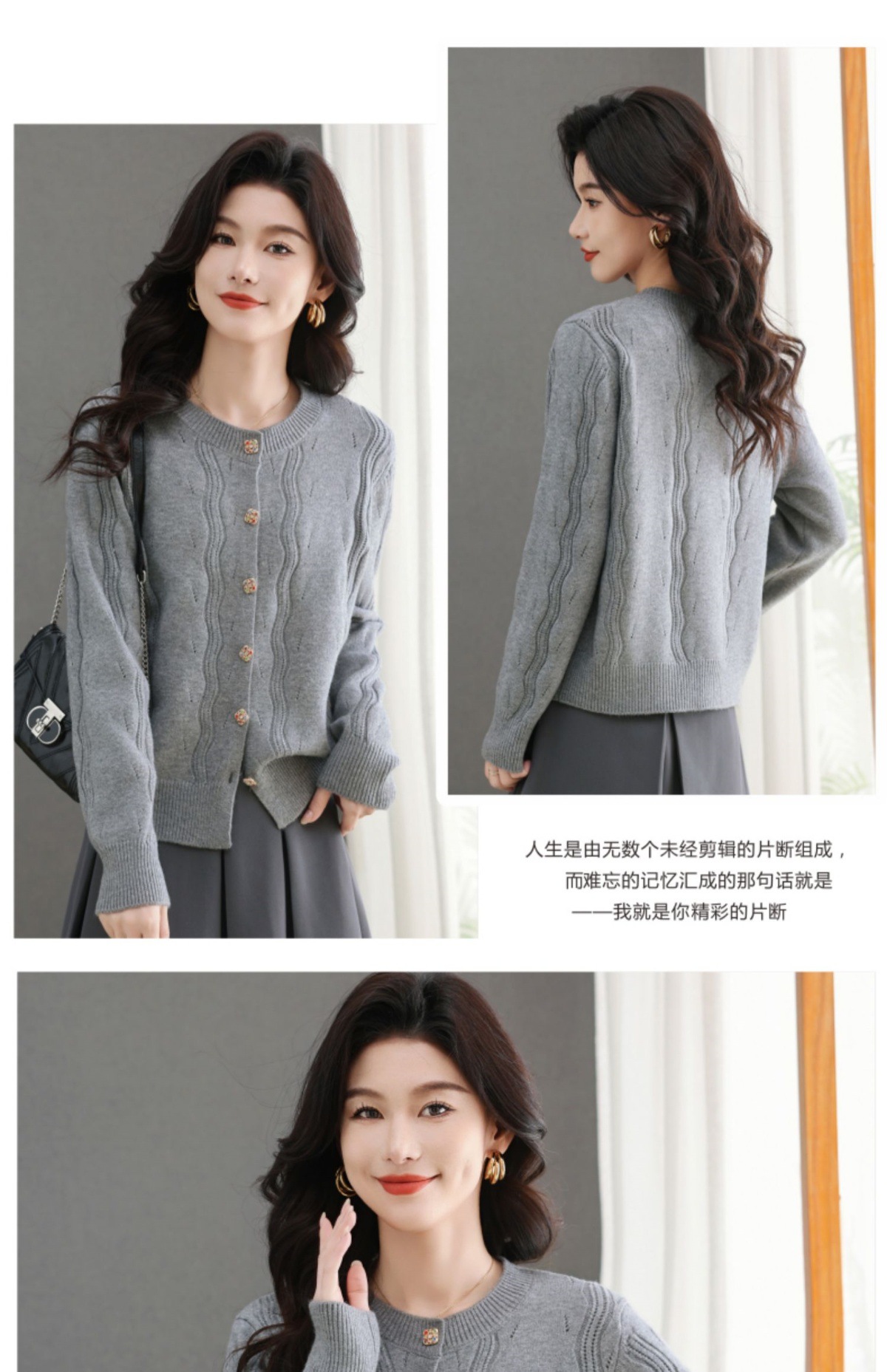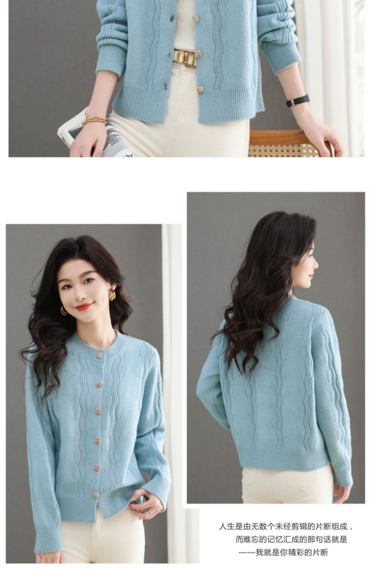 CC-5-6308春秋季新款时髦洋气百搭气质圆领长袖针织开衫女士上衣