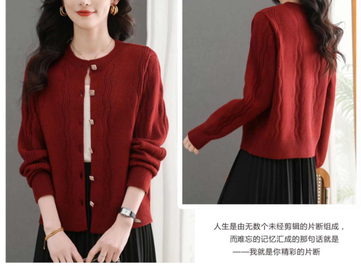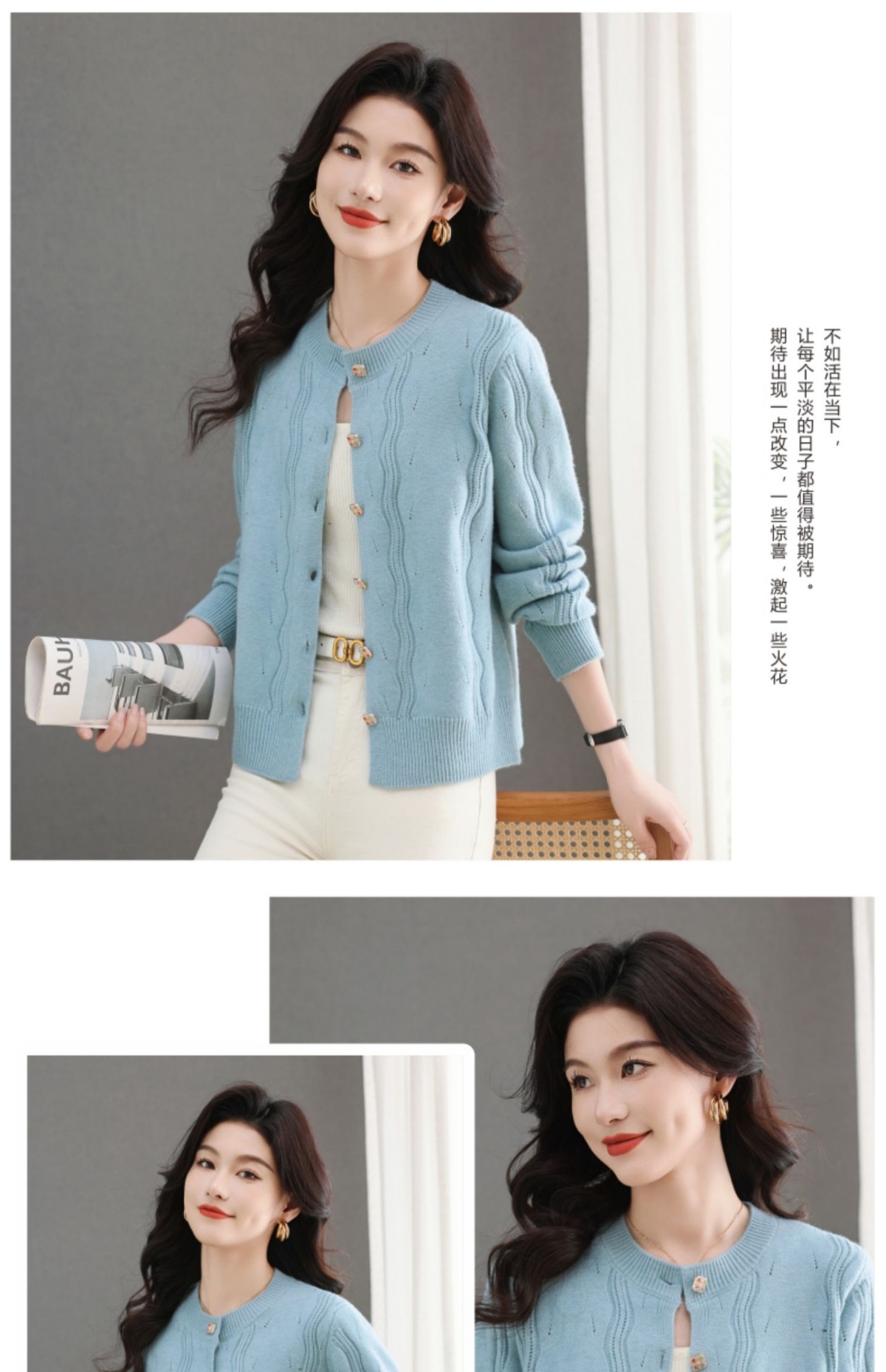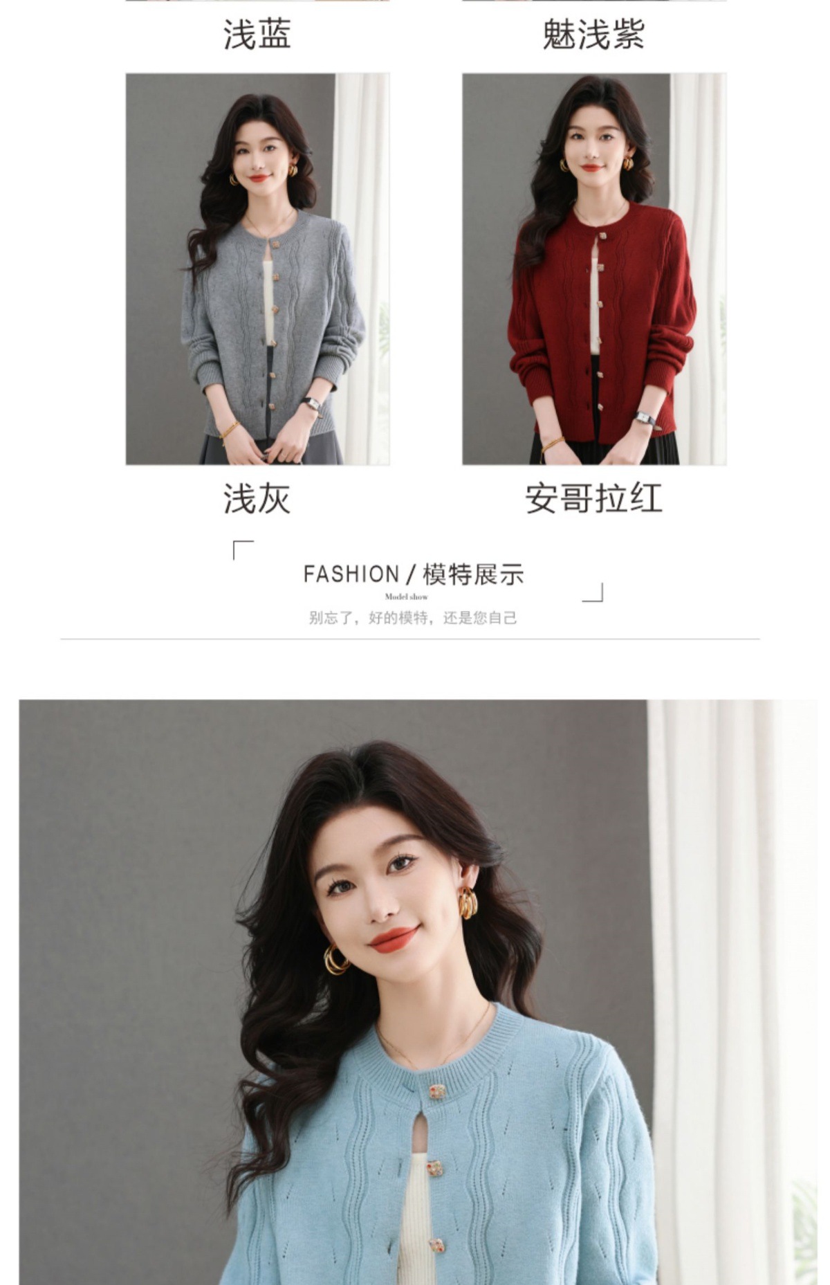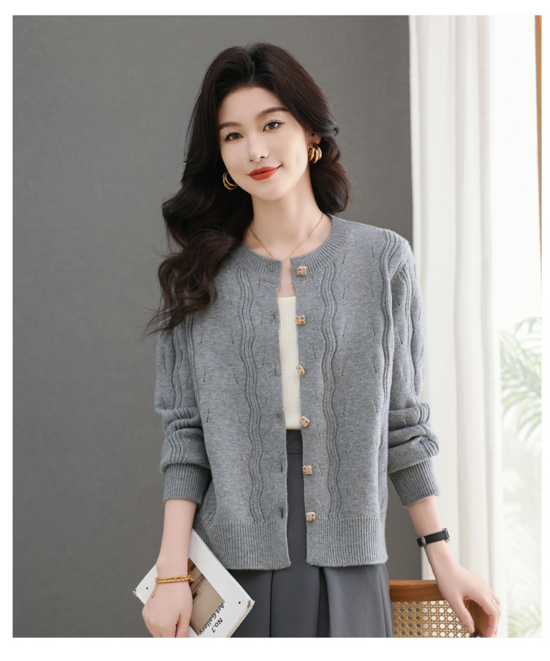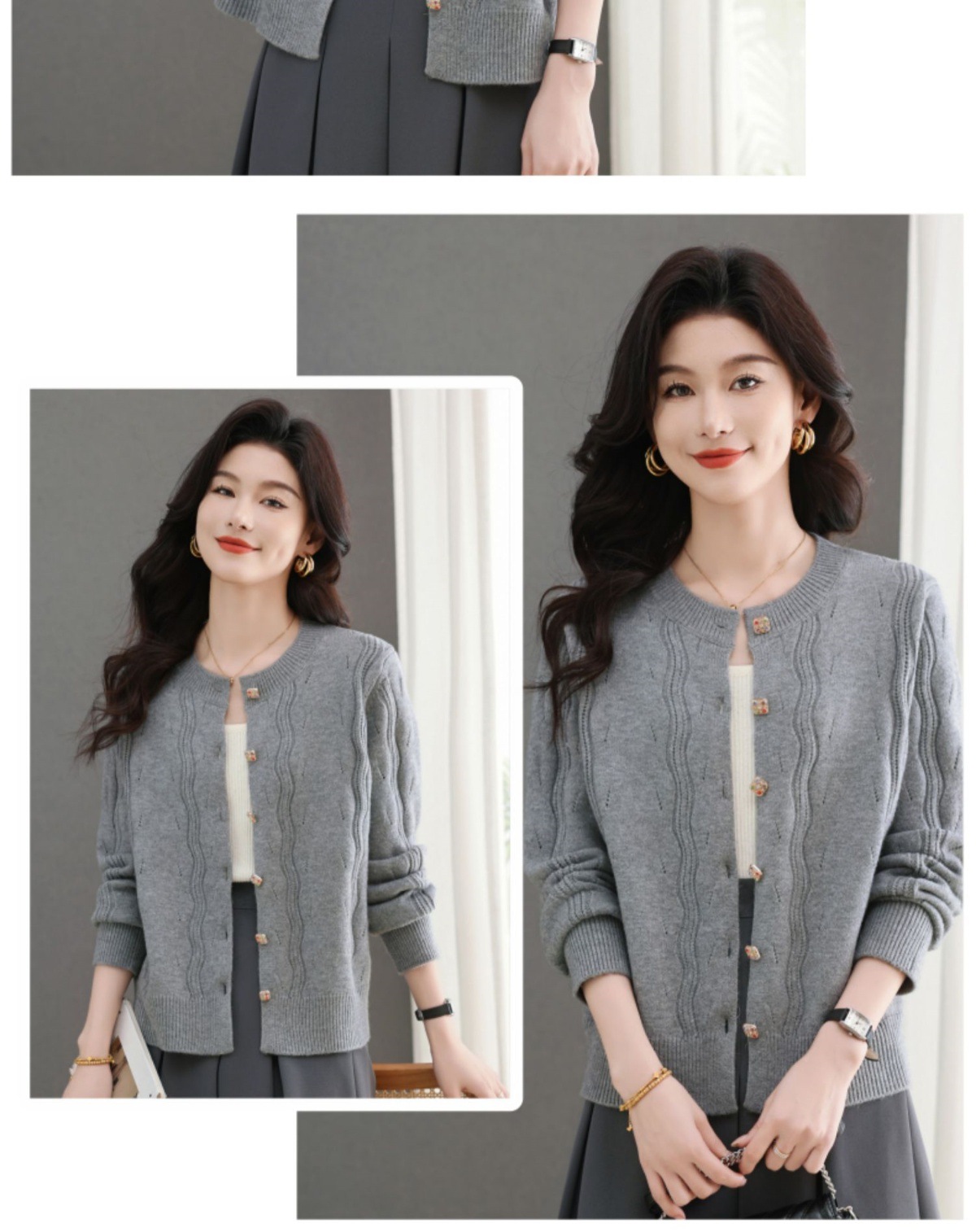 CC-5-6308春秋季新款时髦洋气百搭气质圆领长袖针织开衫女士上衣