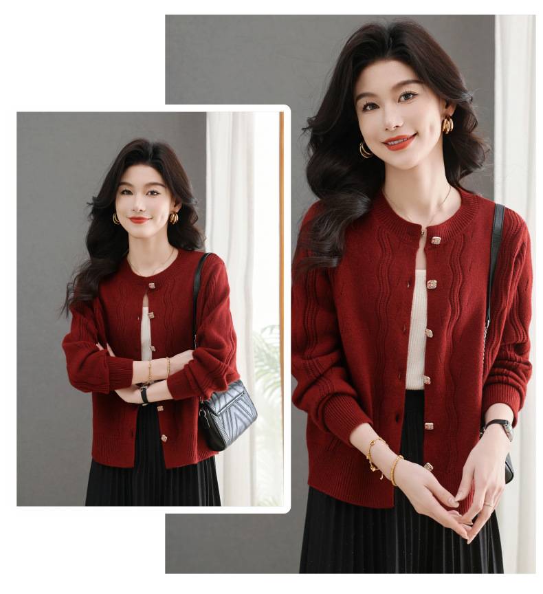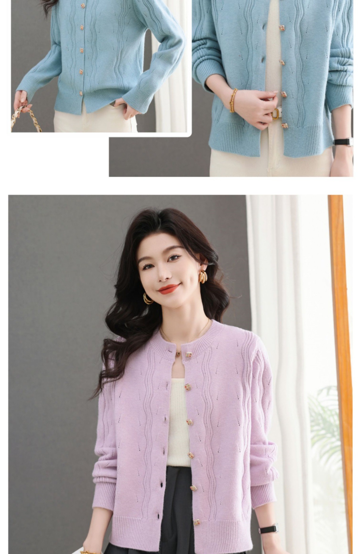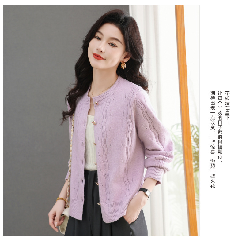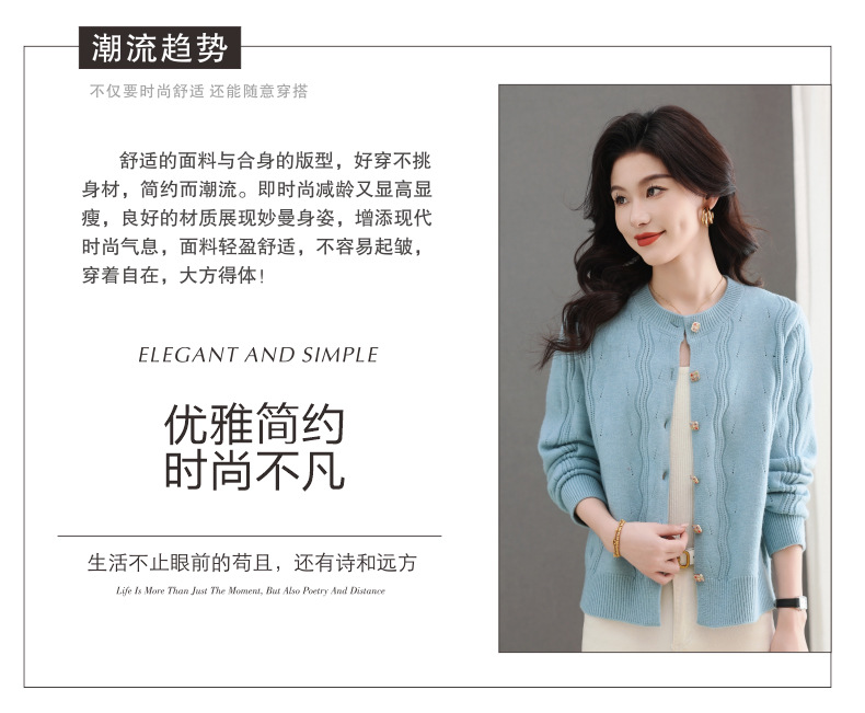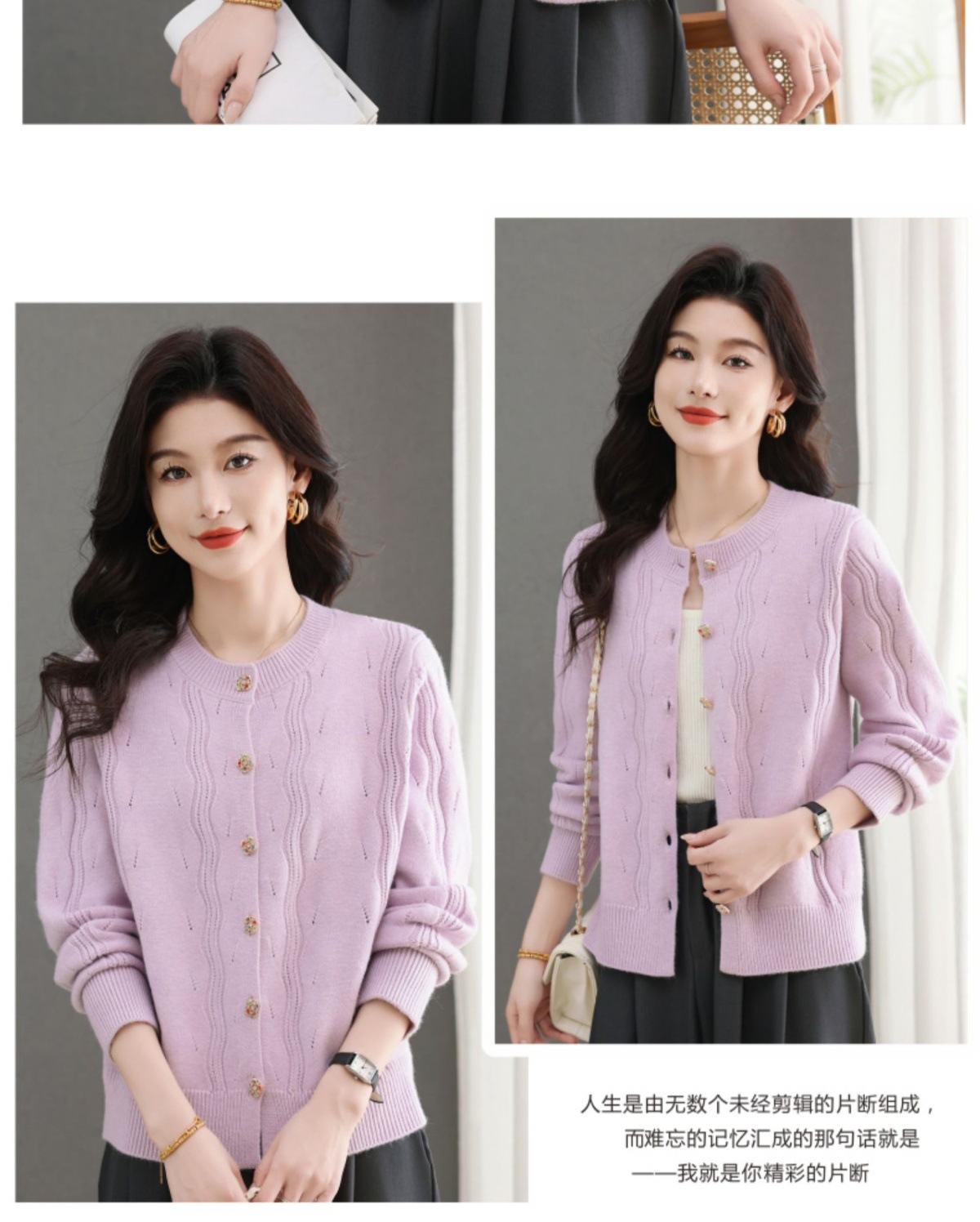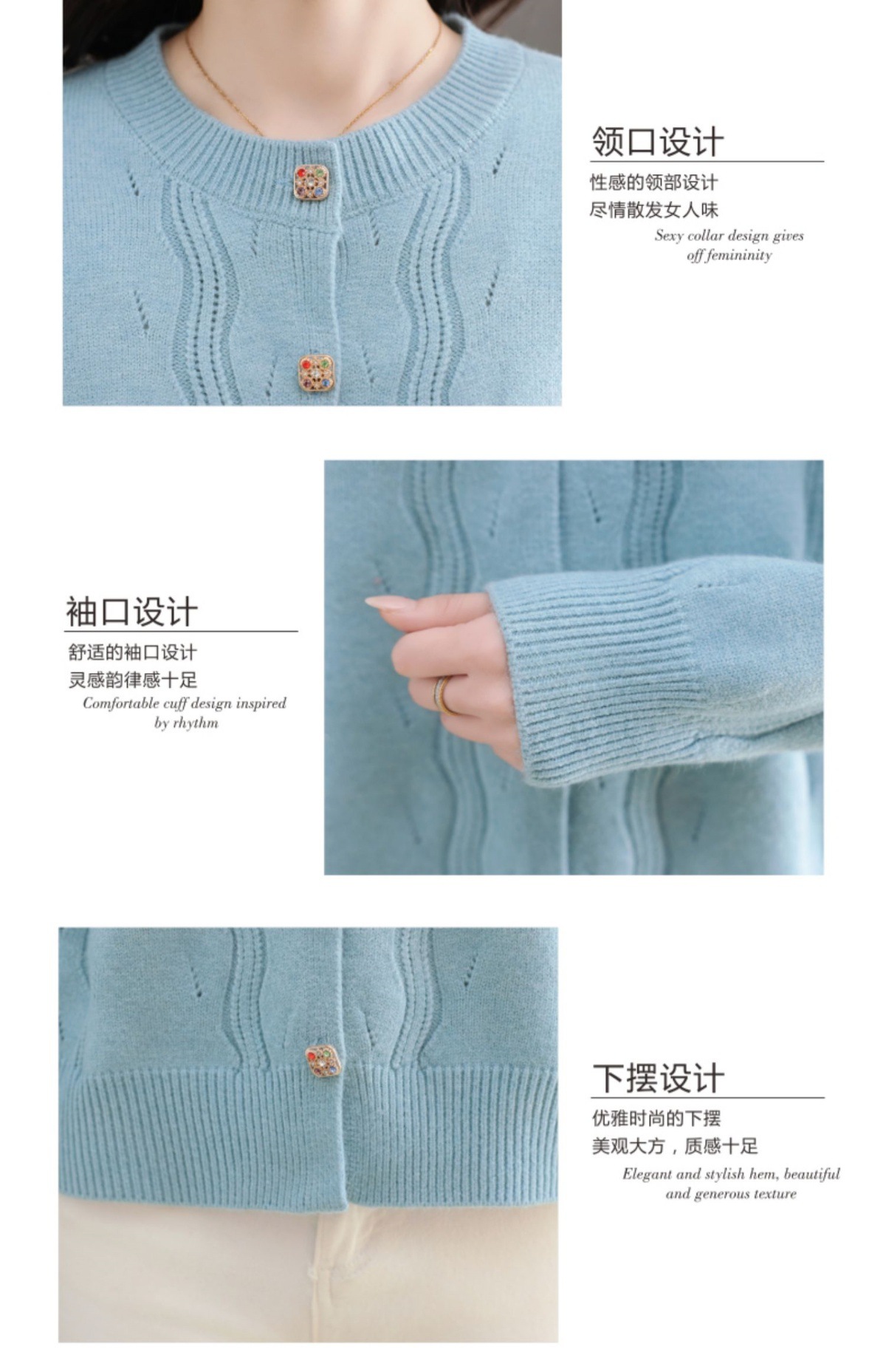 CC-5-6308春秋季新款时髦洋气百搭气质圆领长袖针织开衫女士上衣