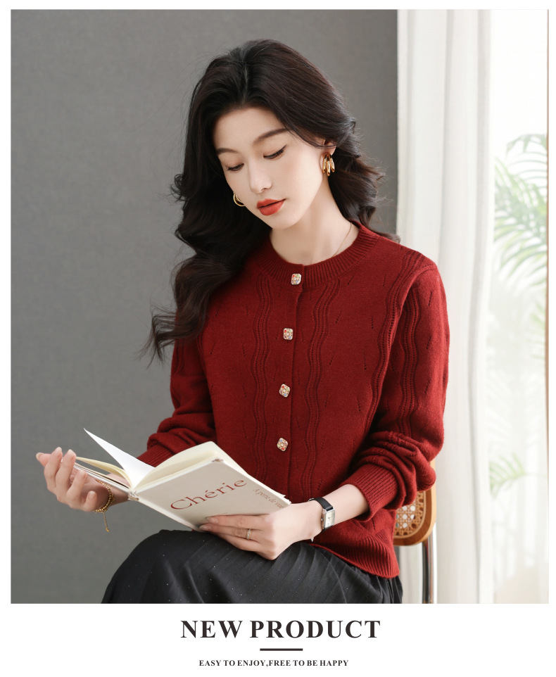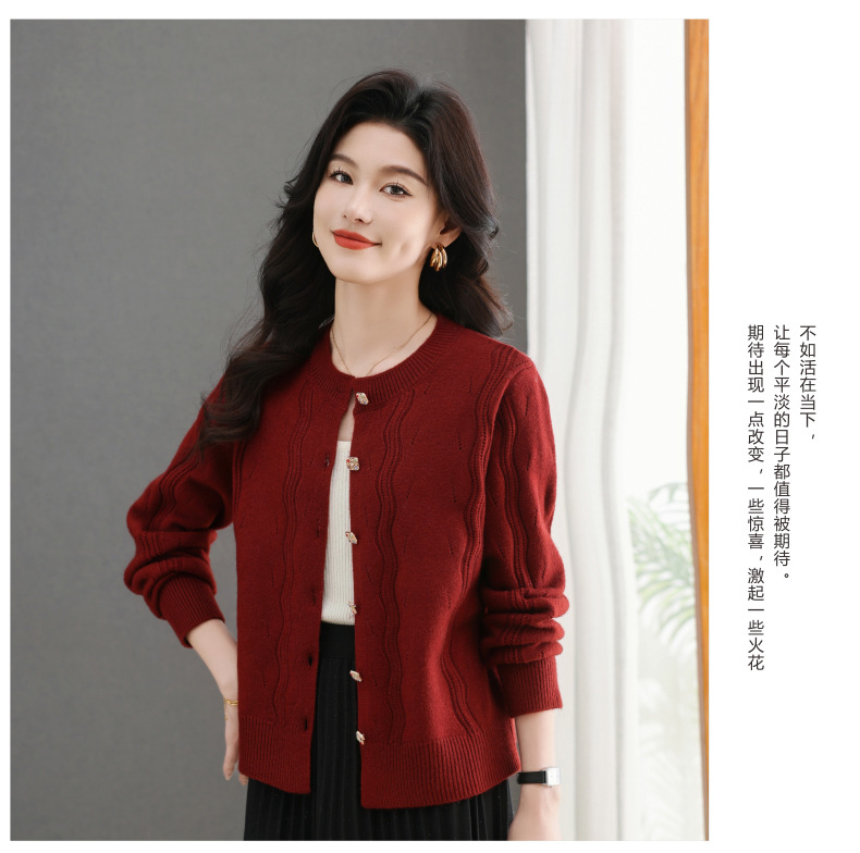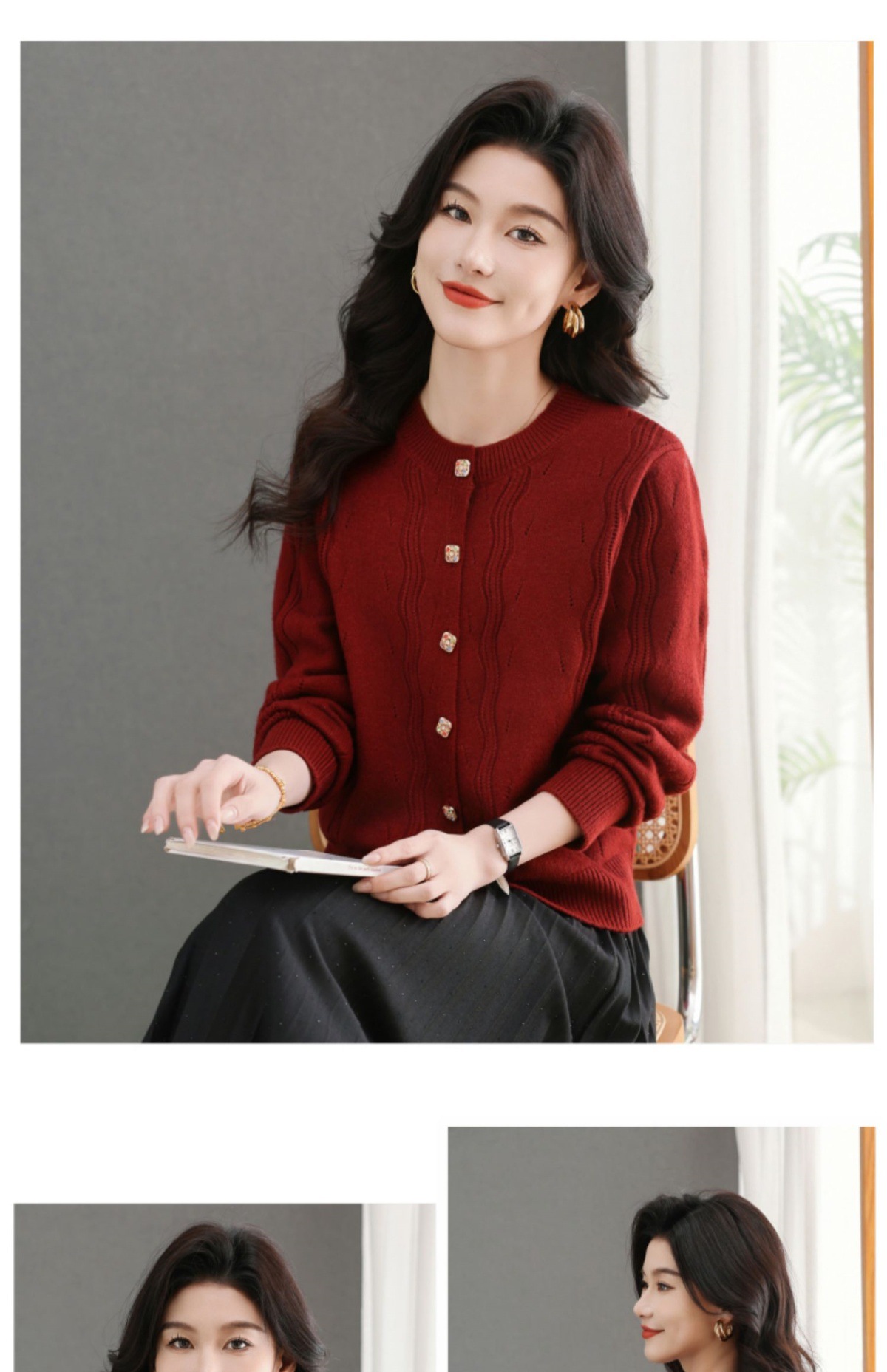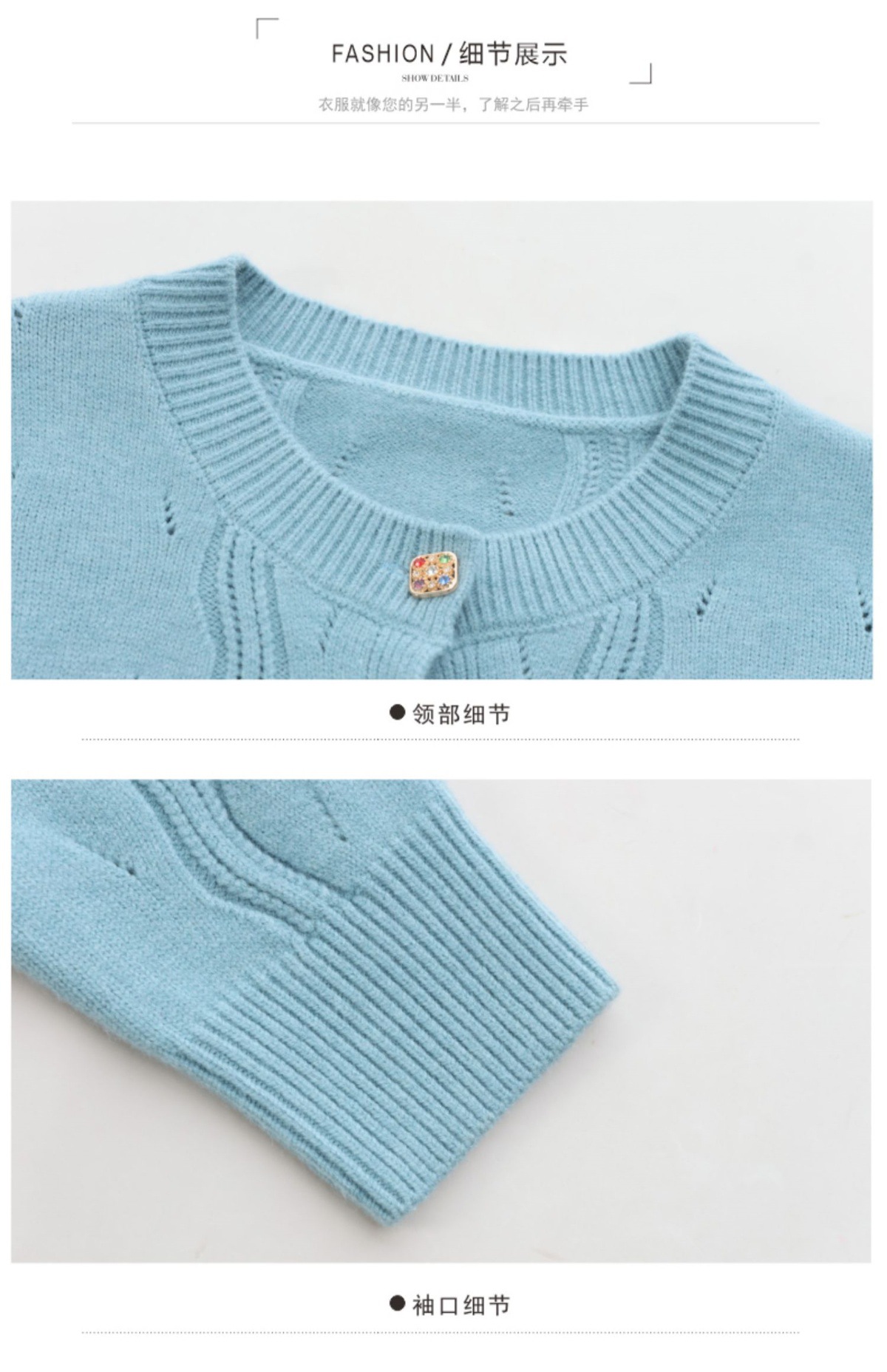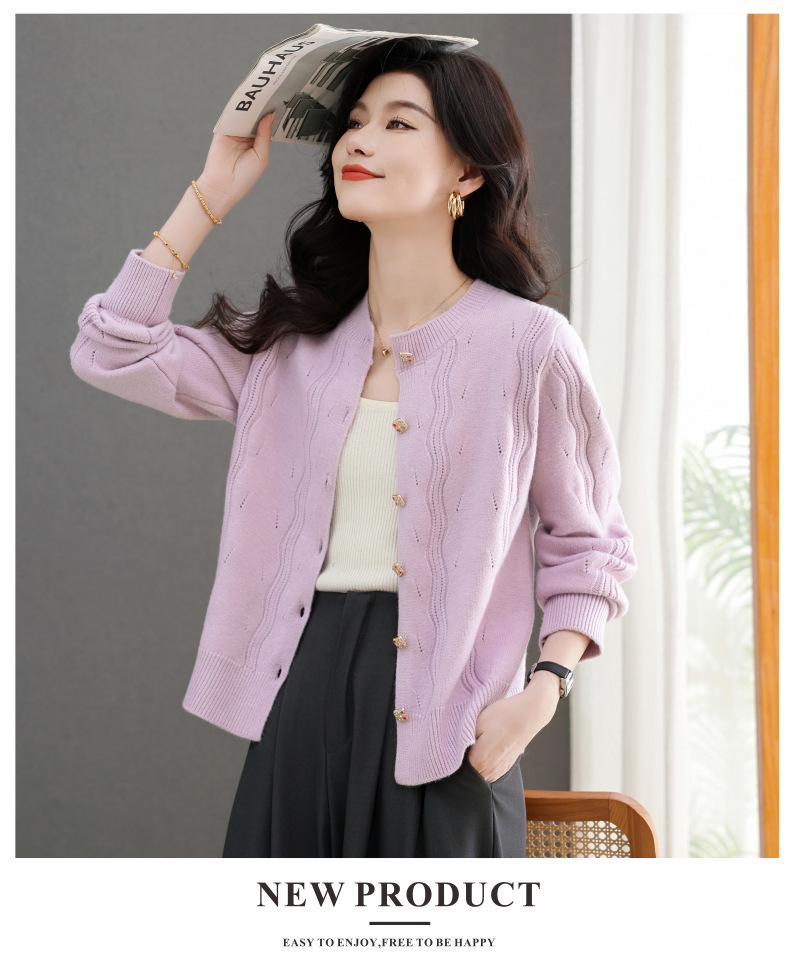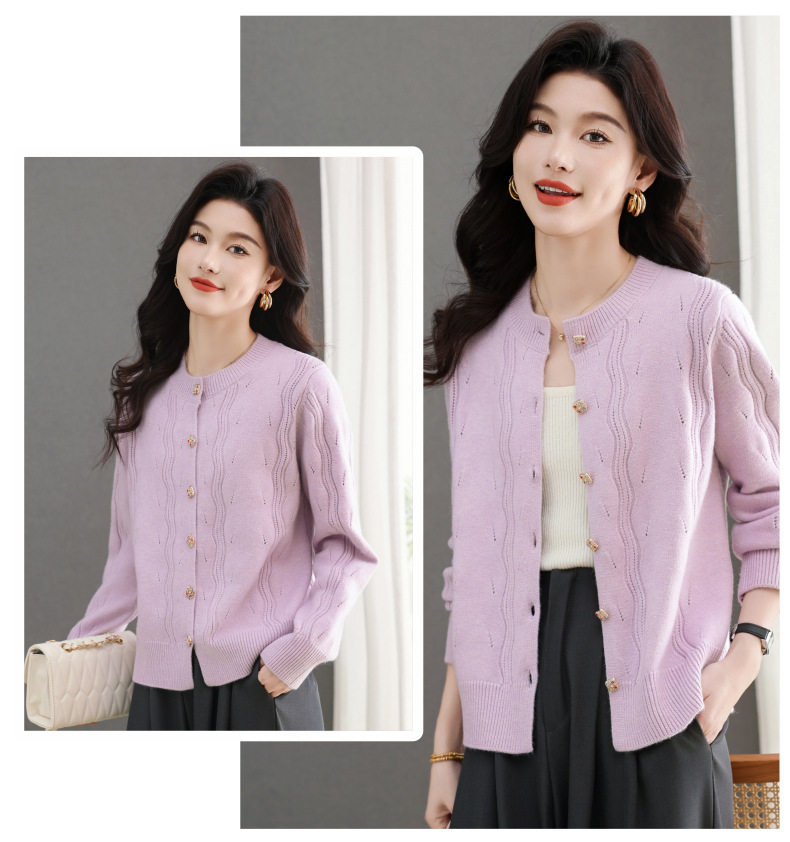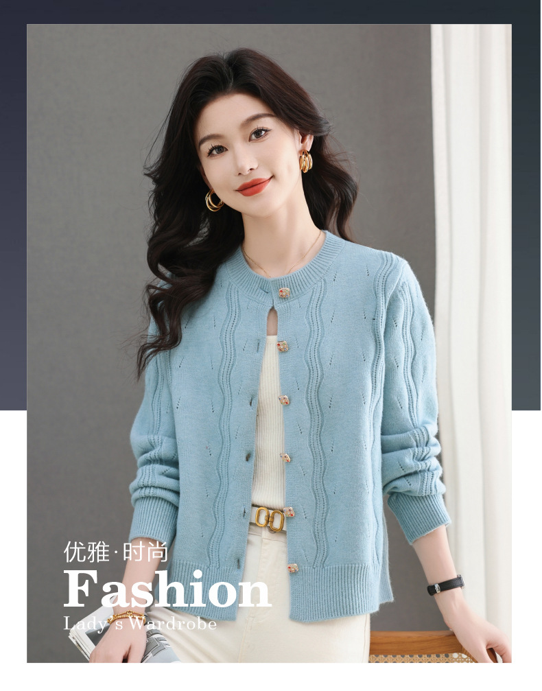 CC-5-6308春秋季新款时髦洋气百搭气质圆领长袖针织开衫女士上衣