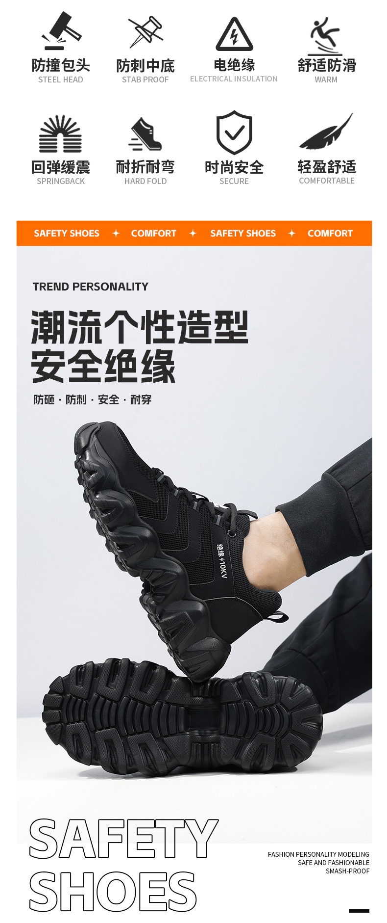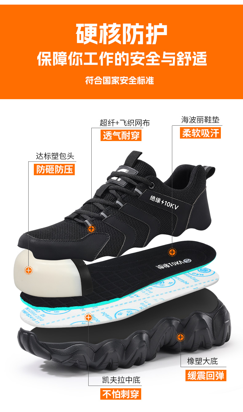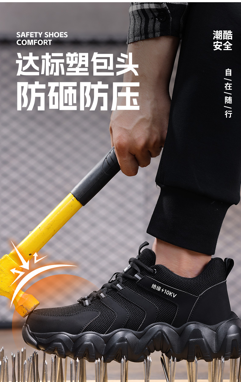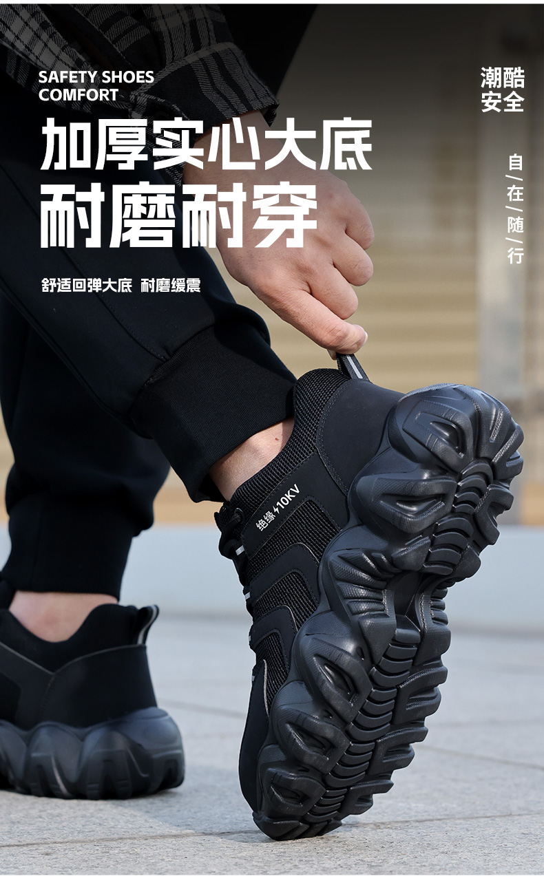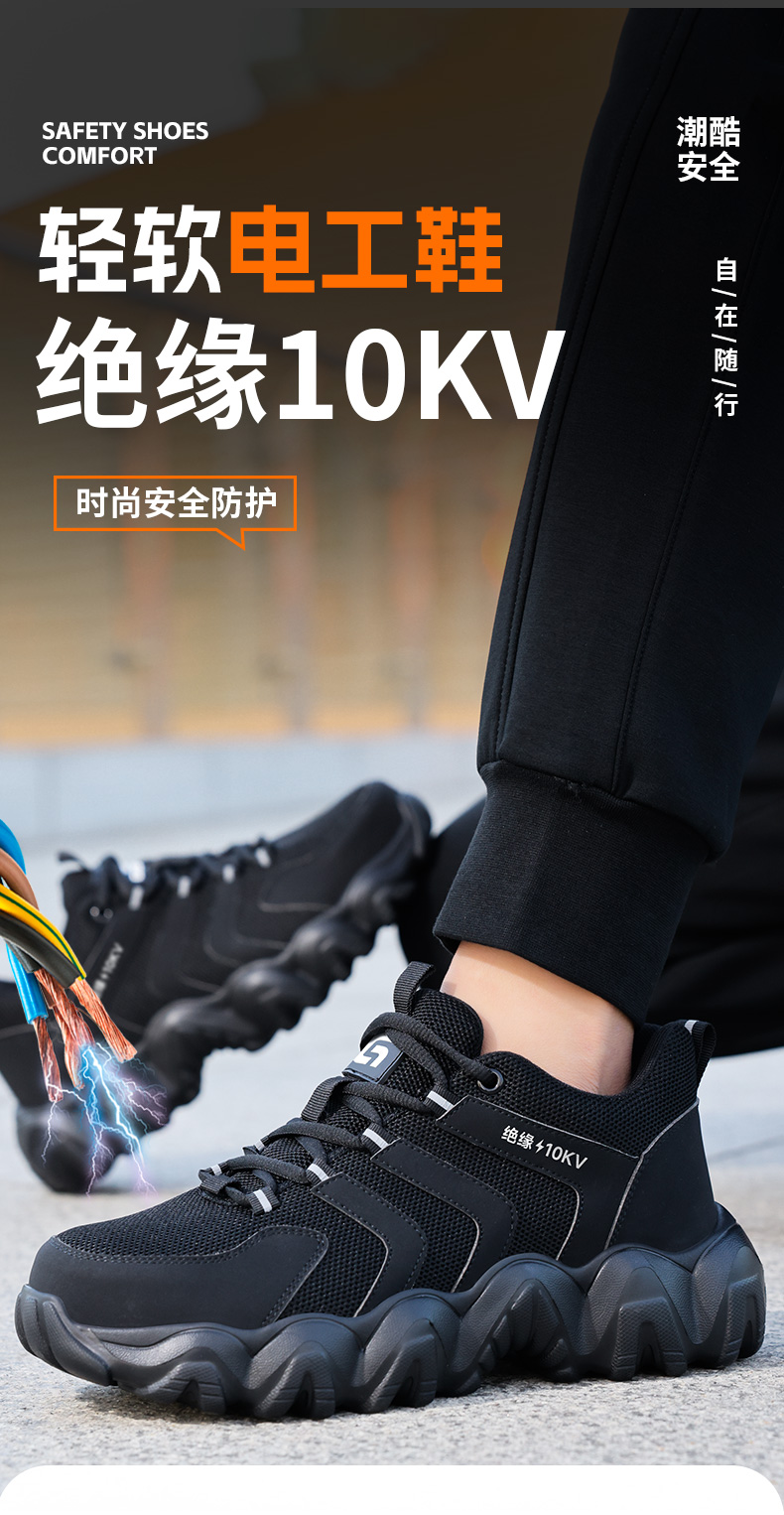 新品电绝缘10KV四季款透气轻便EVA大底劳保鞋男防砸防刺网布工地安全鞋